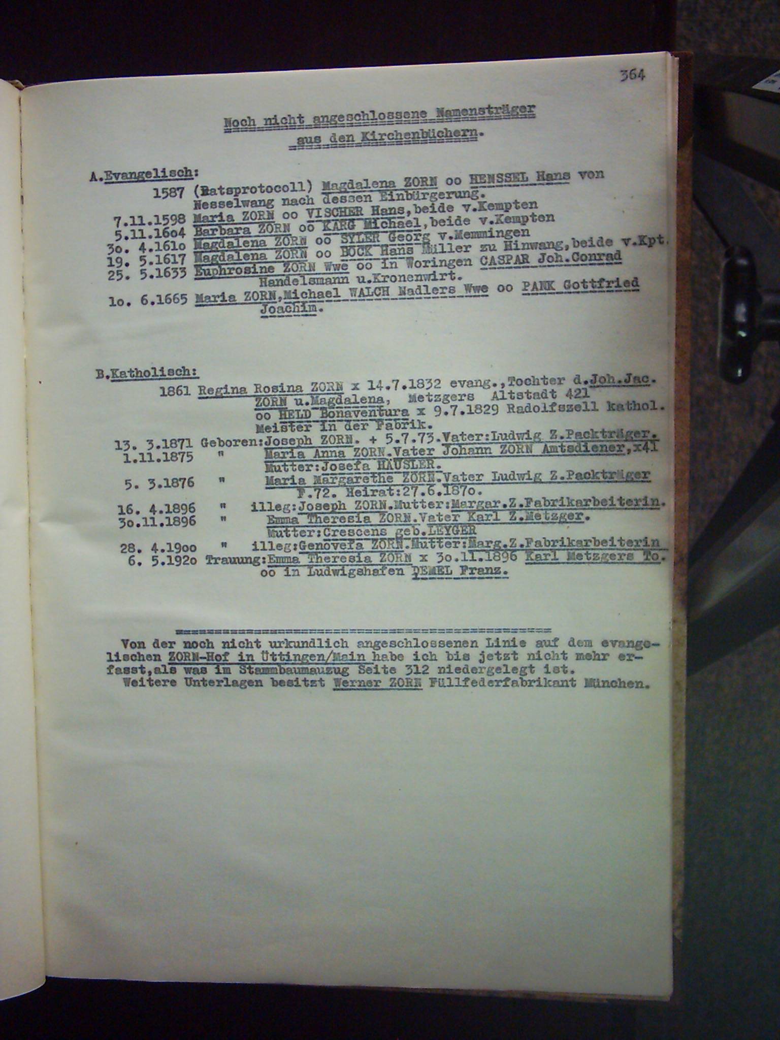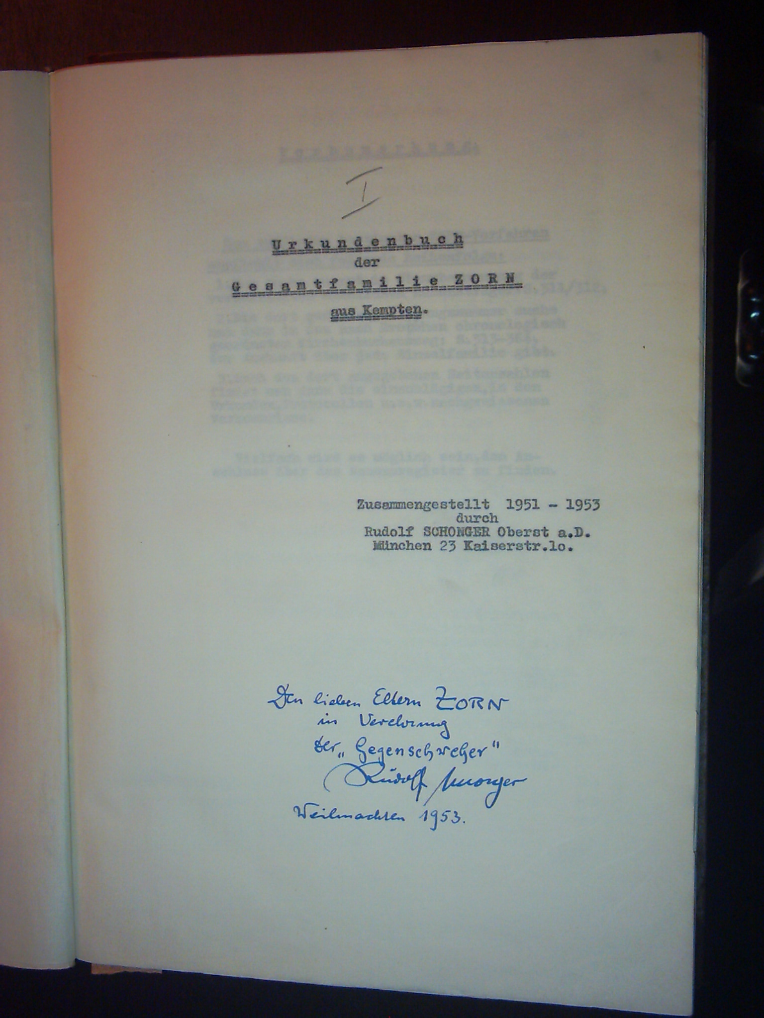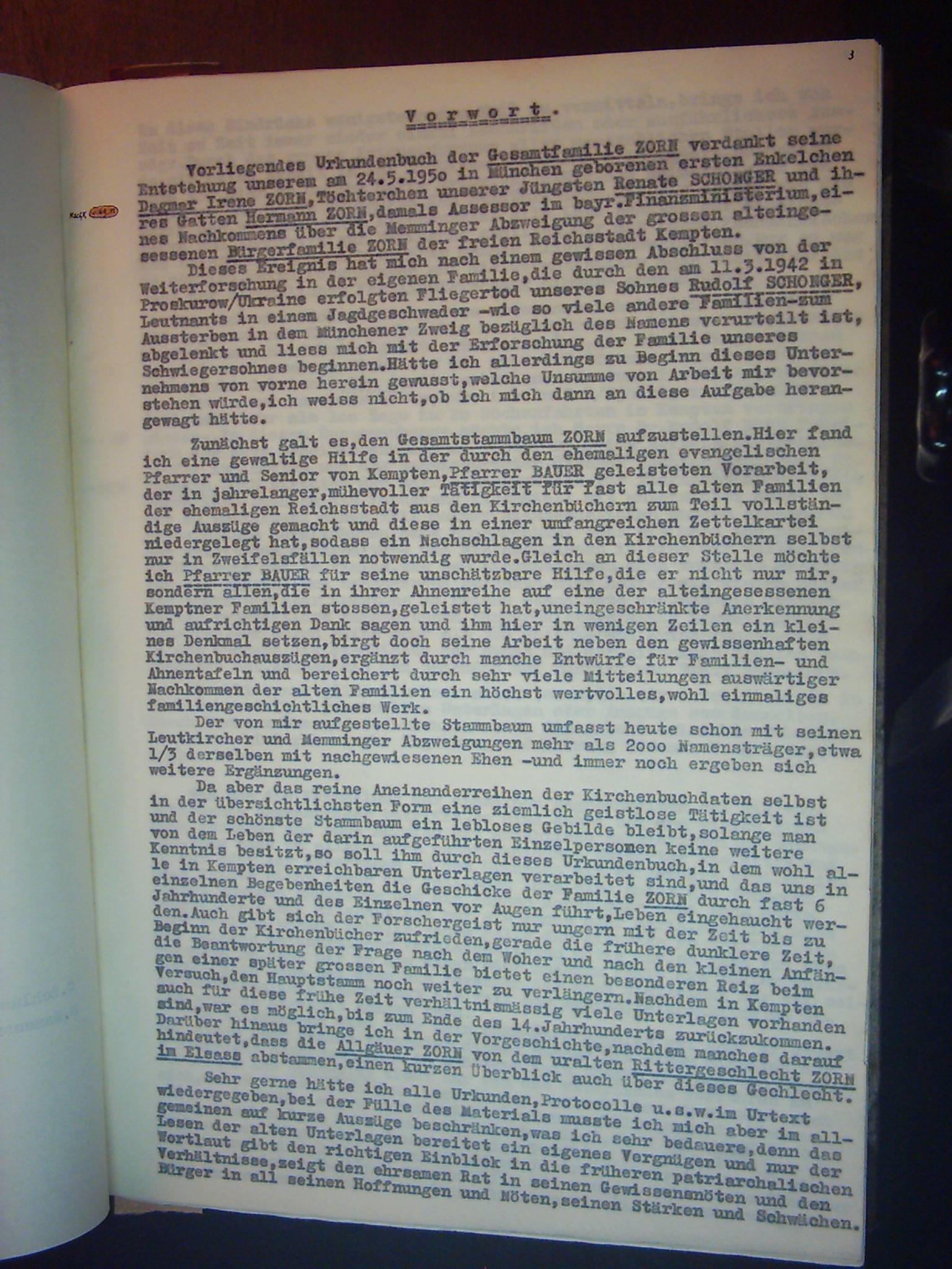 B. Die Familie ZORN im Elsass und im Allgäu Seiten 9 - 364 |