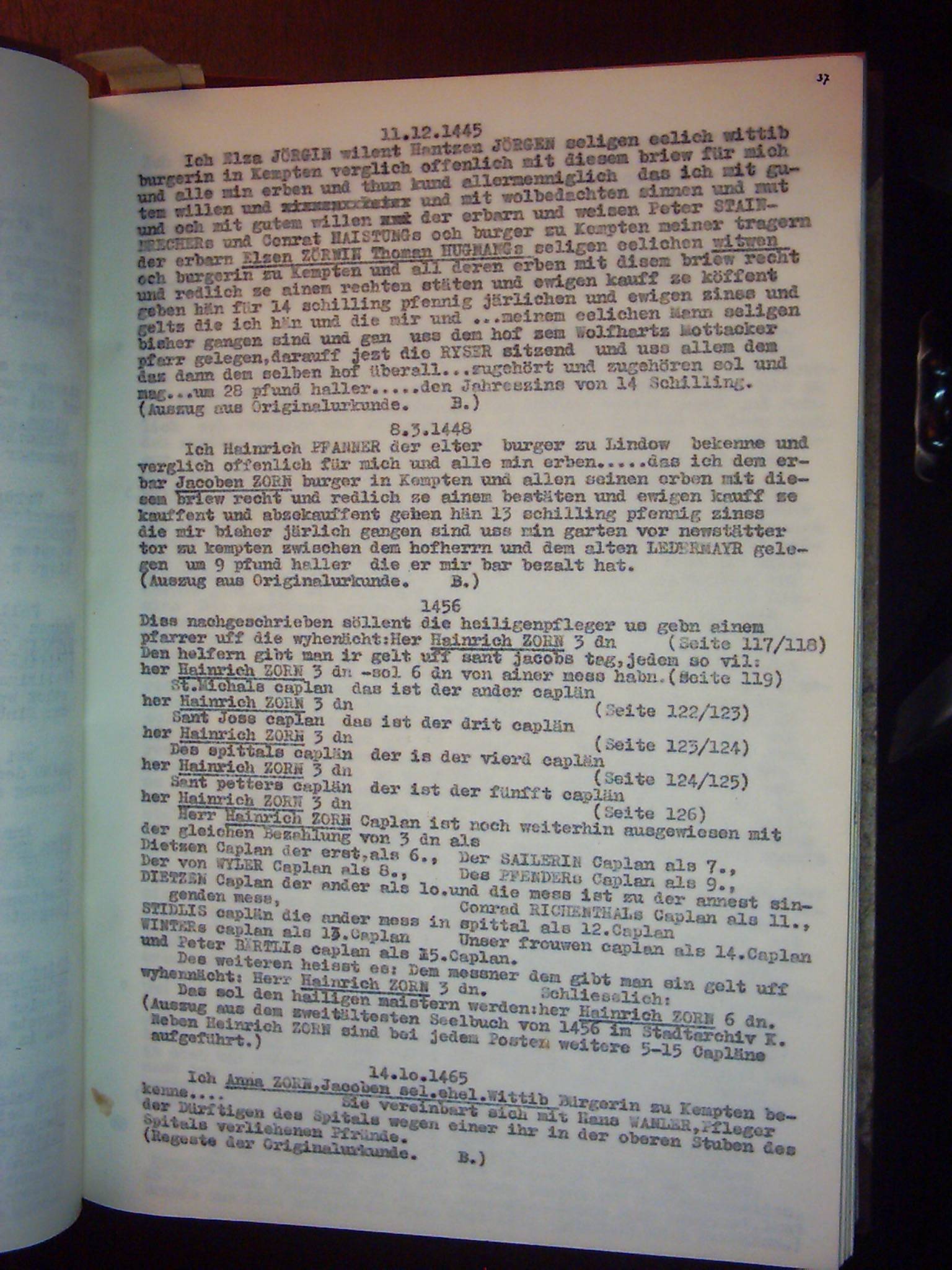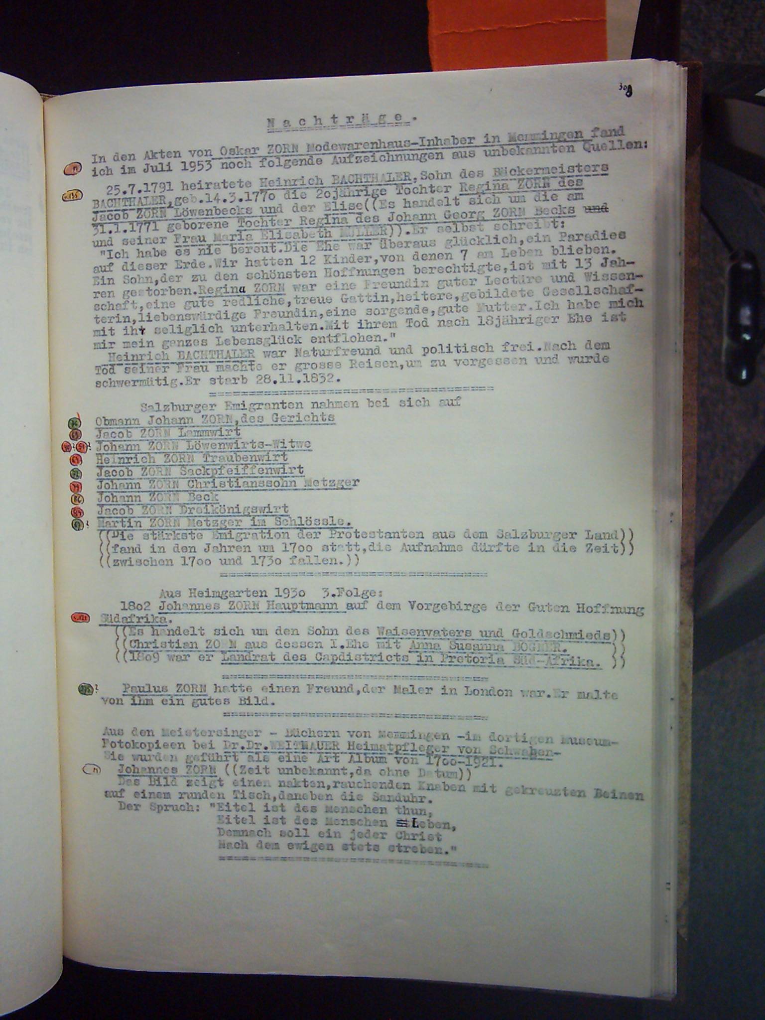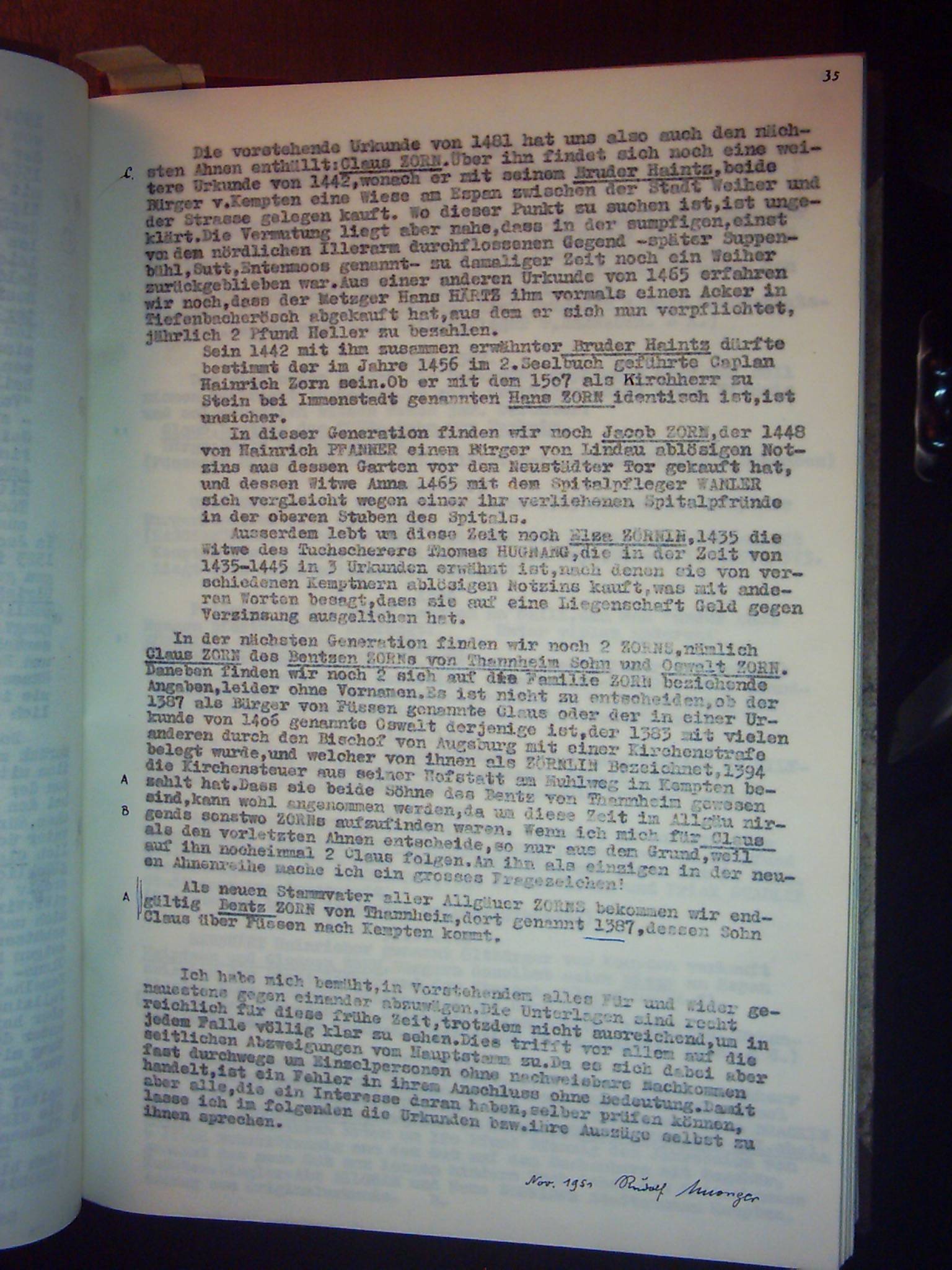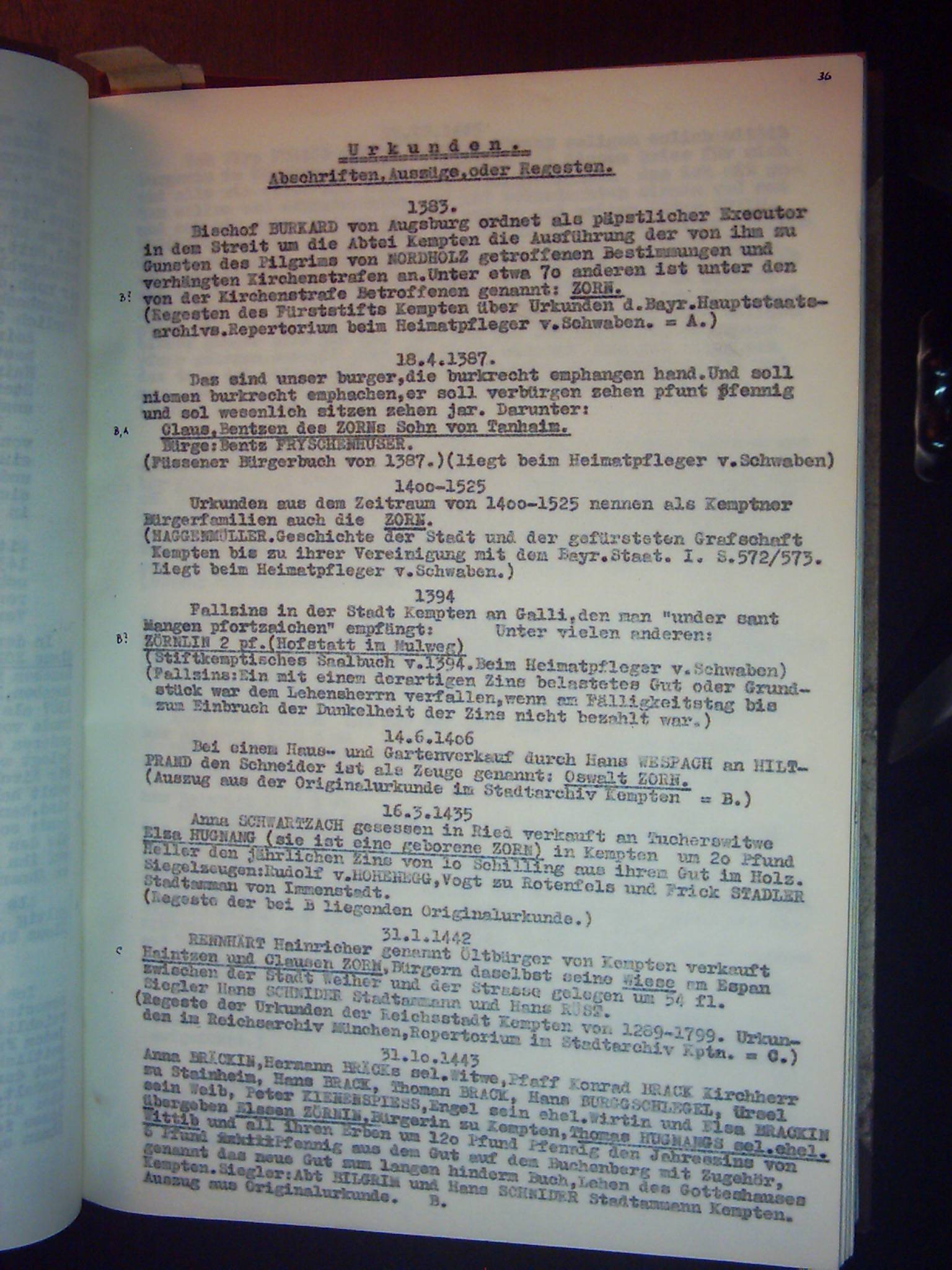 B. Die Familie ZORN im Elsass und im Allgäu Seiten 9 - 364 |