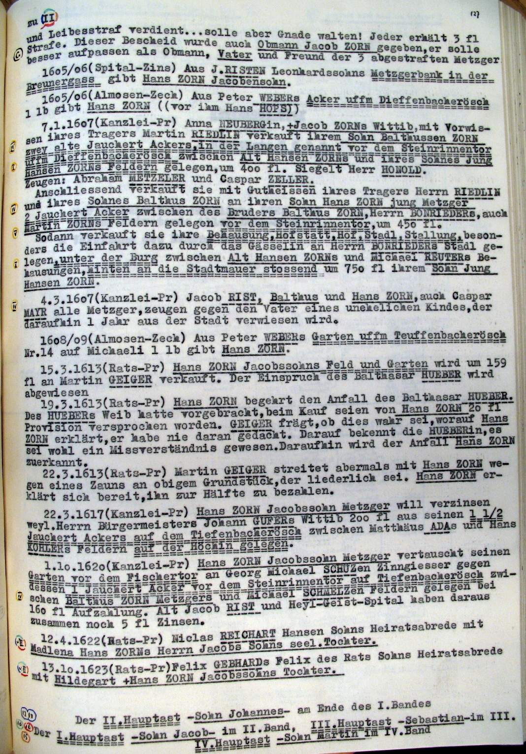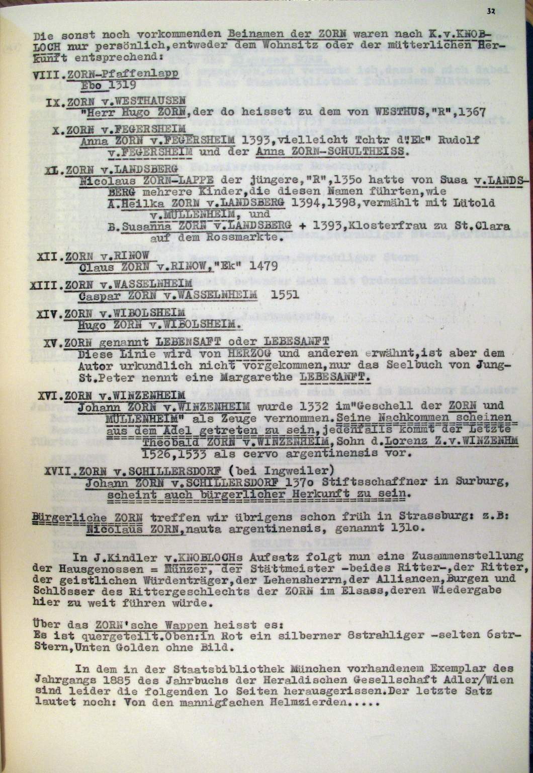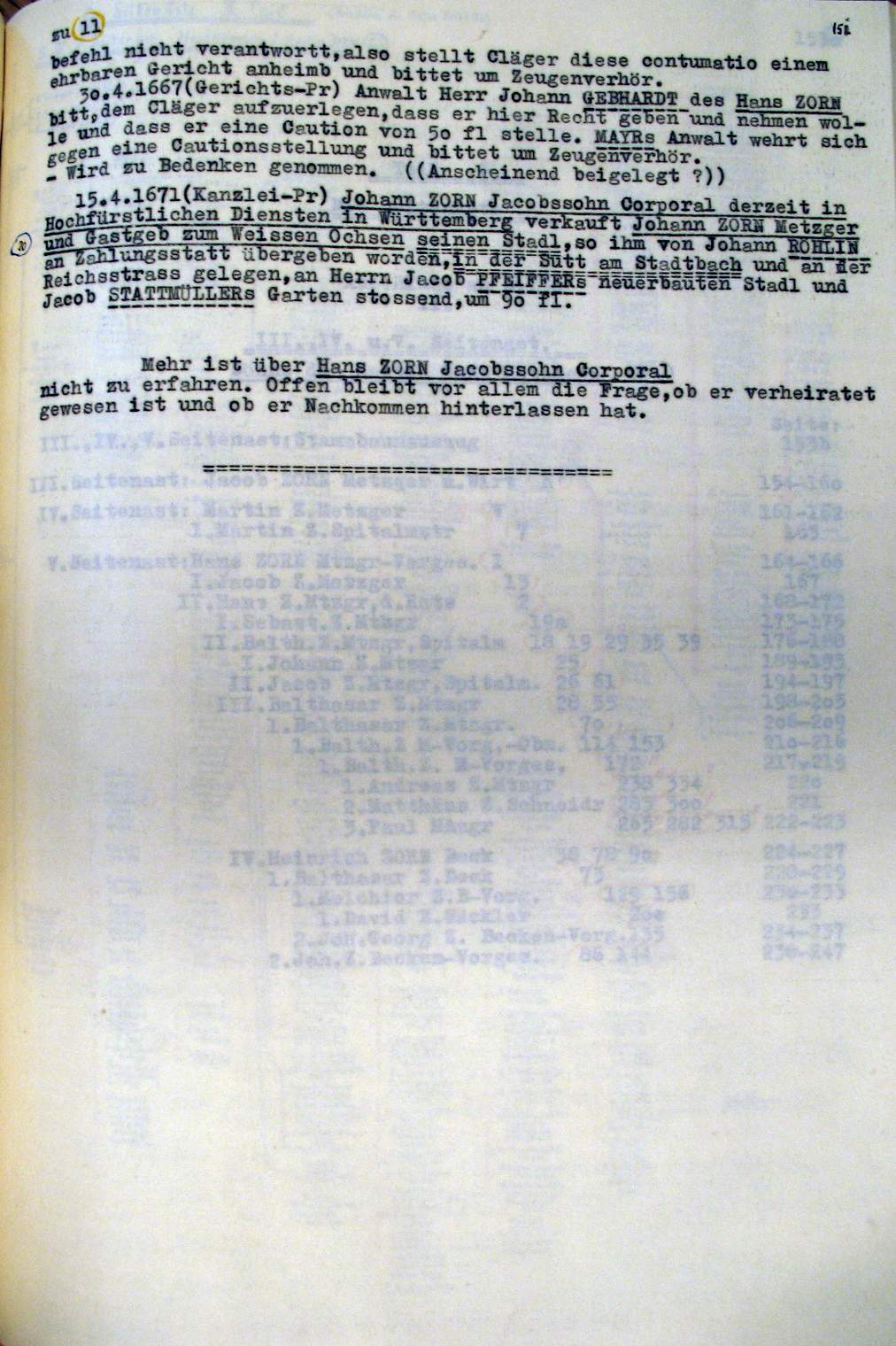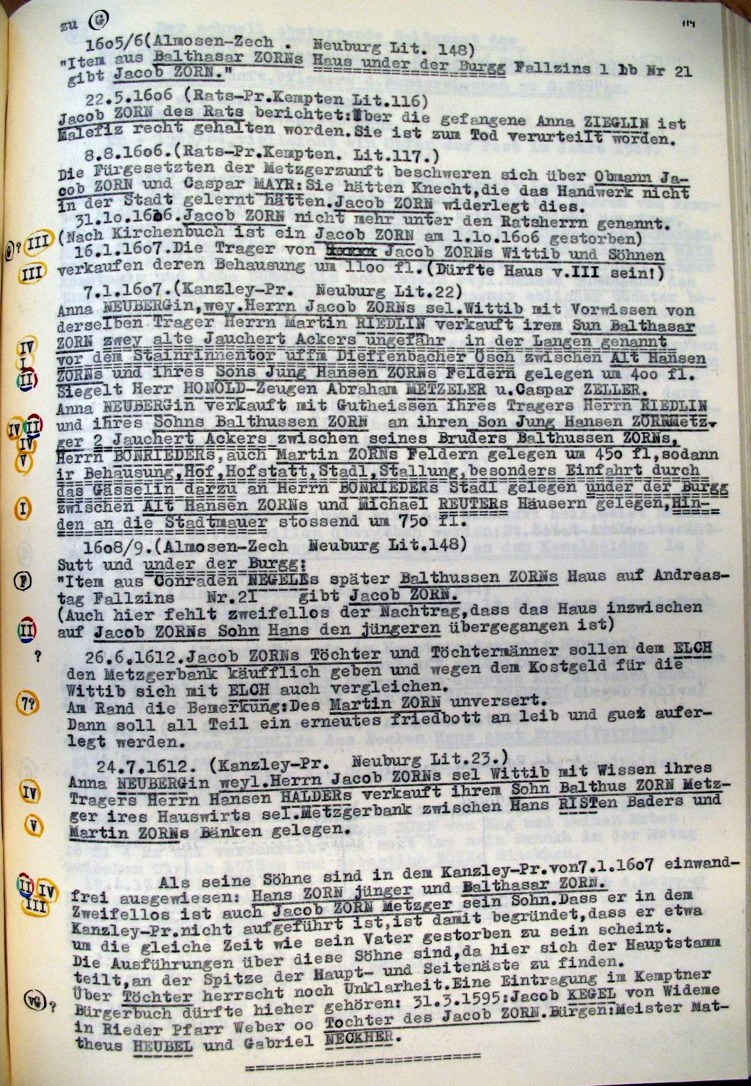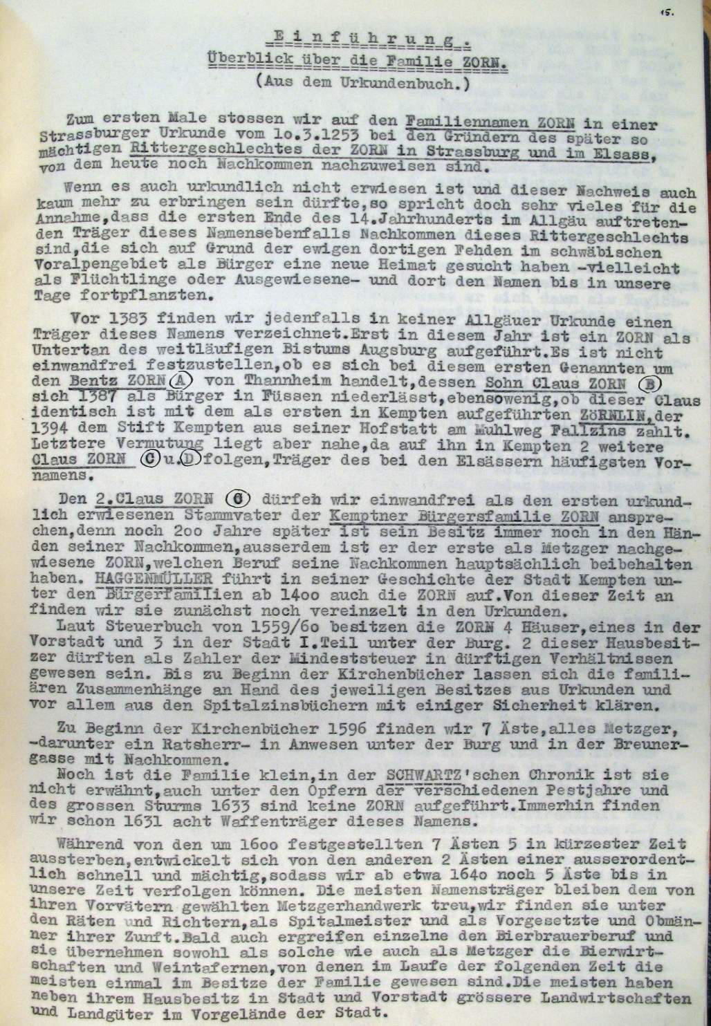 | Überblick über die Gesamtfam. ZORN -aus I.Urkunden-B. | 15 - 18 | |