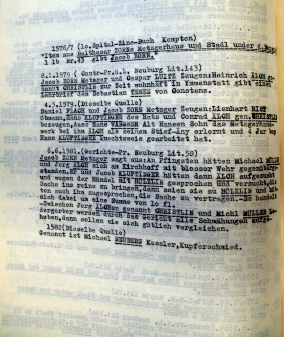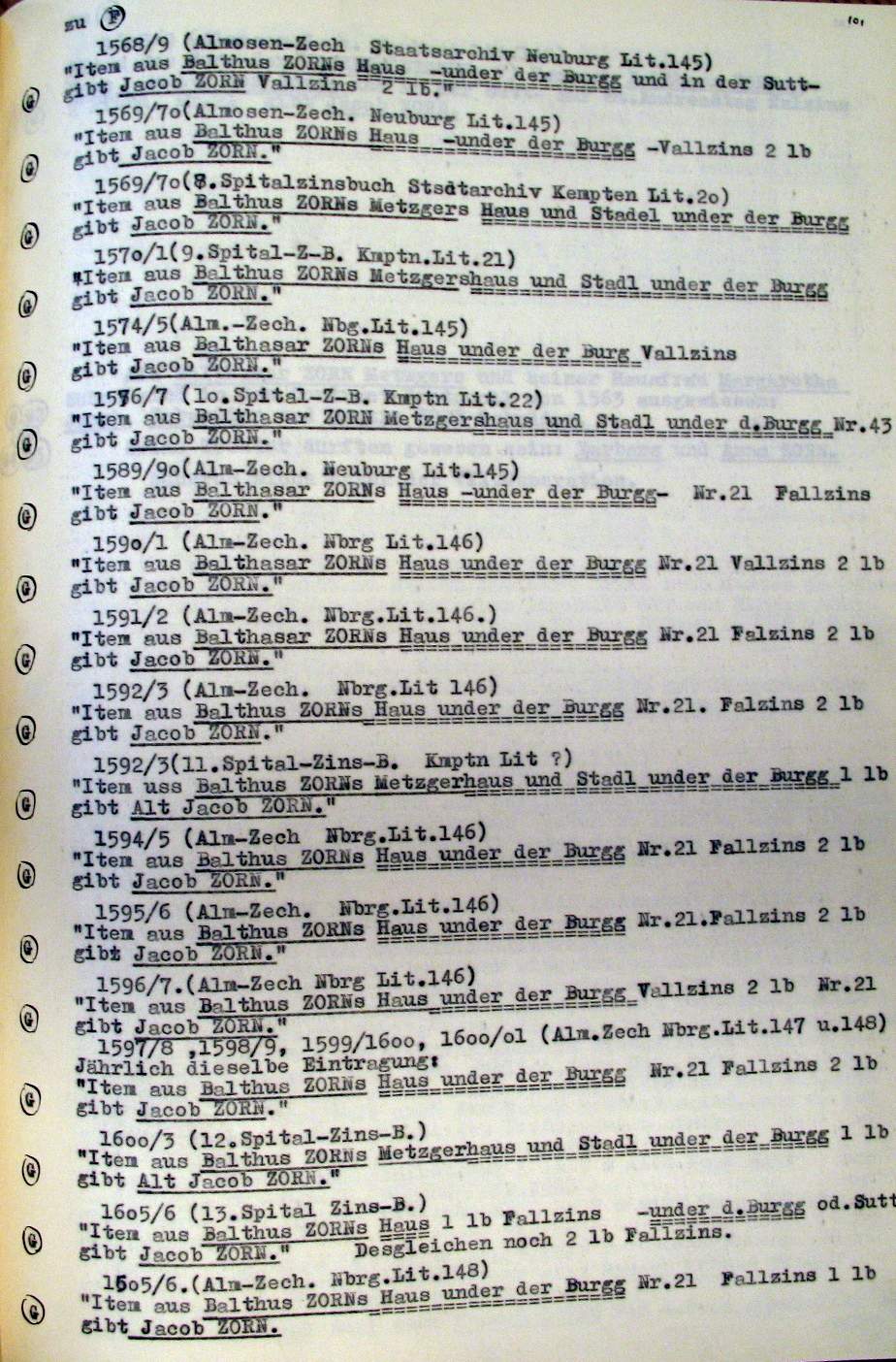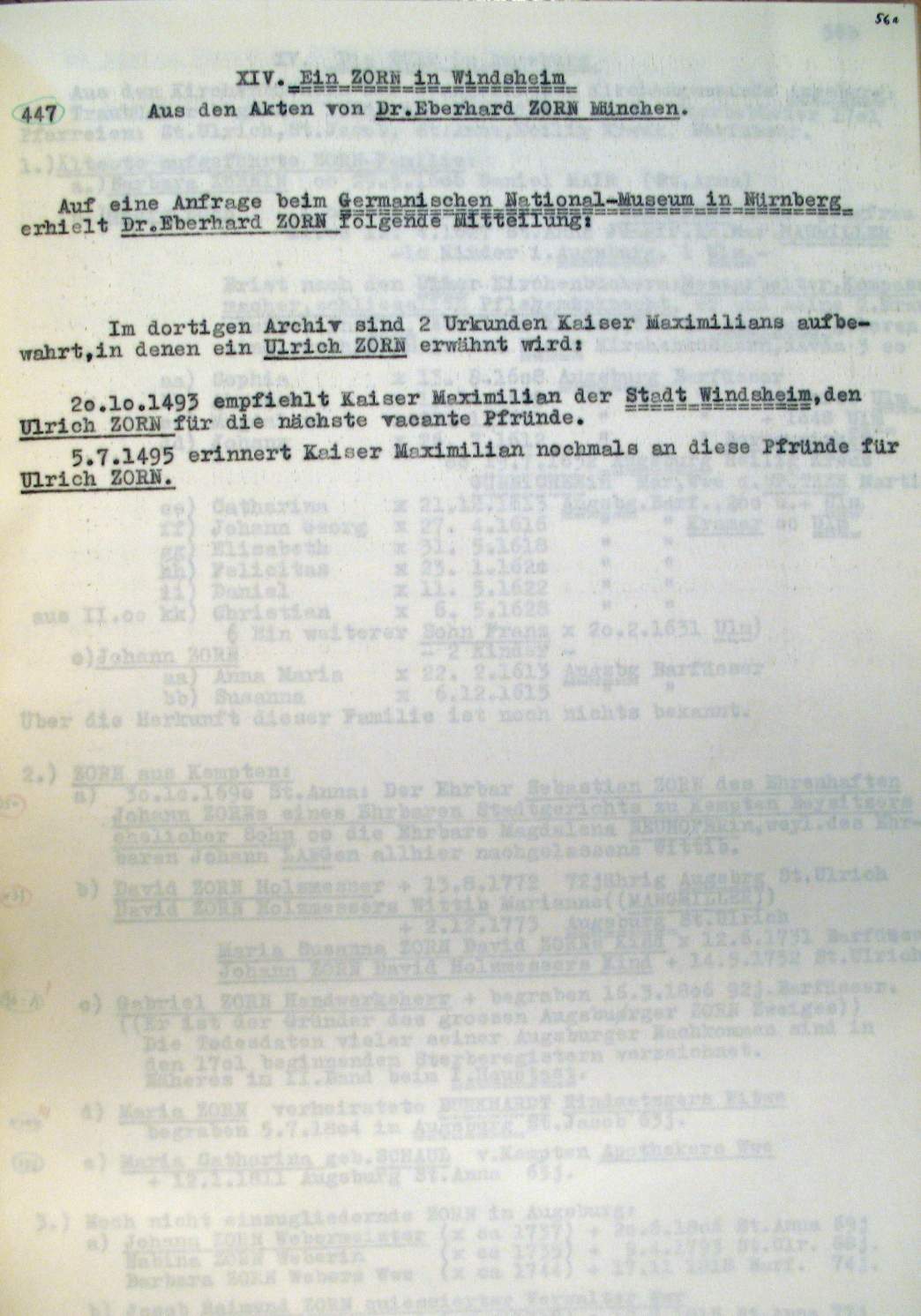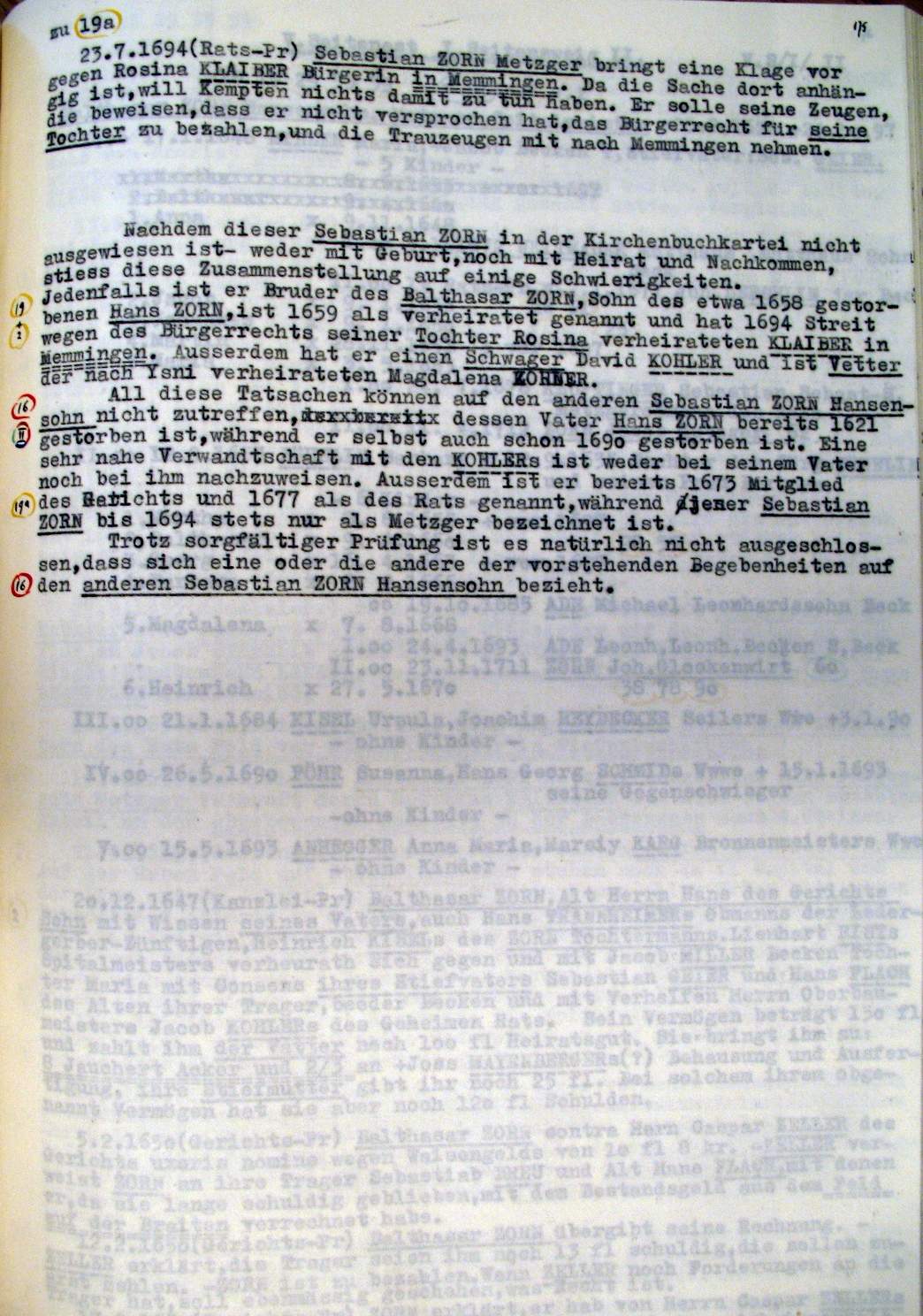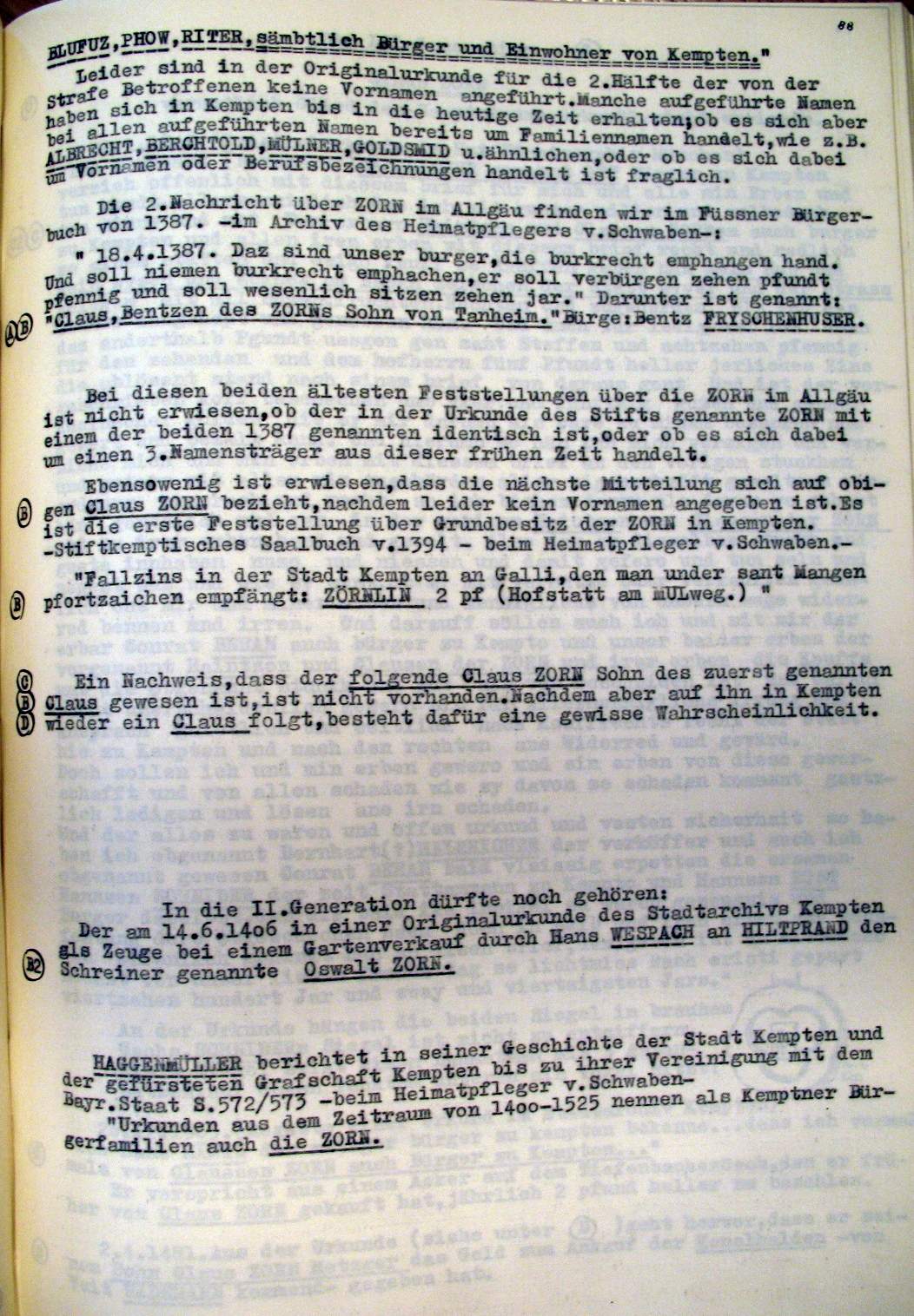 | Überblick über die Gesamtfam. ZORN -aus I.Urkunden-B. | 15 - 18 | |