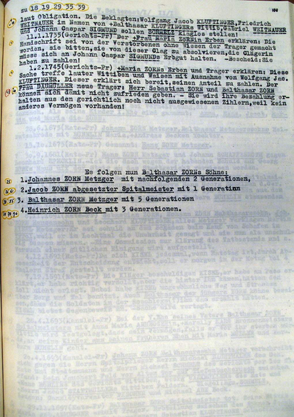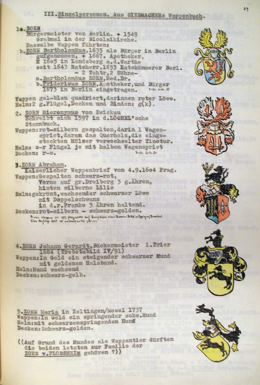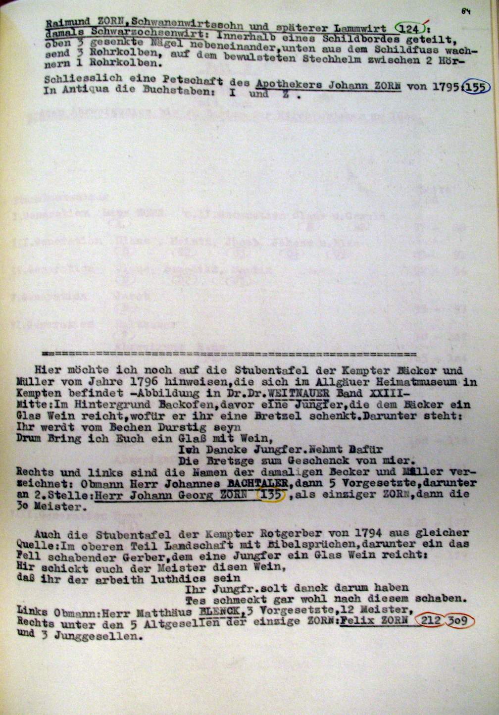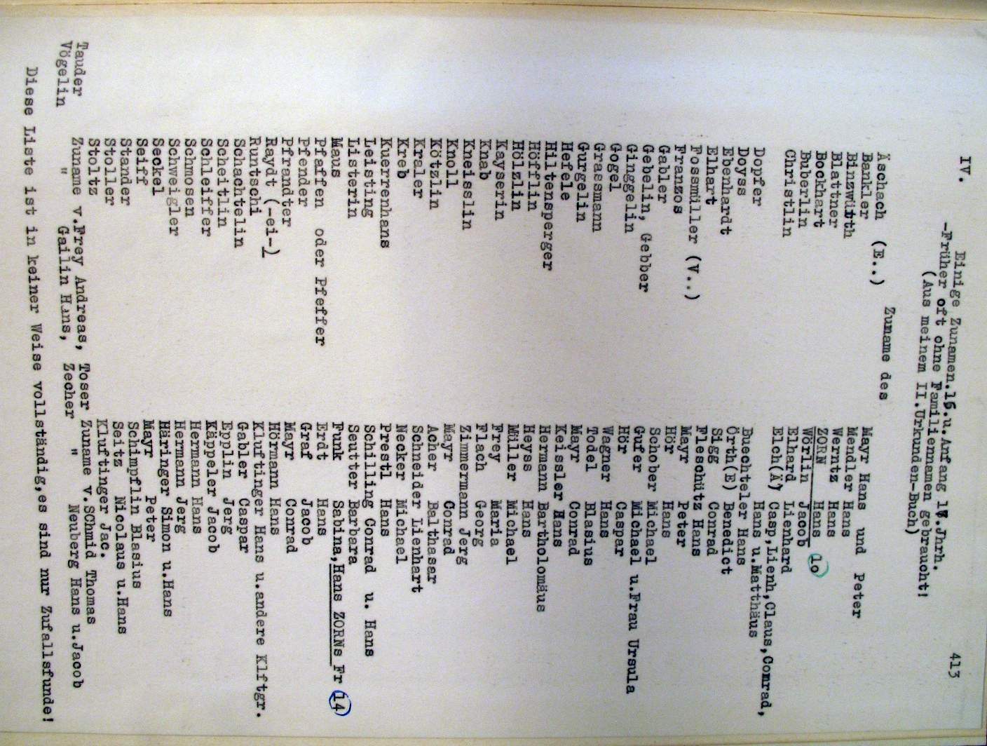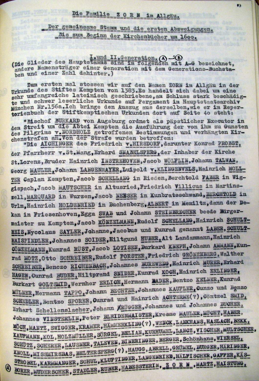 | Überblick über die Gesamtfam. ZORN -aus I.Urkunden-B. | 15 - 18 | |