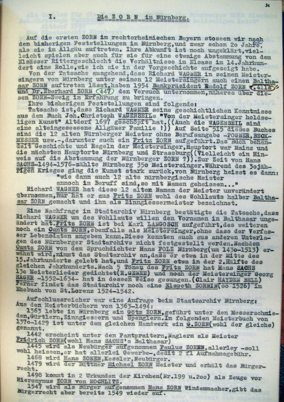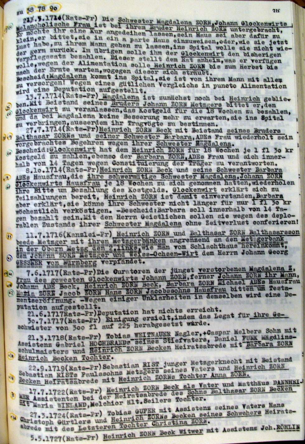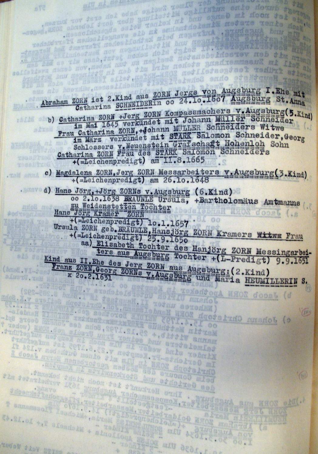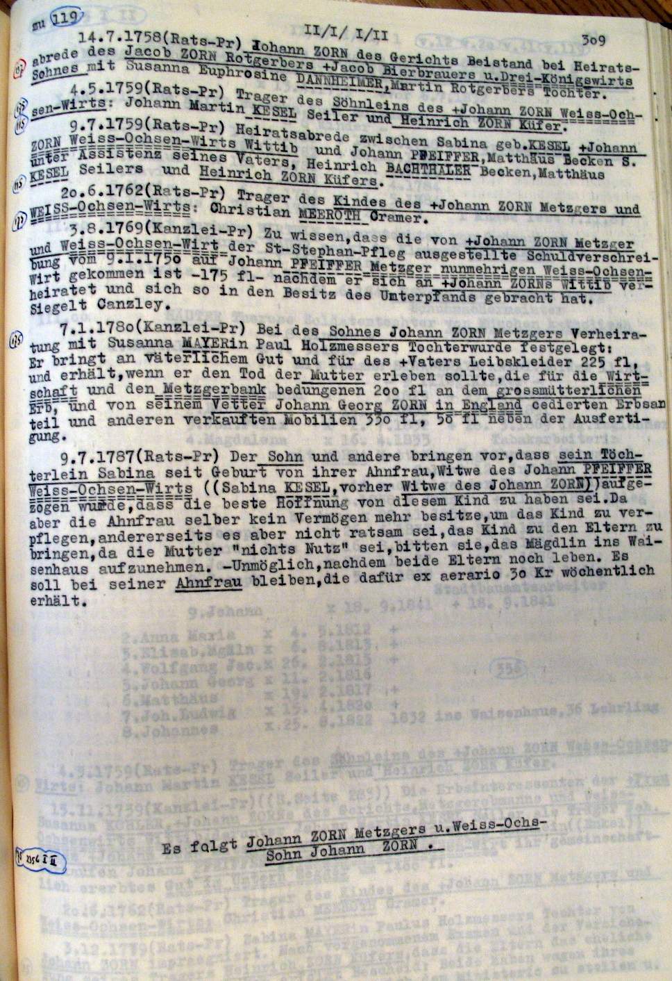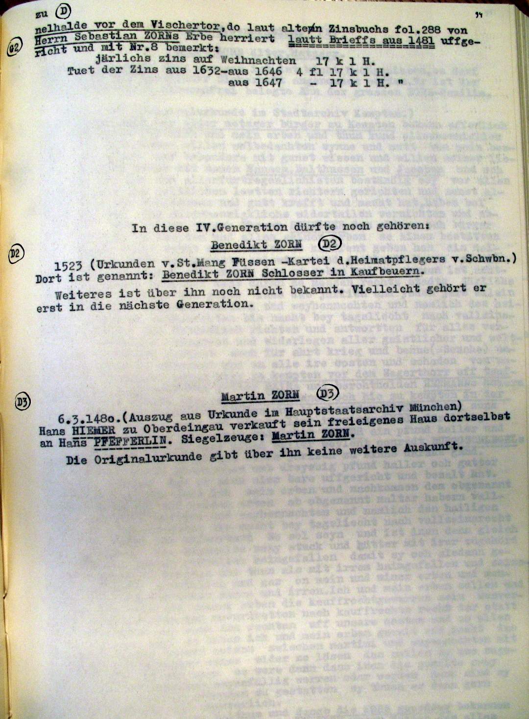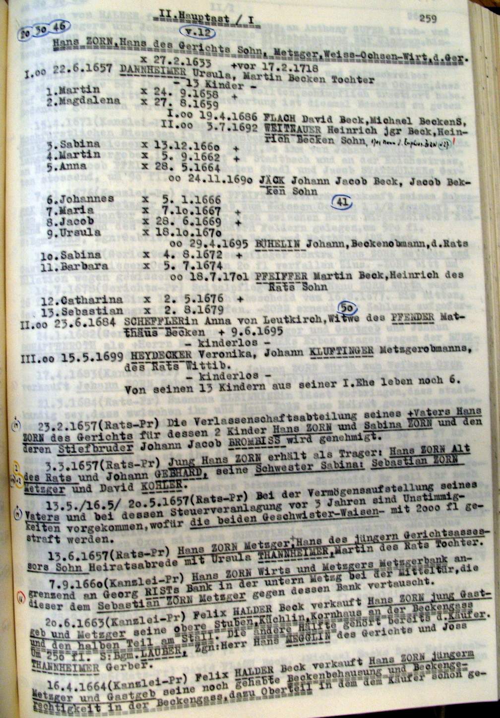 | Überblick über die Gesamtfam. ZORN -aus I.Urkunden-B. | 15 - 18 | |