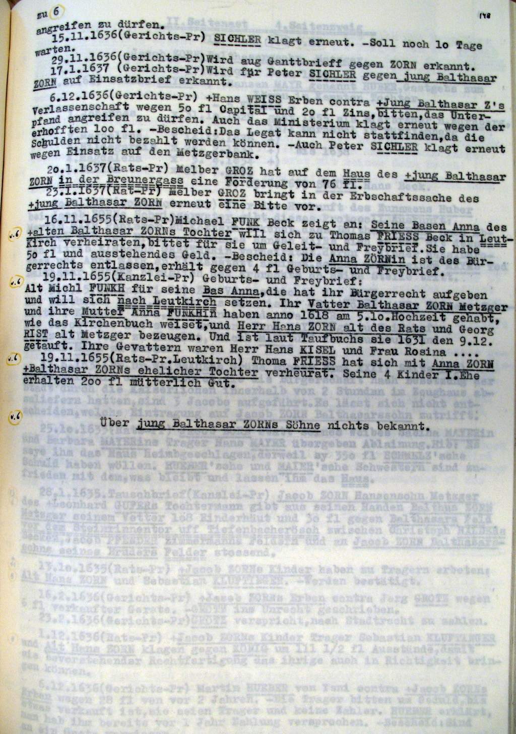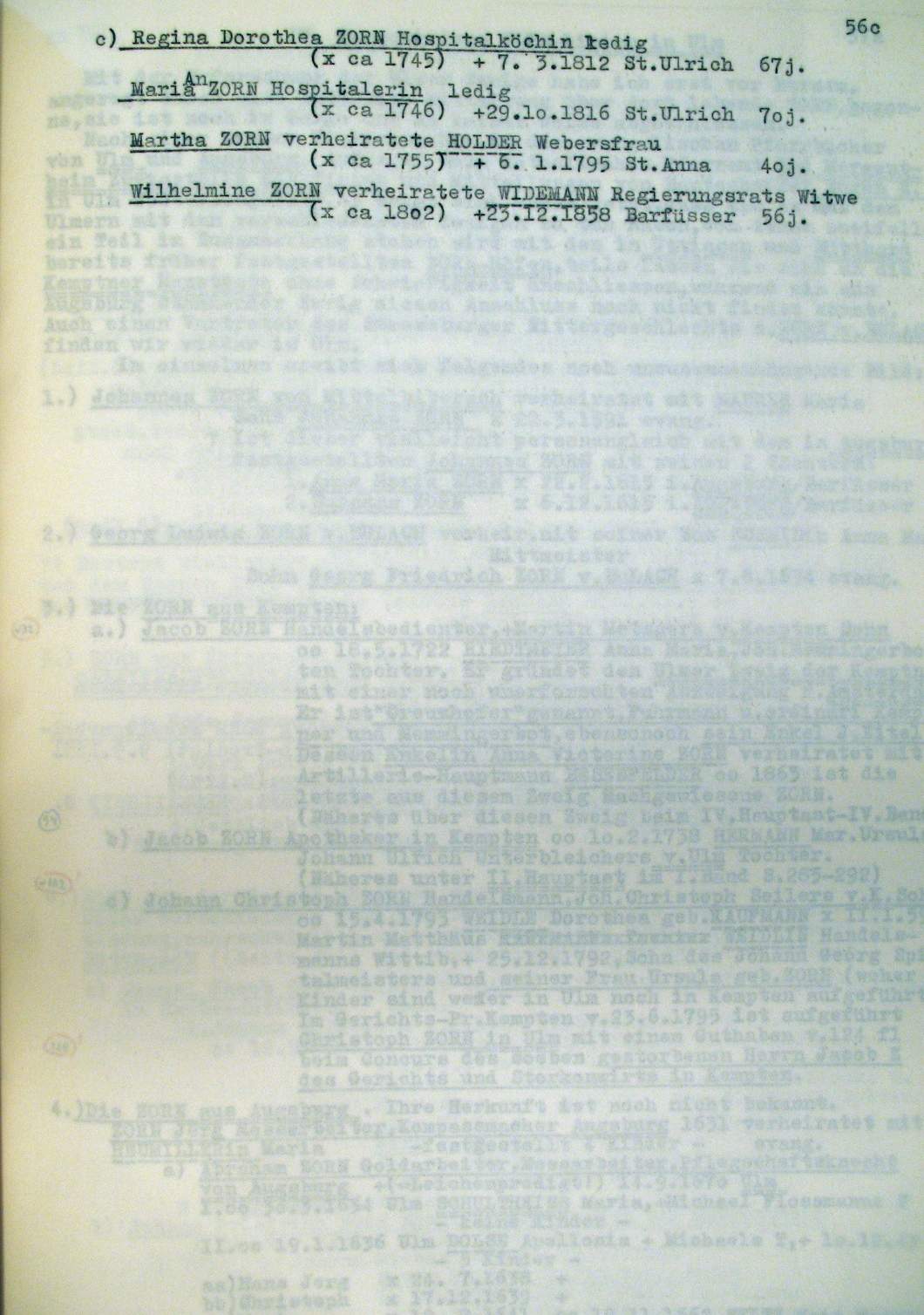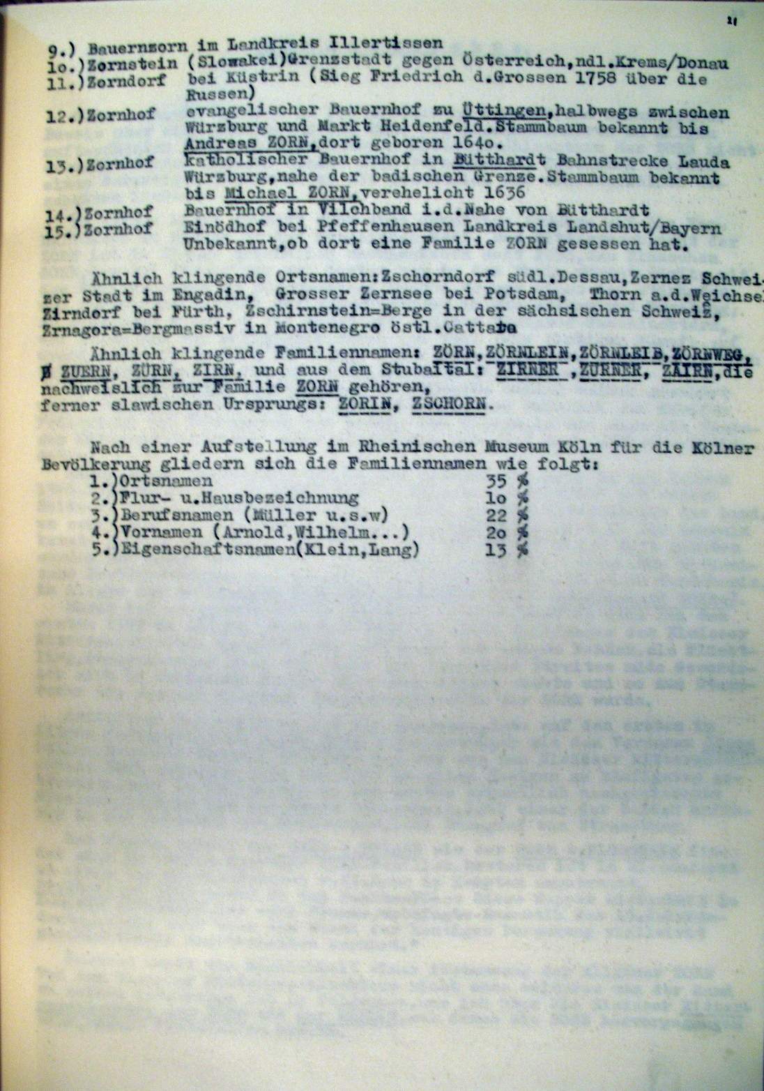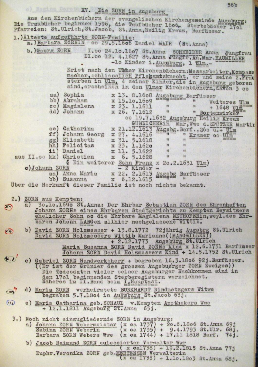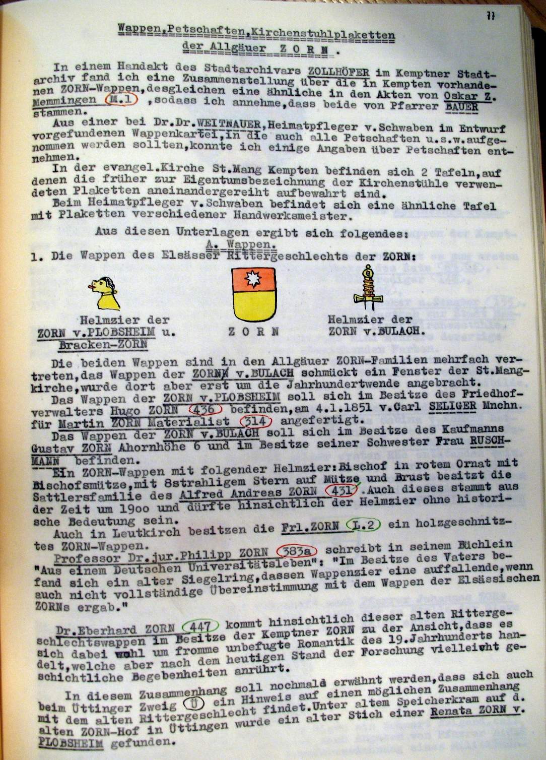 | Überblick über die Gesamtfam. ZORN -aus I.Urkunden-B. | 15 - 18 | |