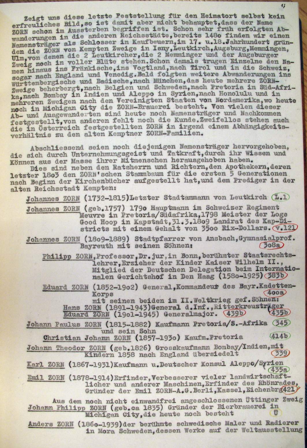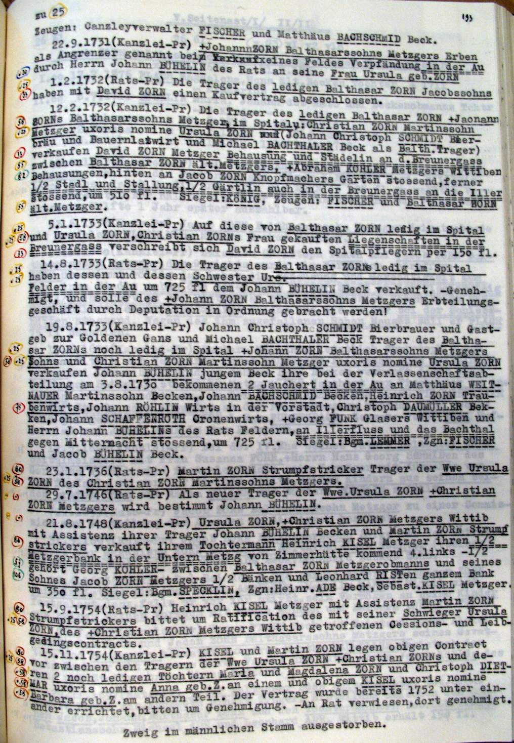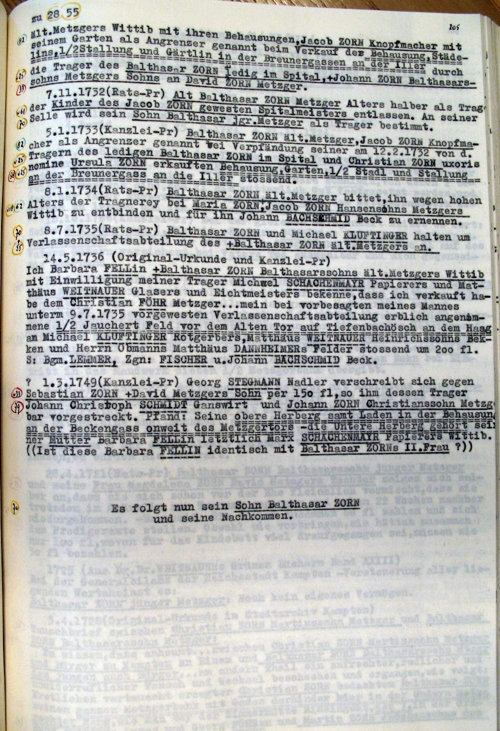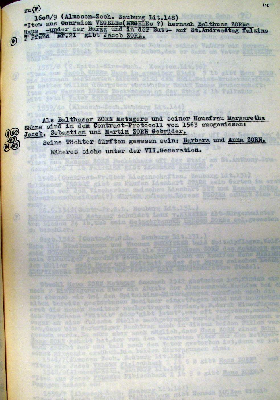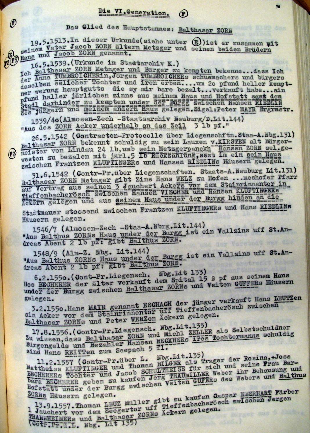 | Überblick über die Gesamtfam. ZORN -aus I.Urkunden-B. | 15 - 18 | |