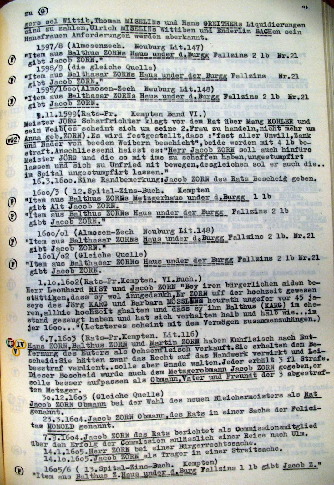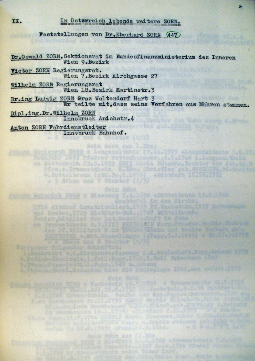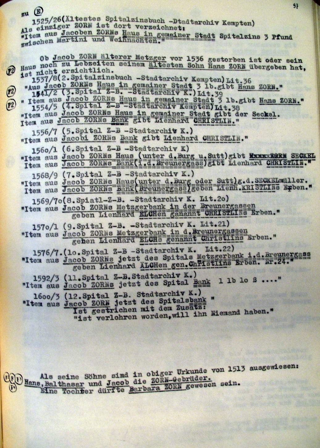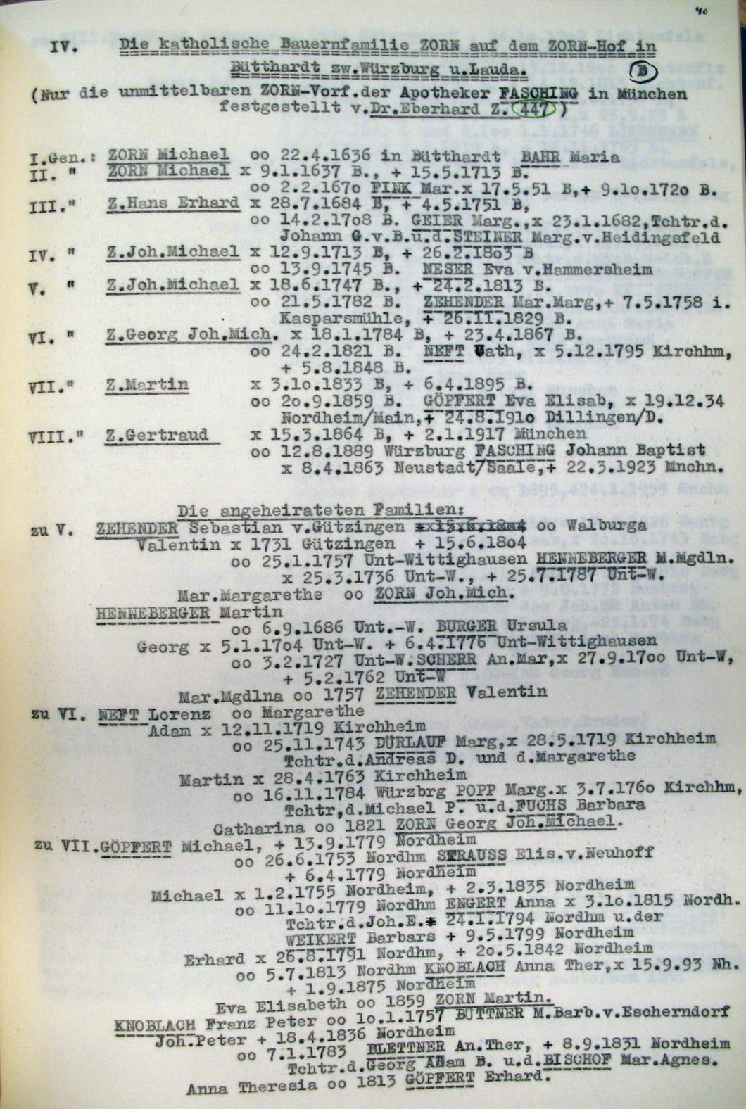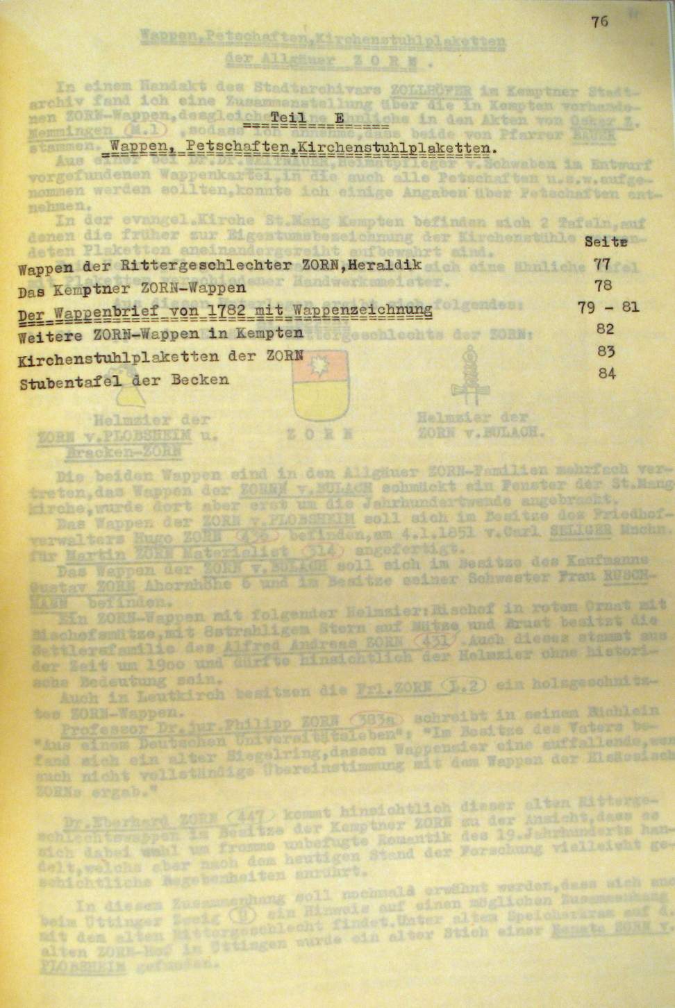 | Überblick über die Gesamtfam. ZORN -aus I.Urkunden-B. | 15 - 18 | |