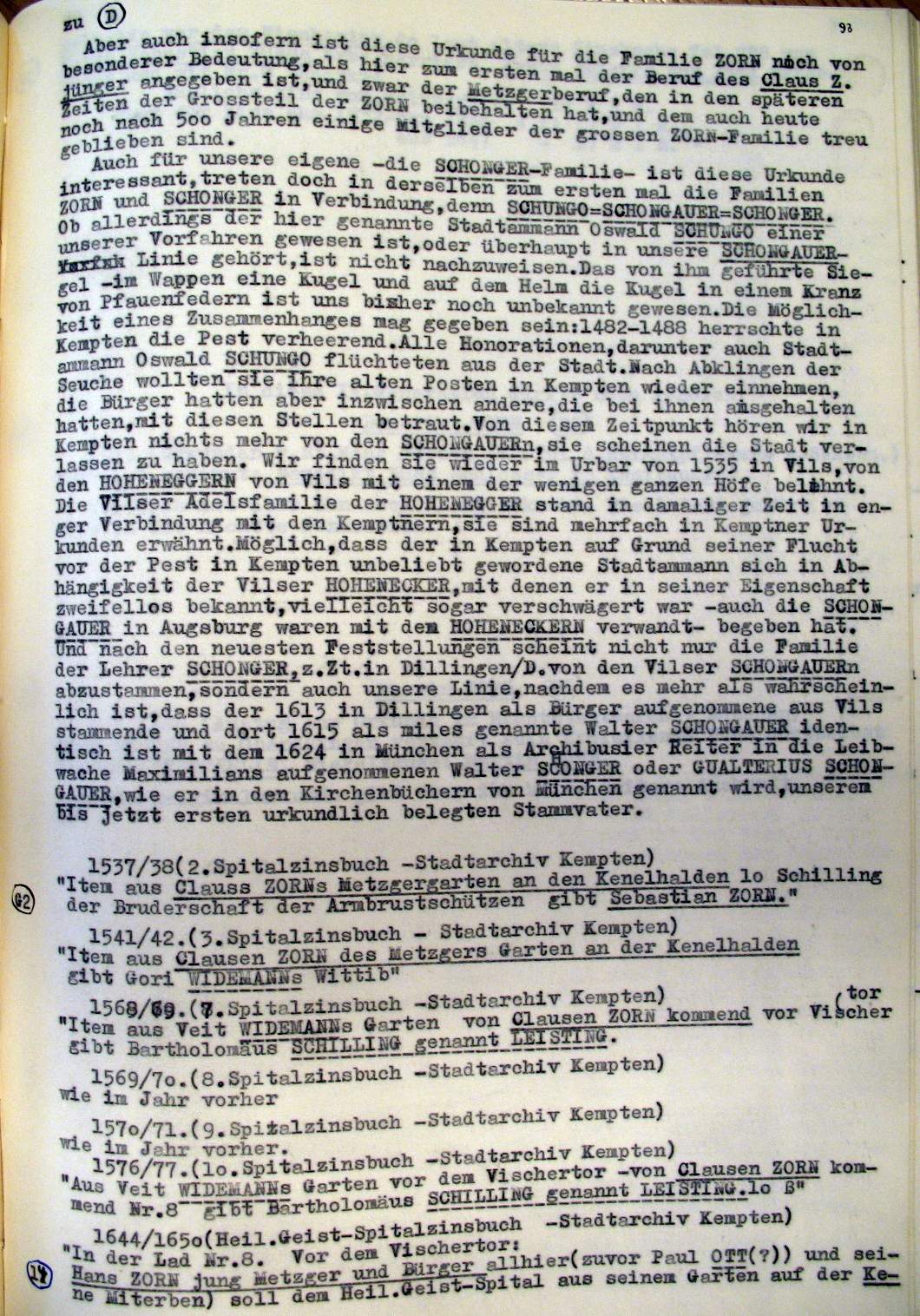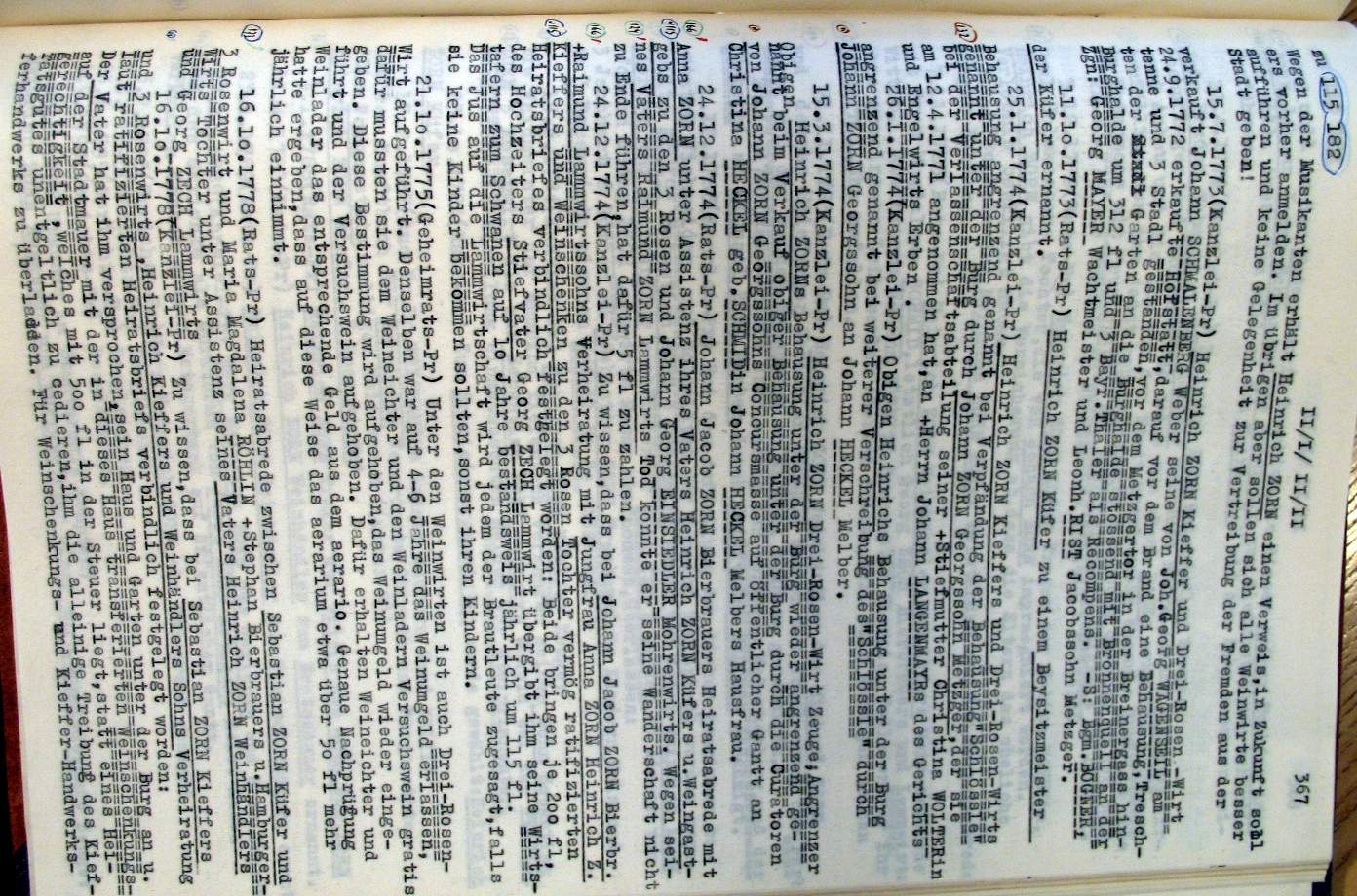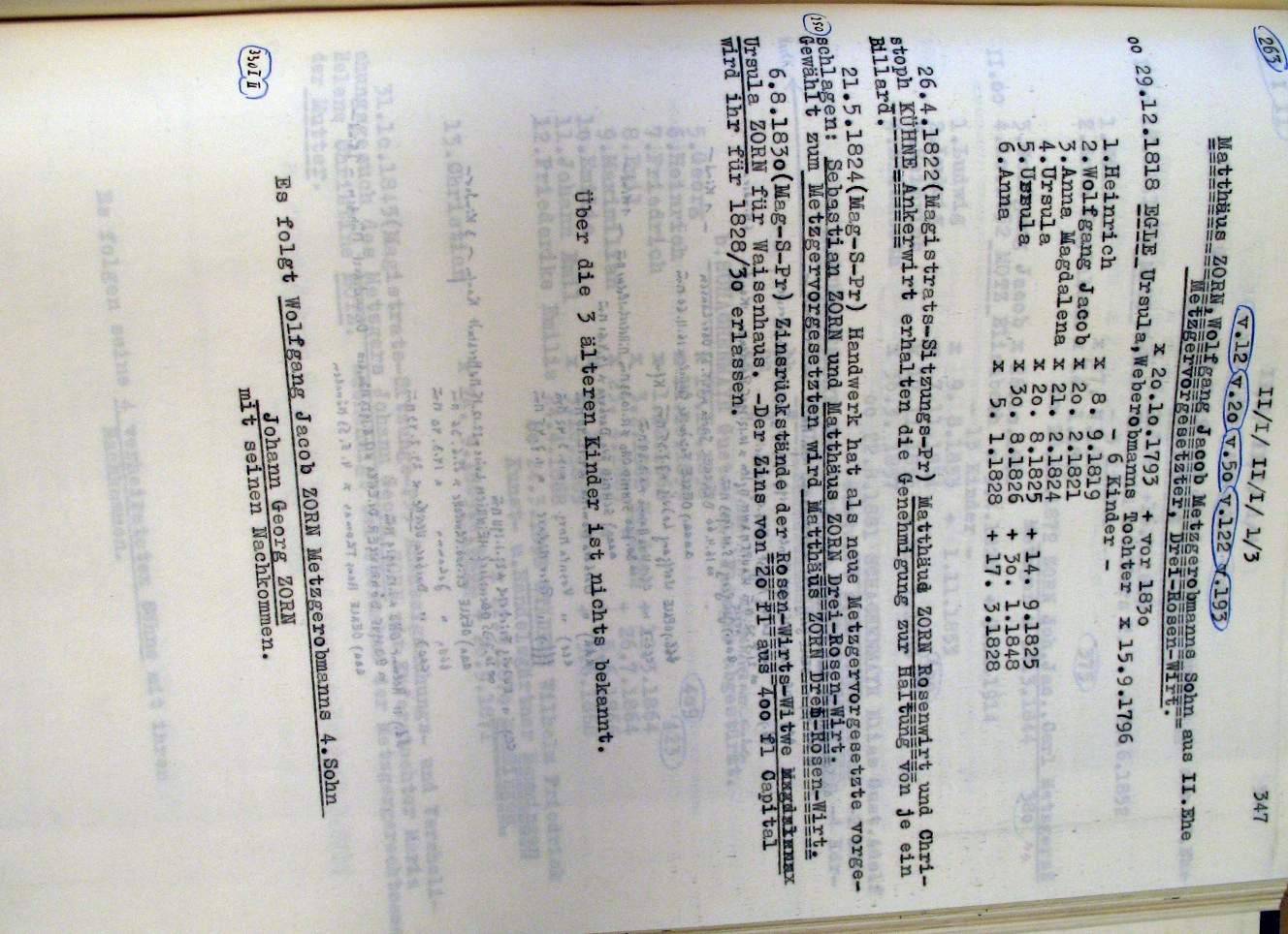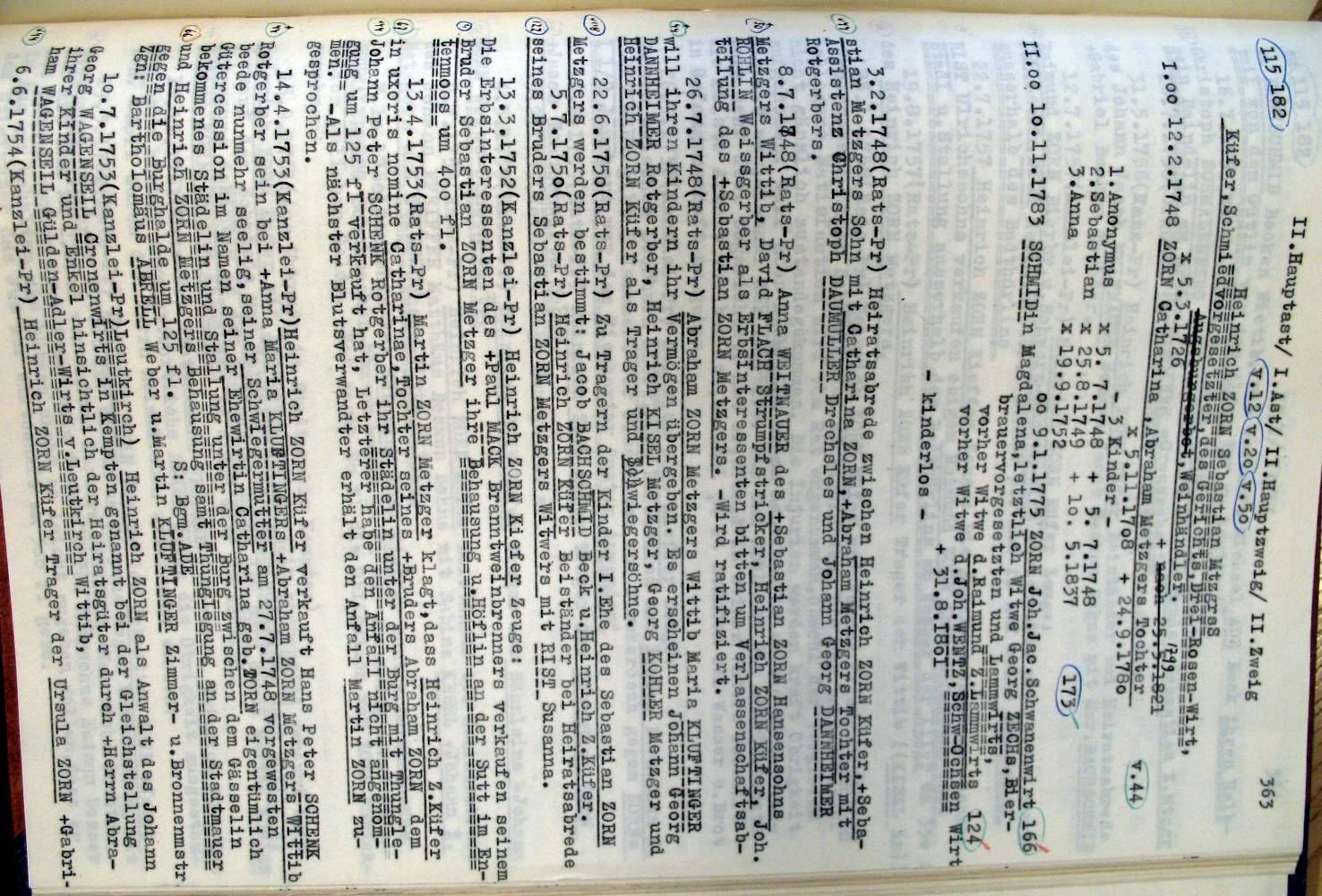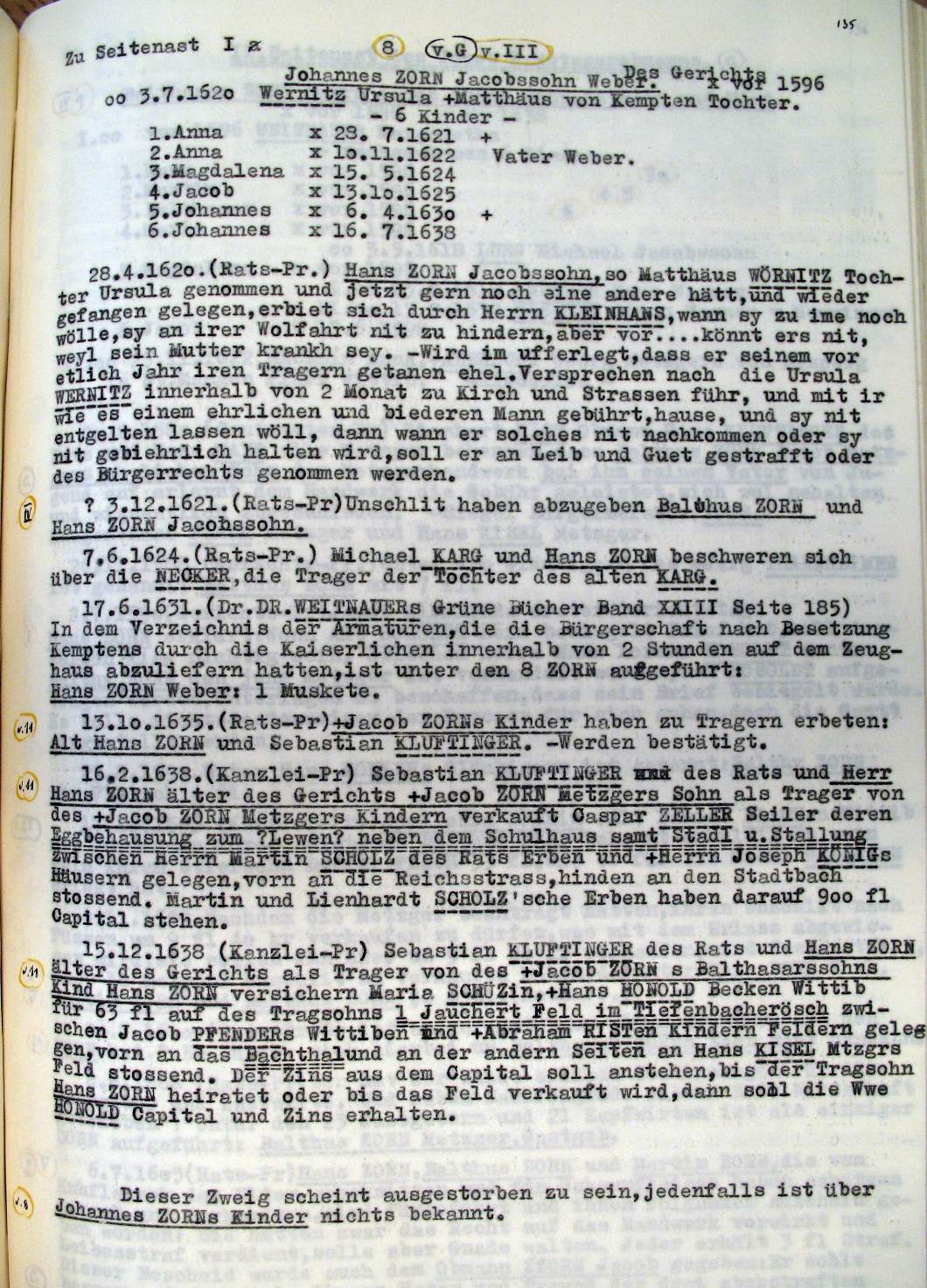 | Überblick über die Gesamtfam. ZORN -aus I.Urkunden-B. | 15 - 18 | |
