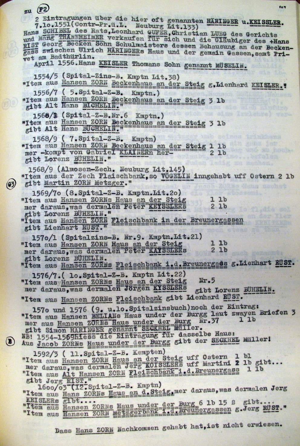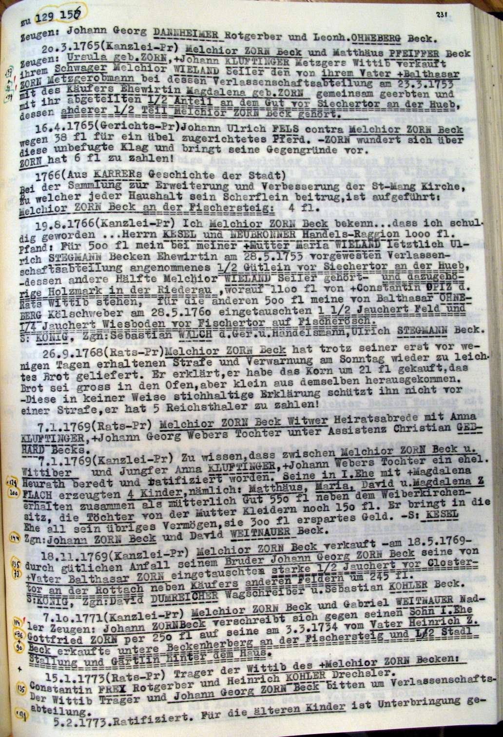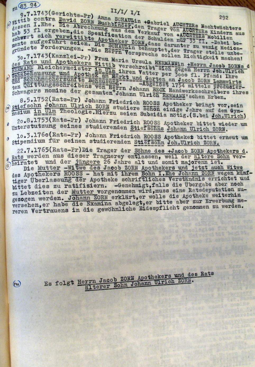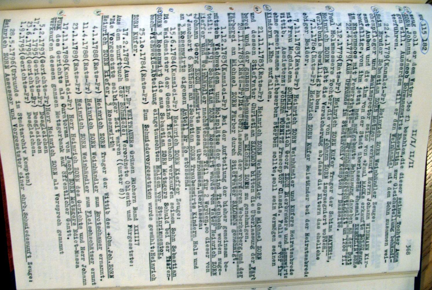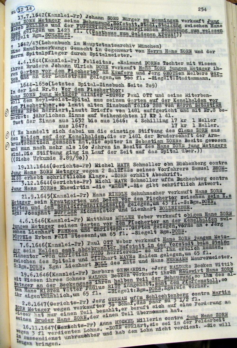 | Überblick über die Gesamtfam. ZORN -aus I.Urkunden-B. | 15 - 18 | |