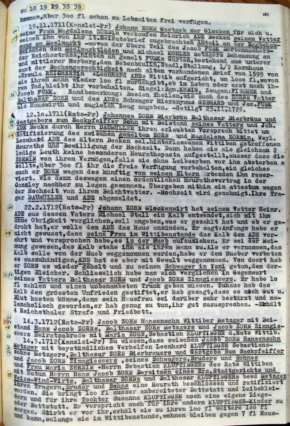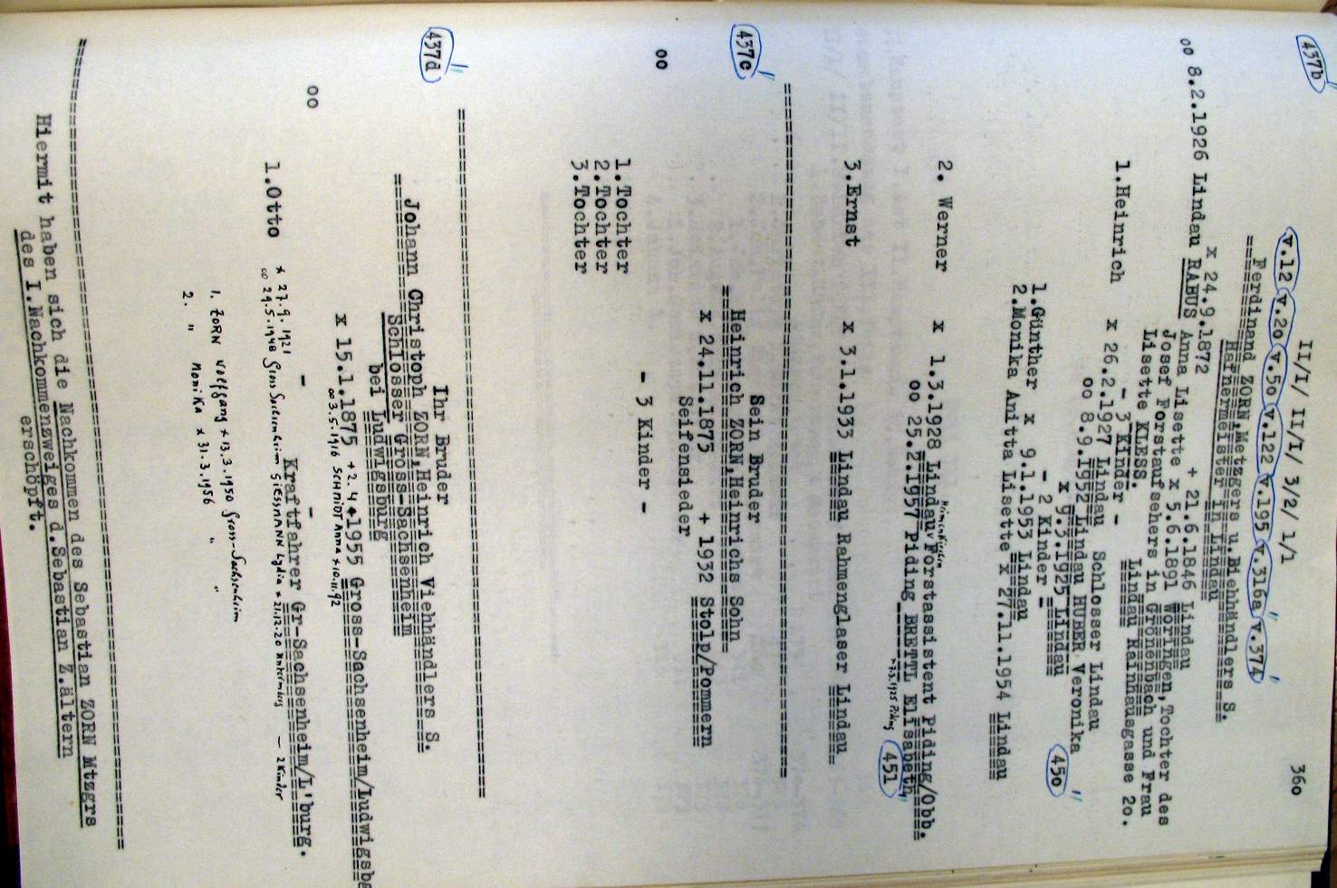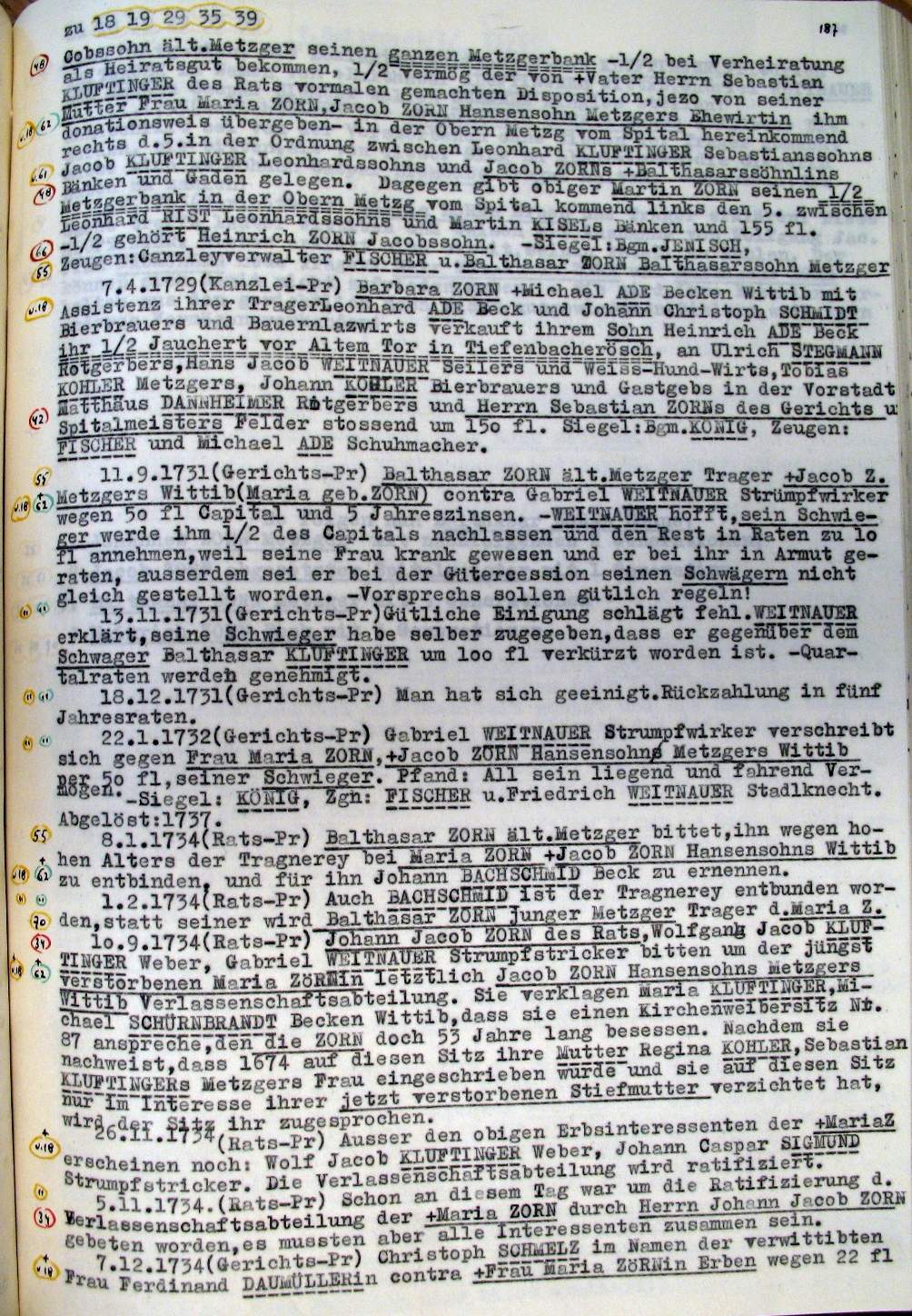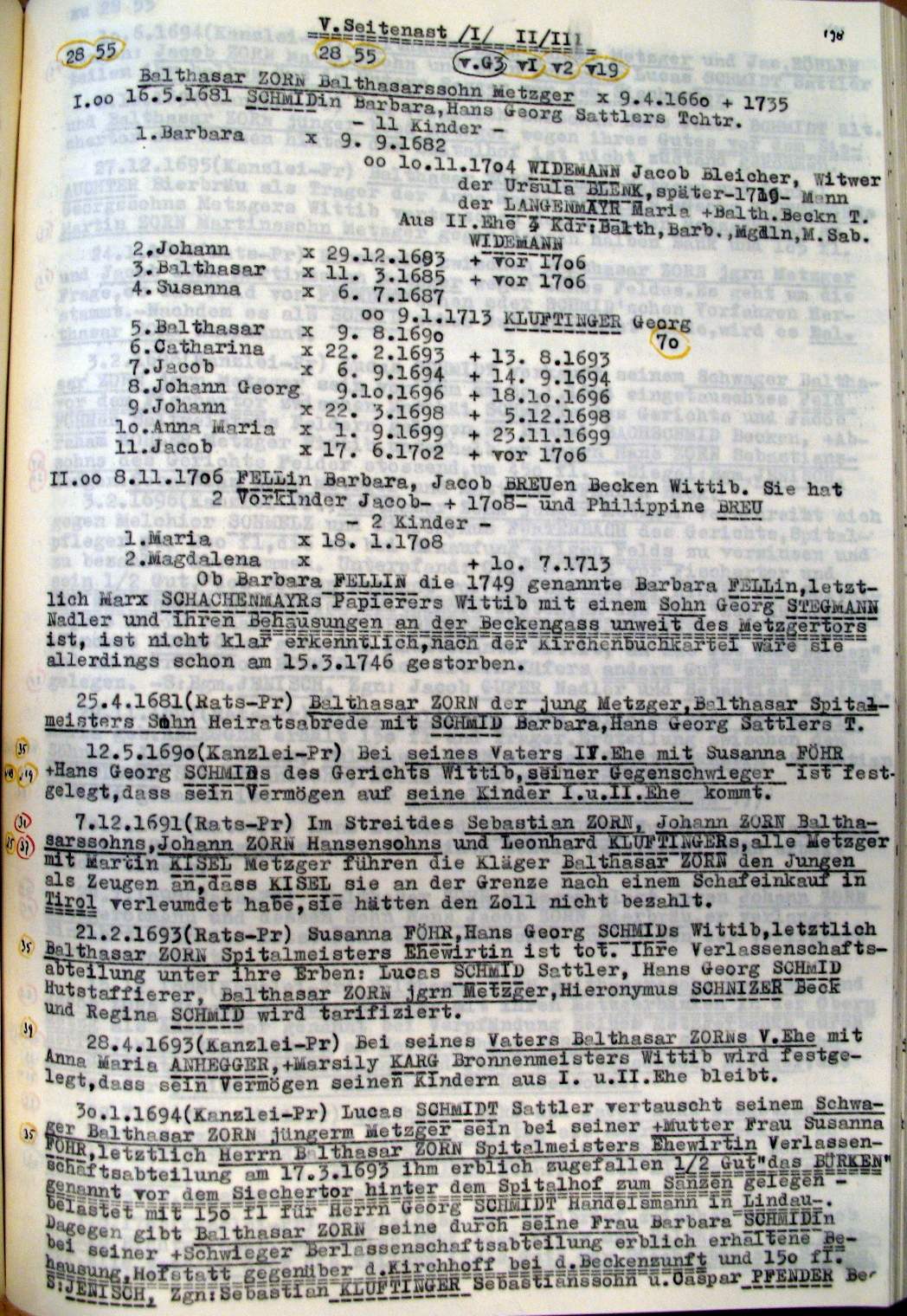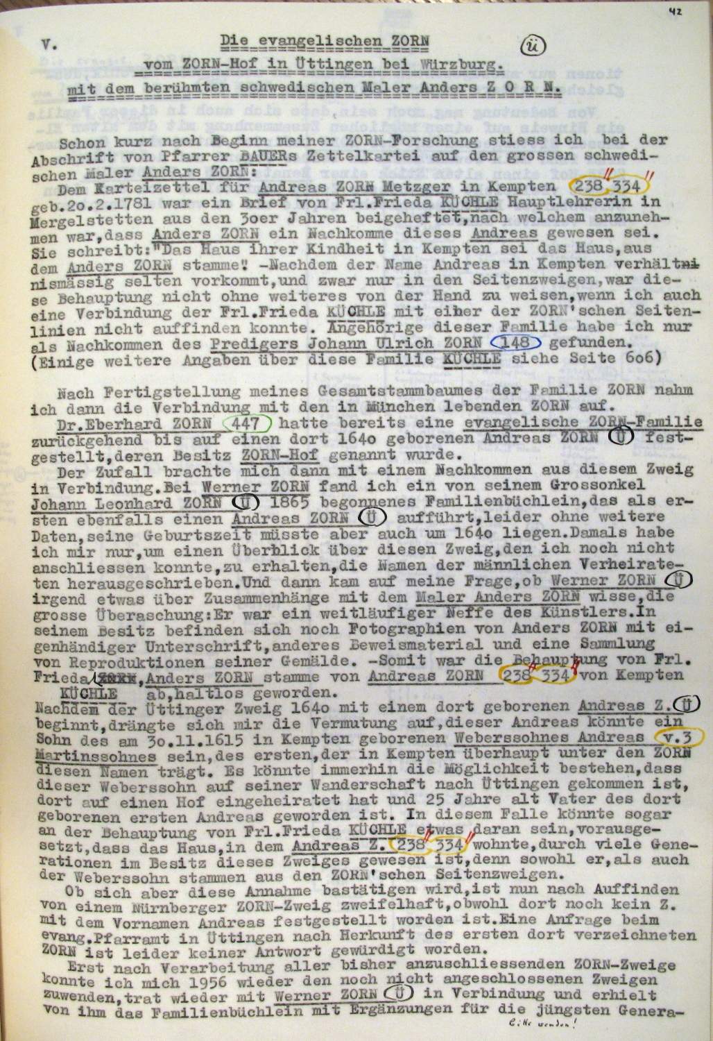 | Überblick über die Gesamtfam. ZORN -aus I.Urkunden-B. | 15 - 18 | |