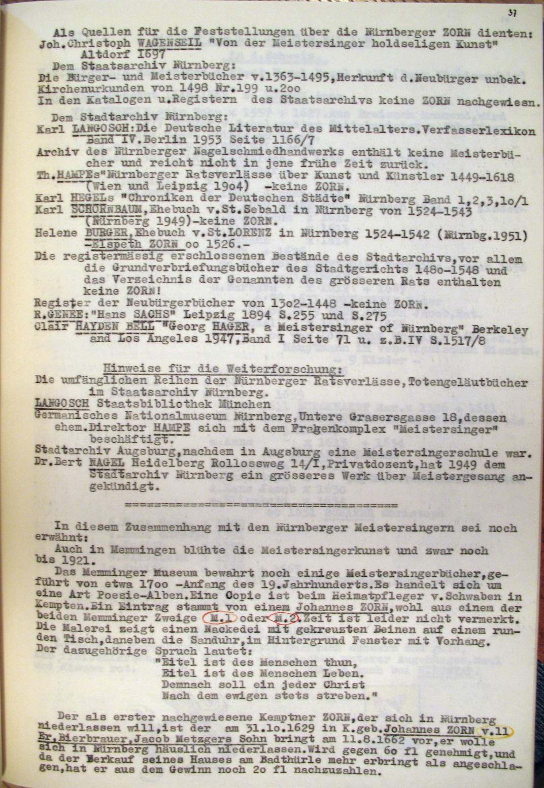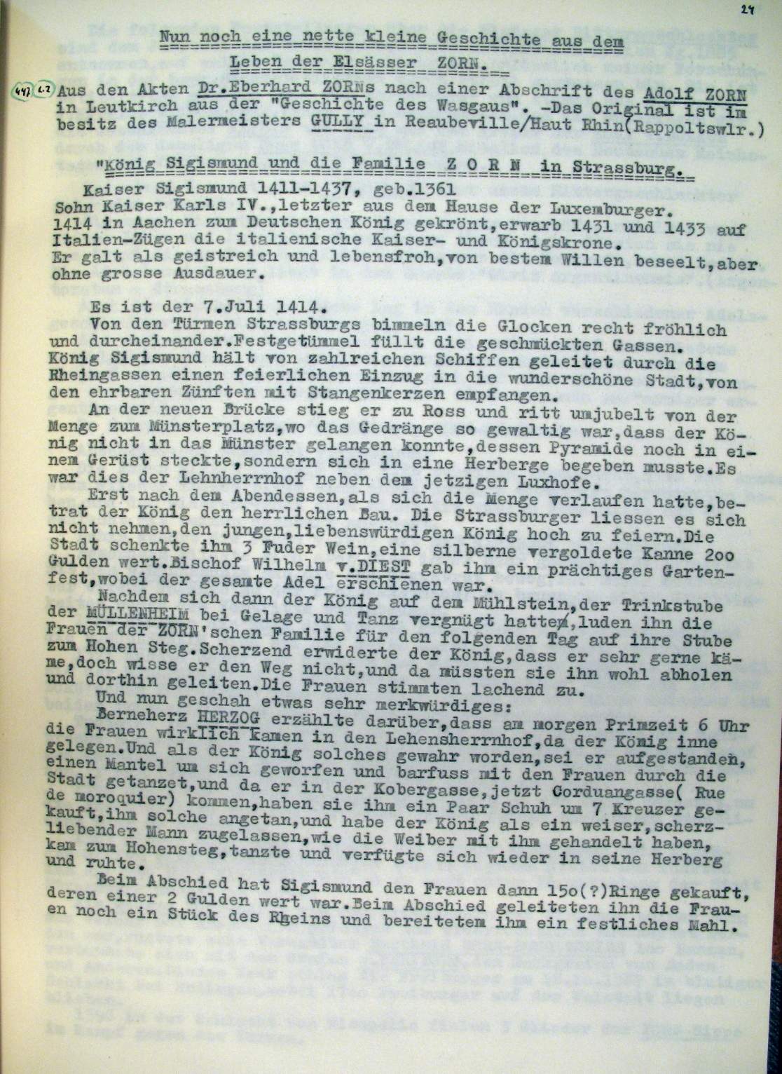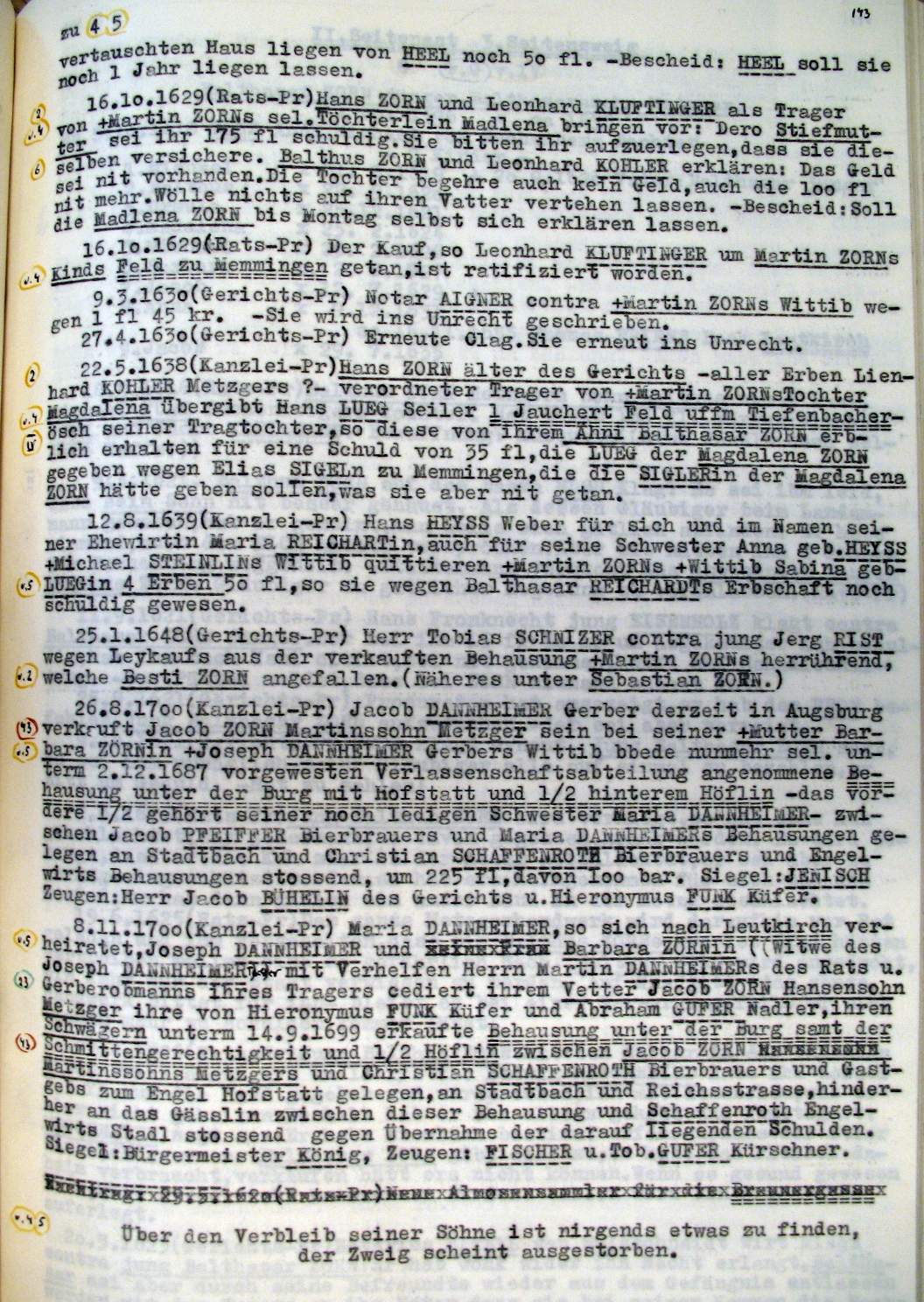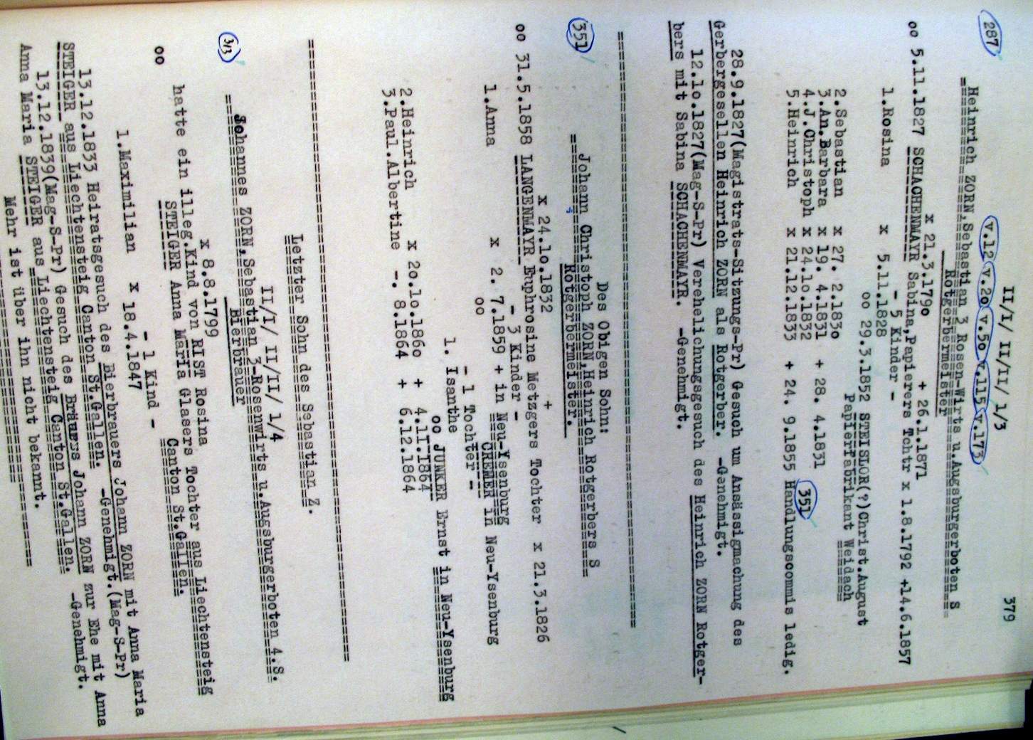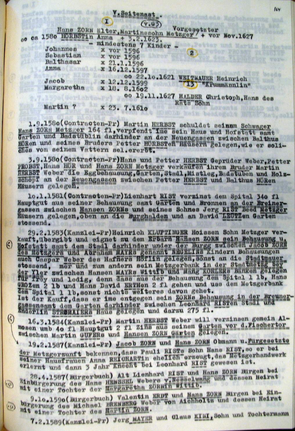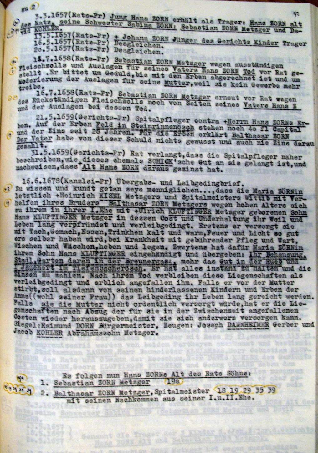 | Überblick über die Gesamtfam. ZORN -aus I.Urkunden-B. | 15 - 18 | |