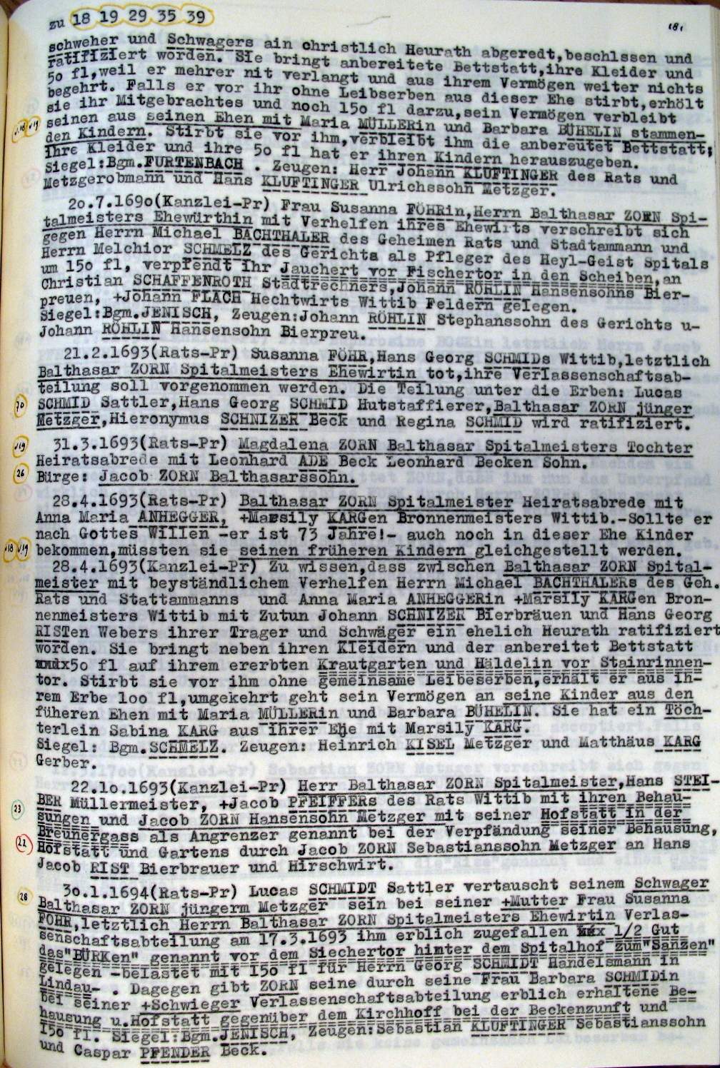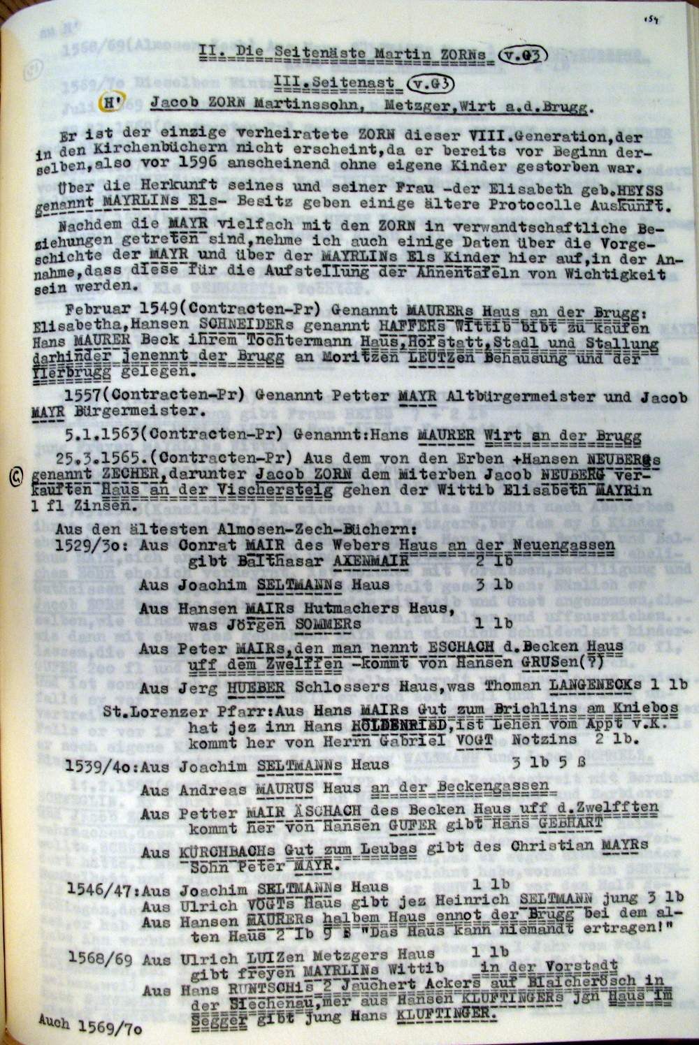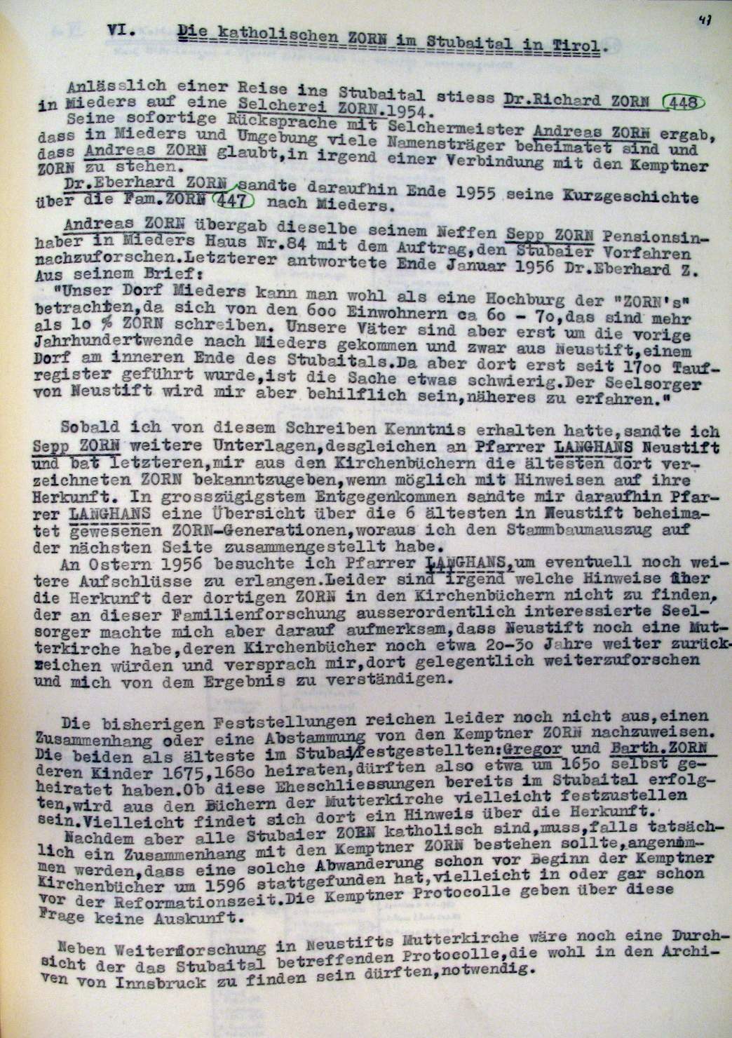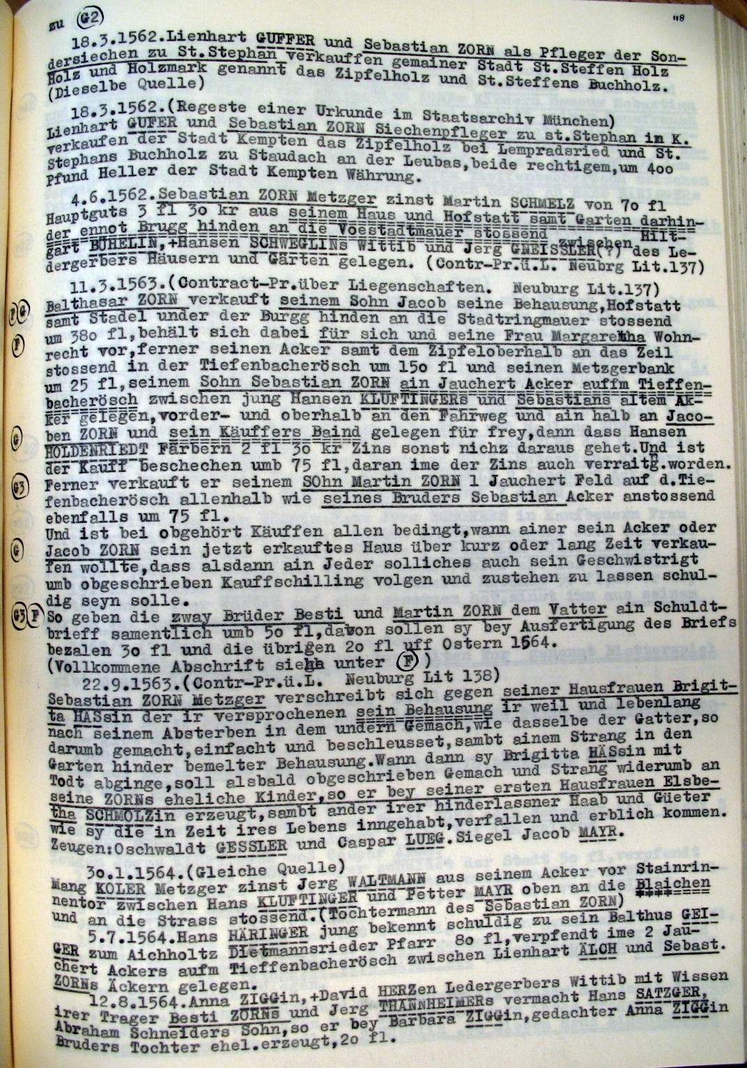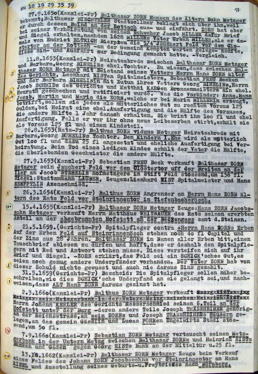 | Überblick über die Gesamtfam. ZORN -aus I.Urkunden-B. | 15 - 18 | |