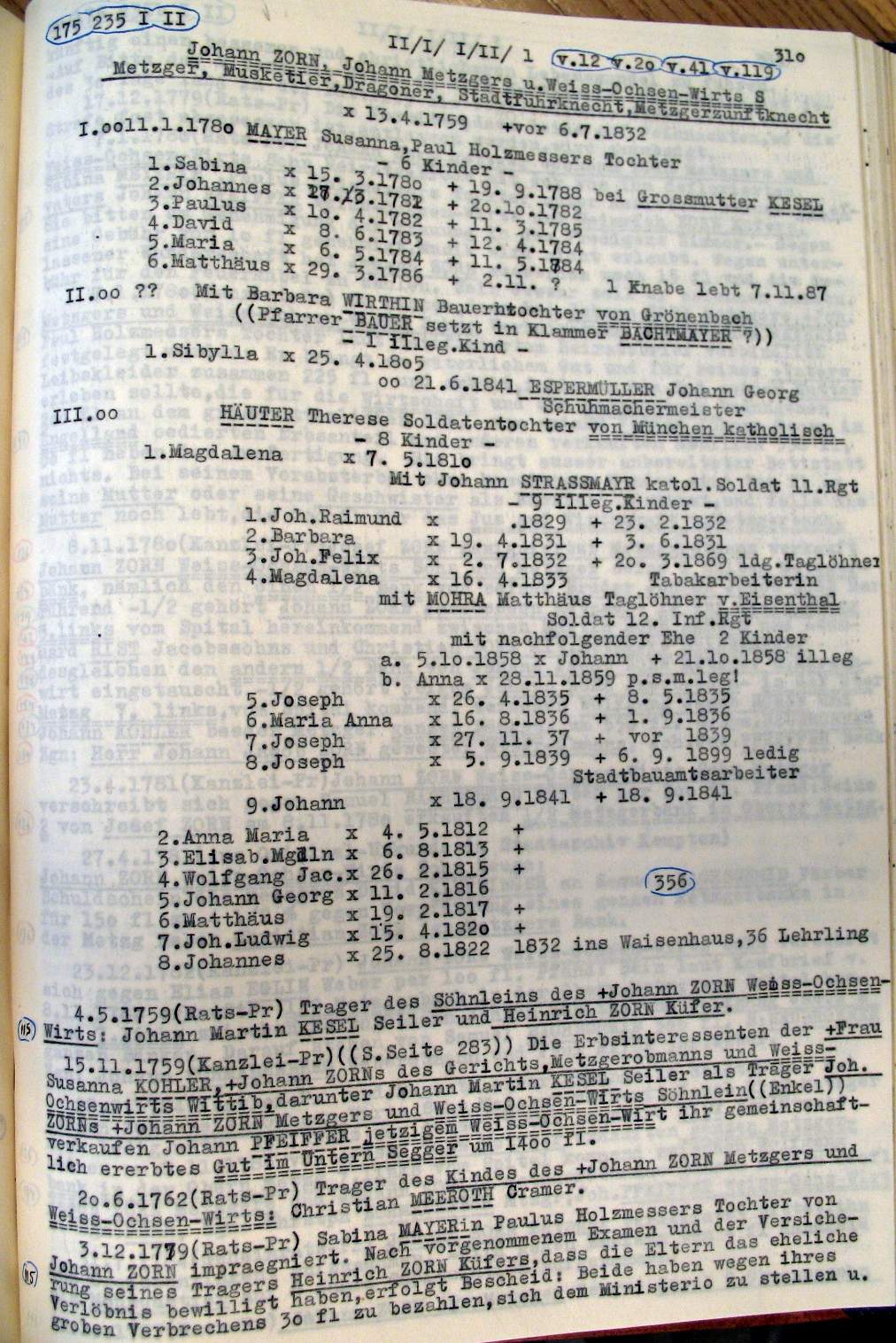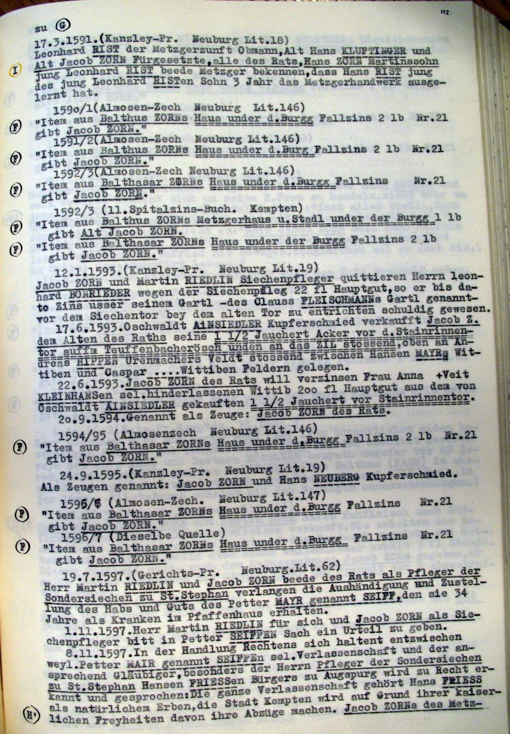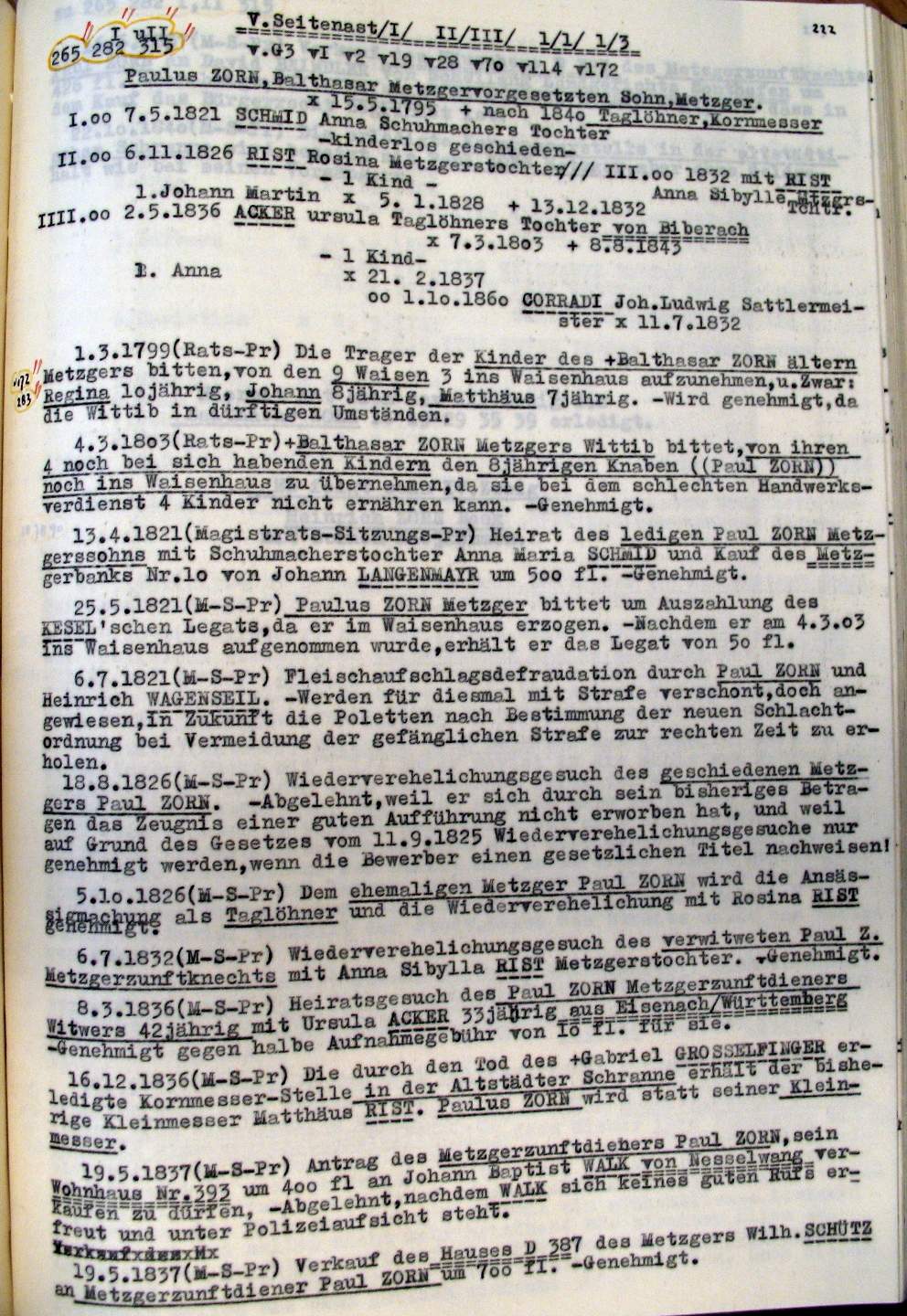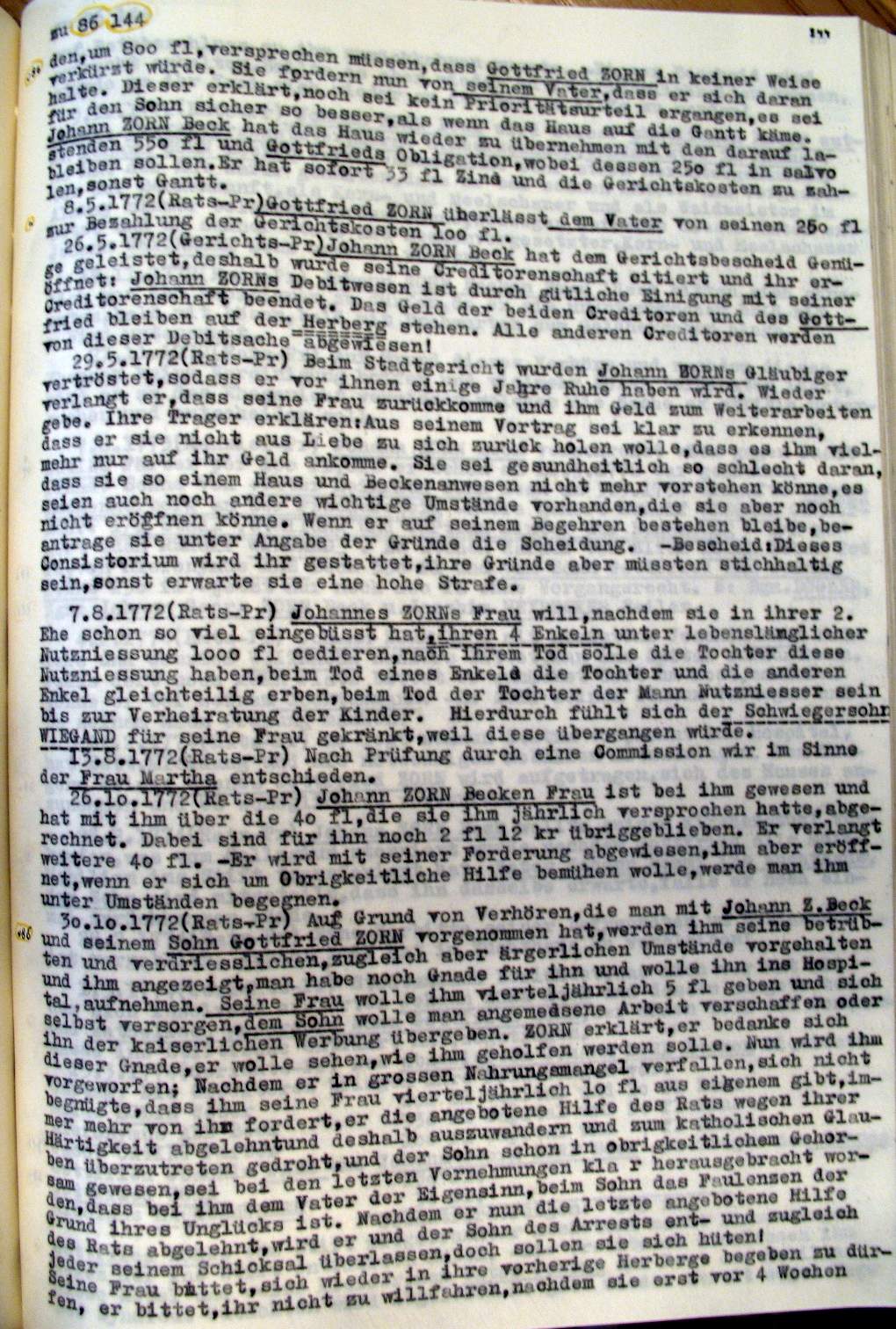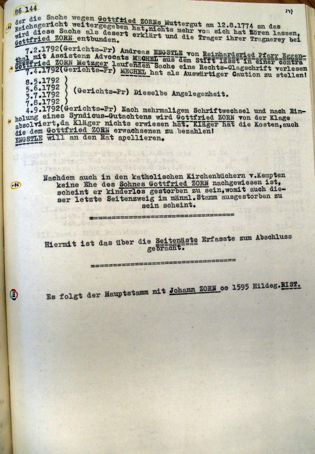 | Überblick über die Gesamtfam. ZORN -aus I.Urkunden-B. | 15 - 18 | |
