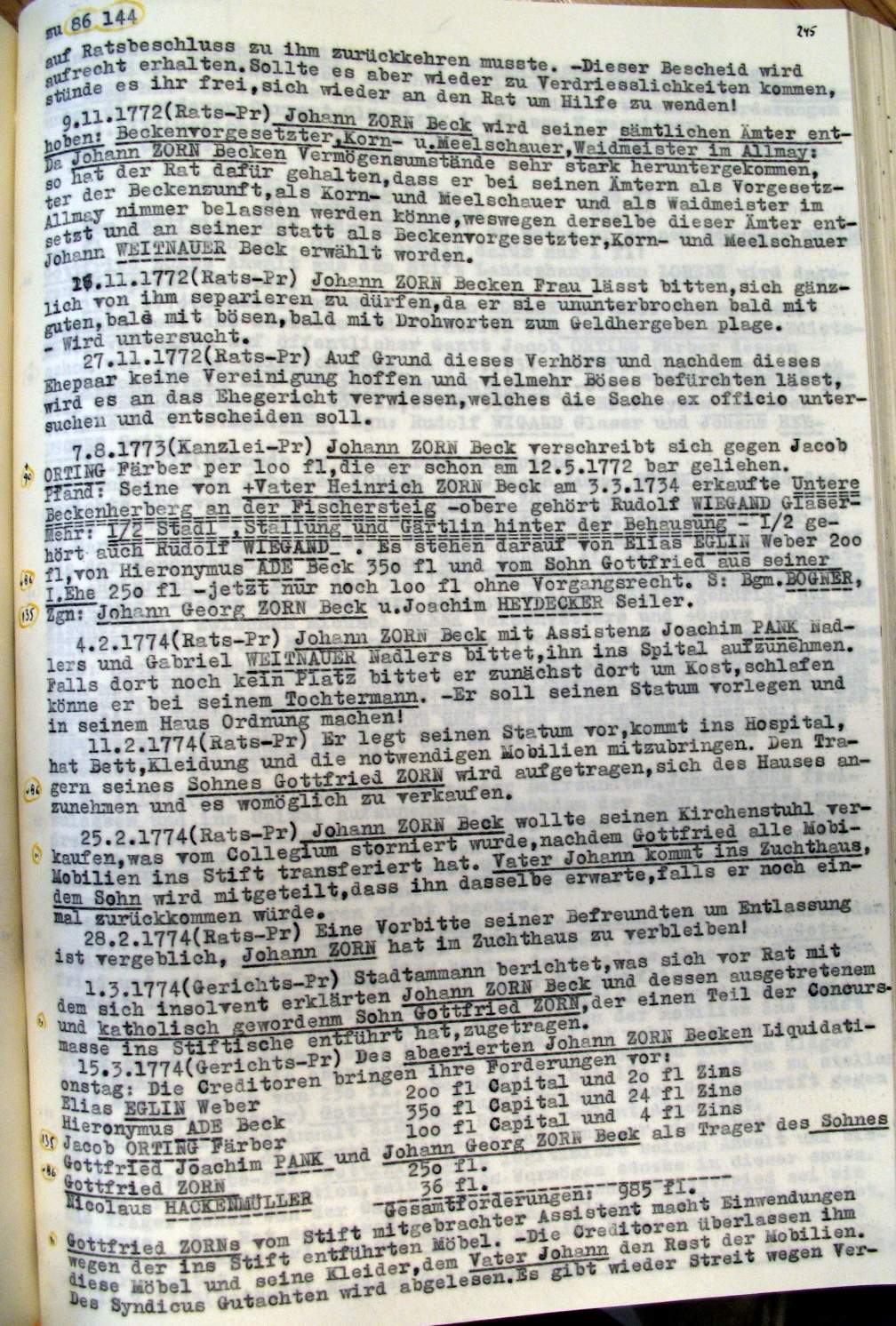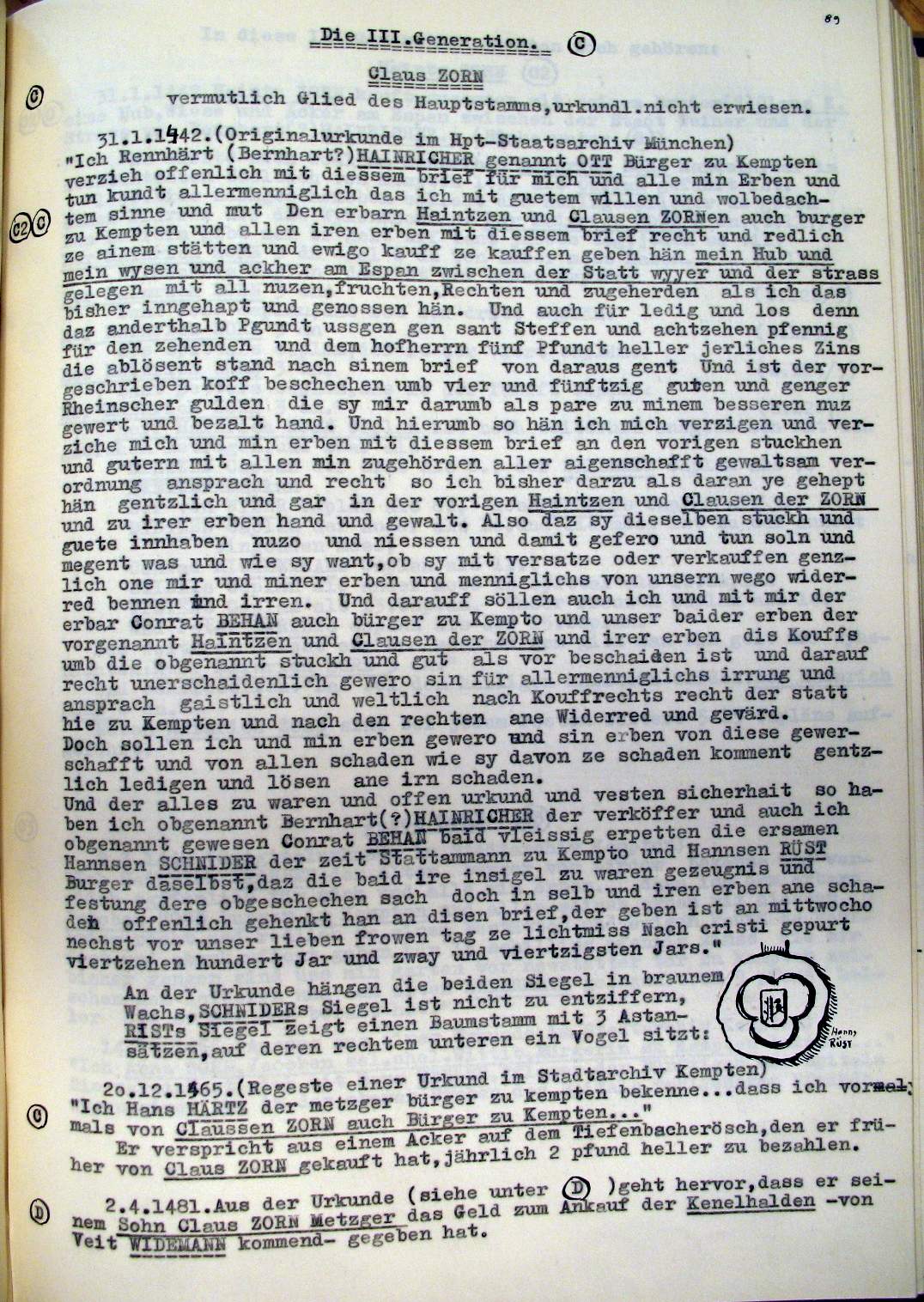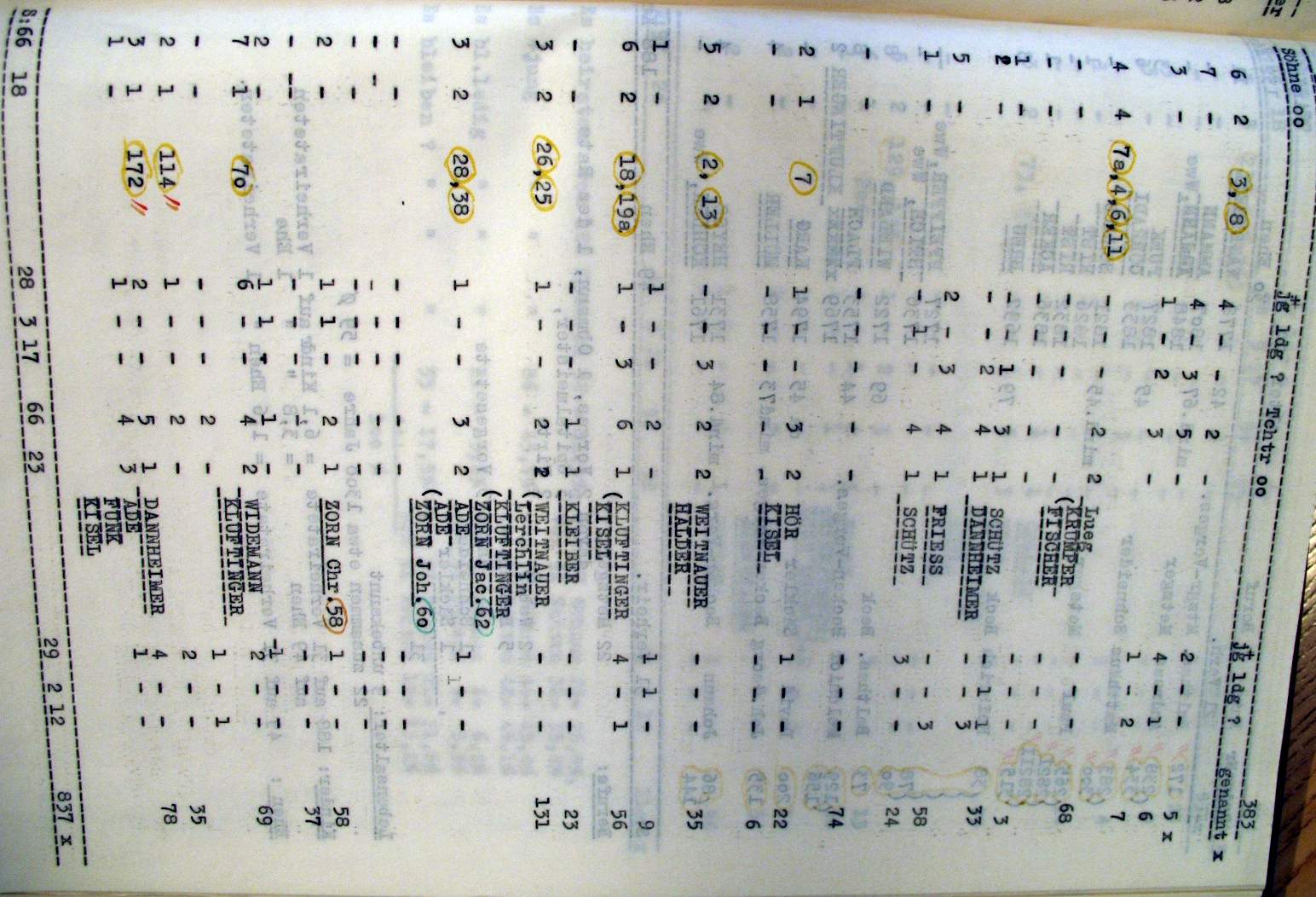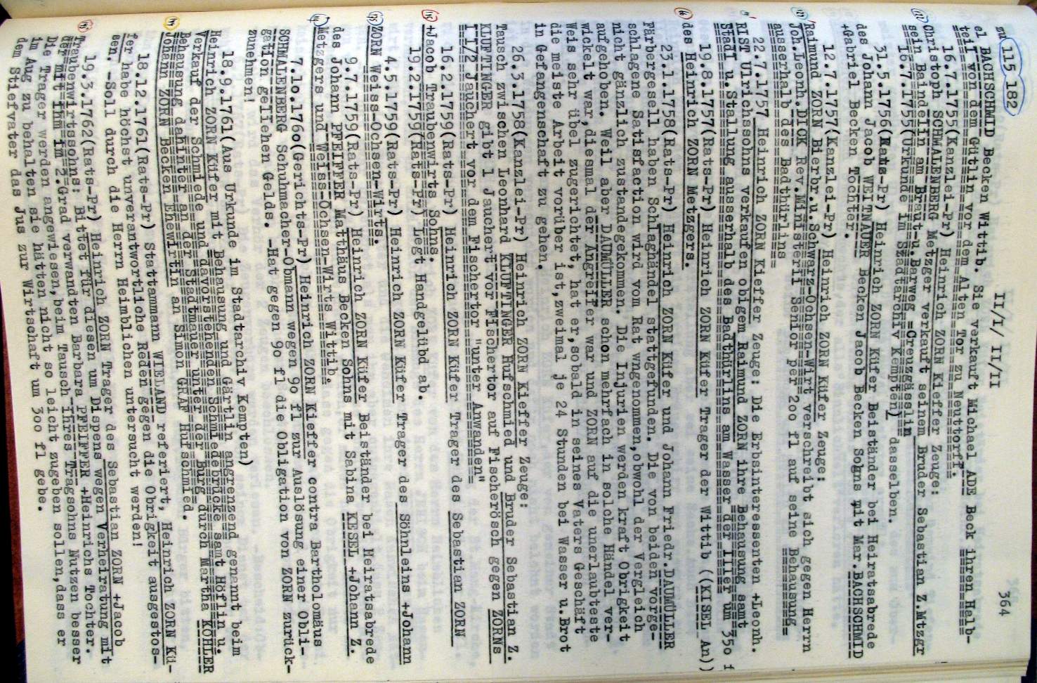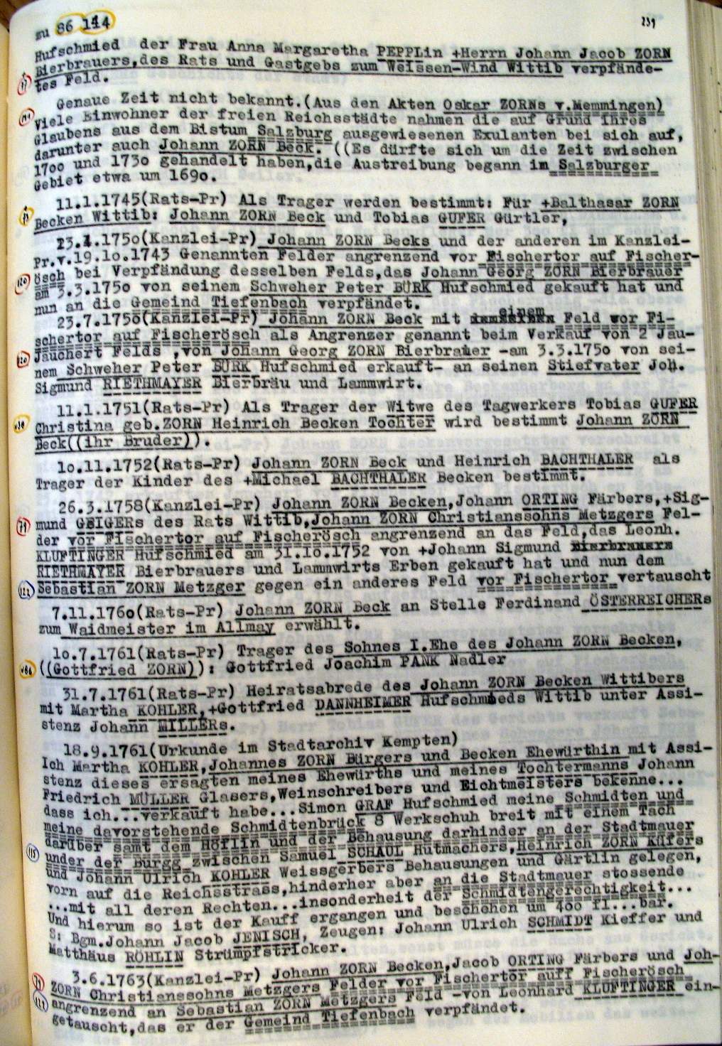 | Überblick über die Gesamtfam. ZORN -aus I.Urkunden-B. | 15 - 18 | |