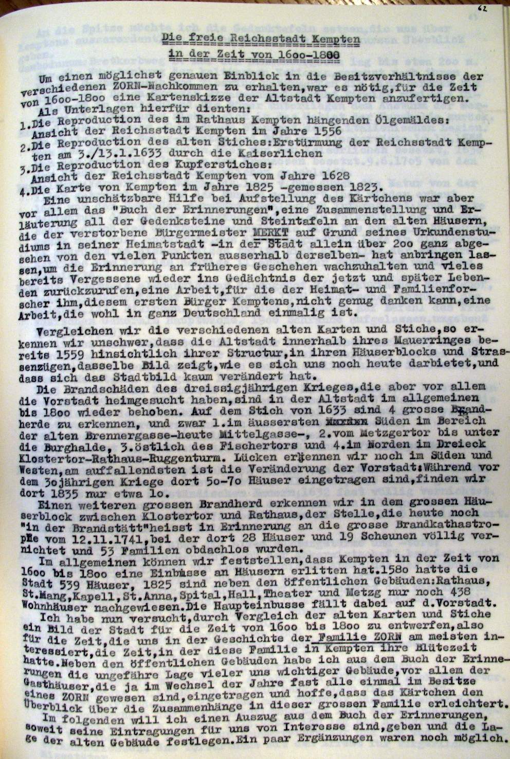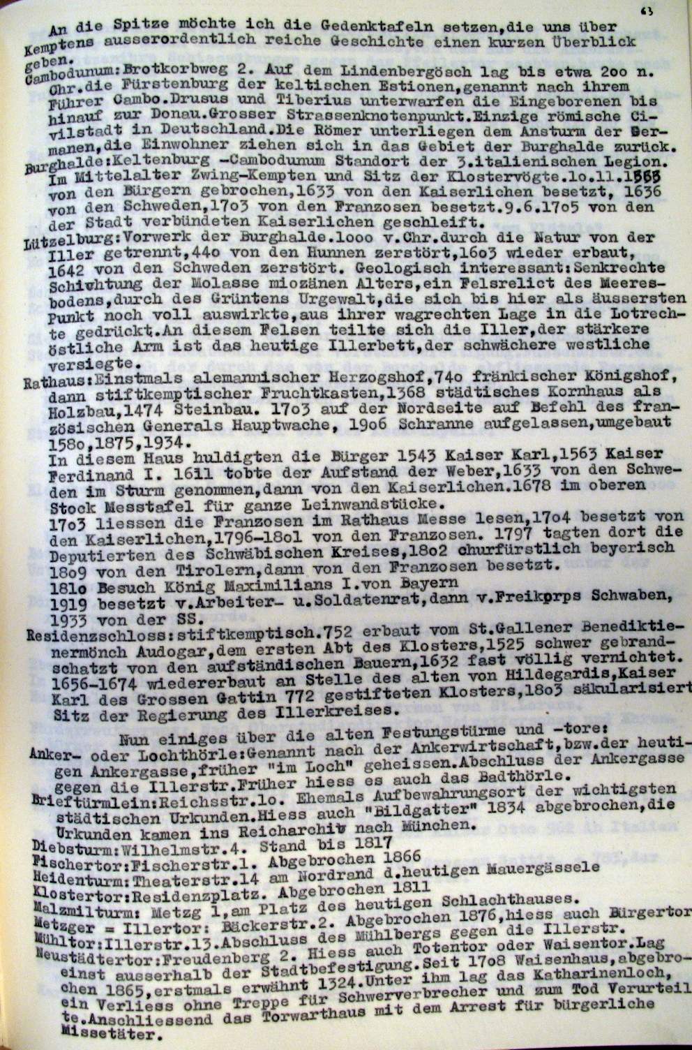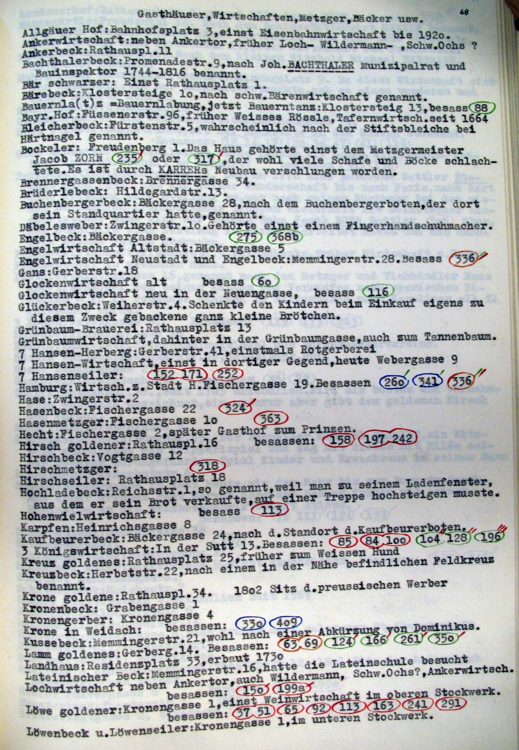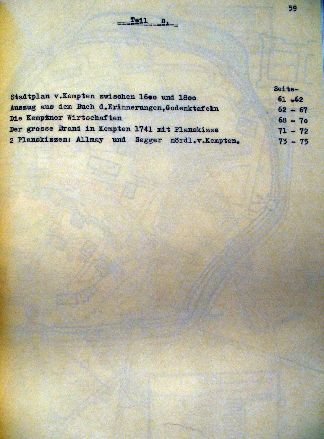 Kempten in der Zeit v. ca 1600-1800 Planskizzen, Erinnerungstafeln, Wirtschaften |