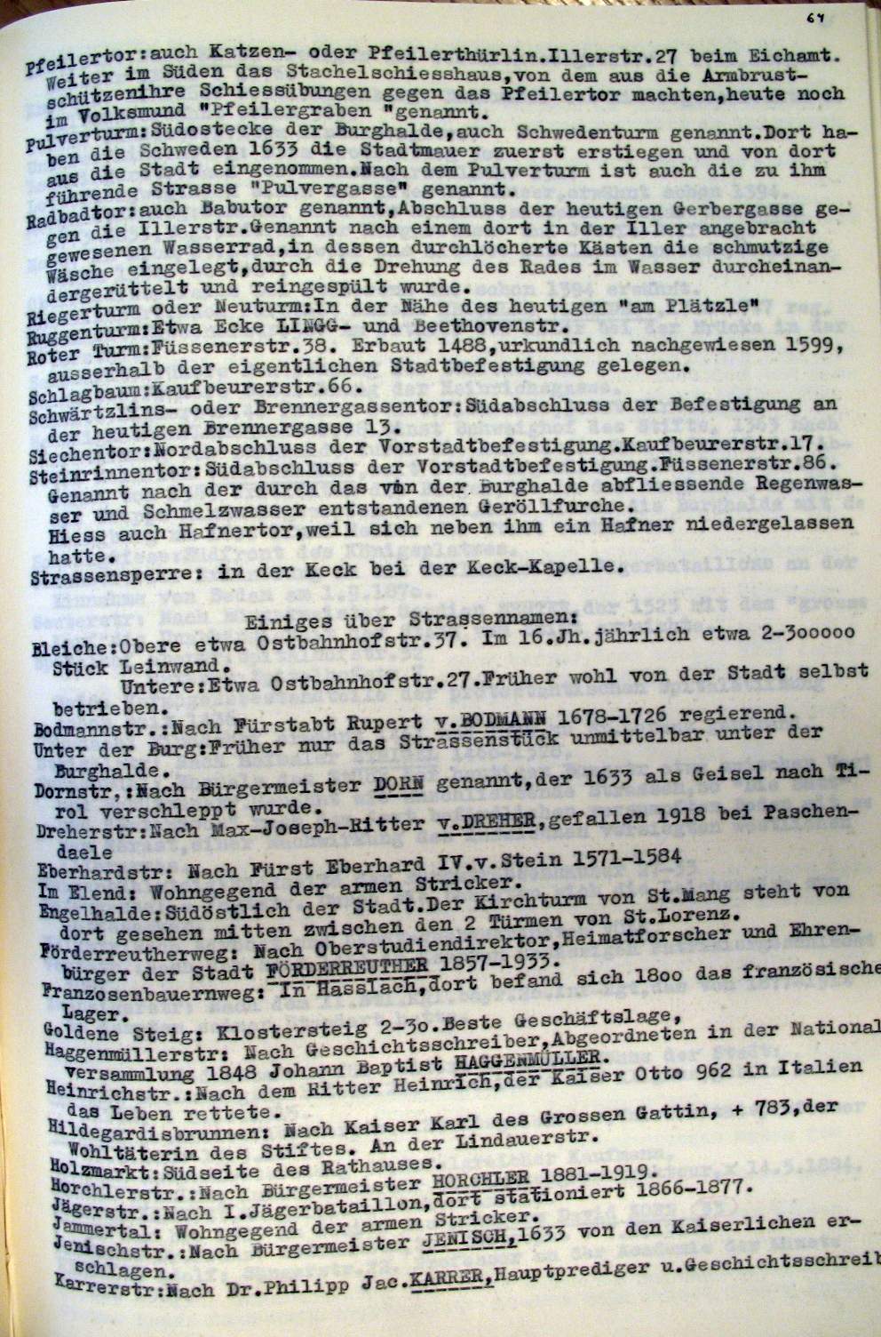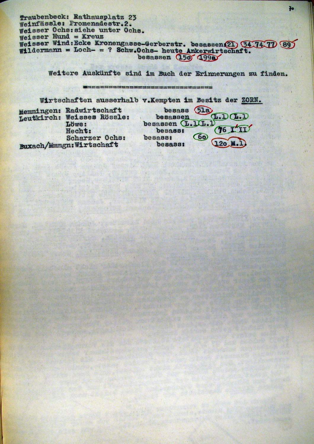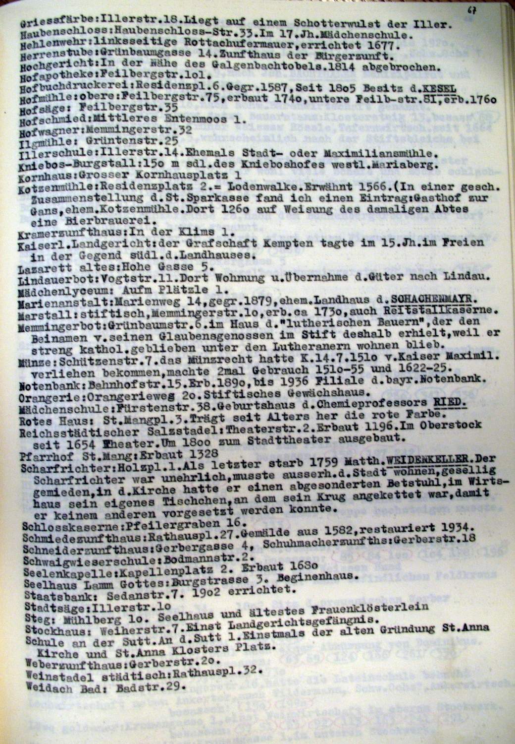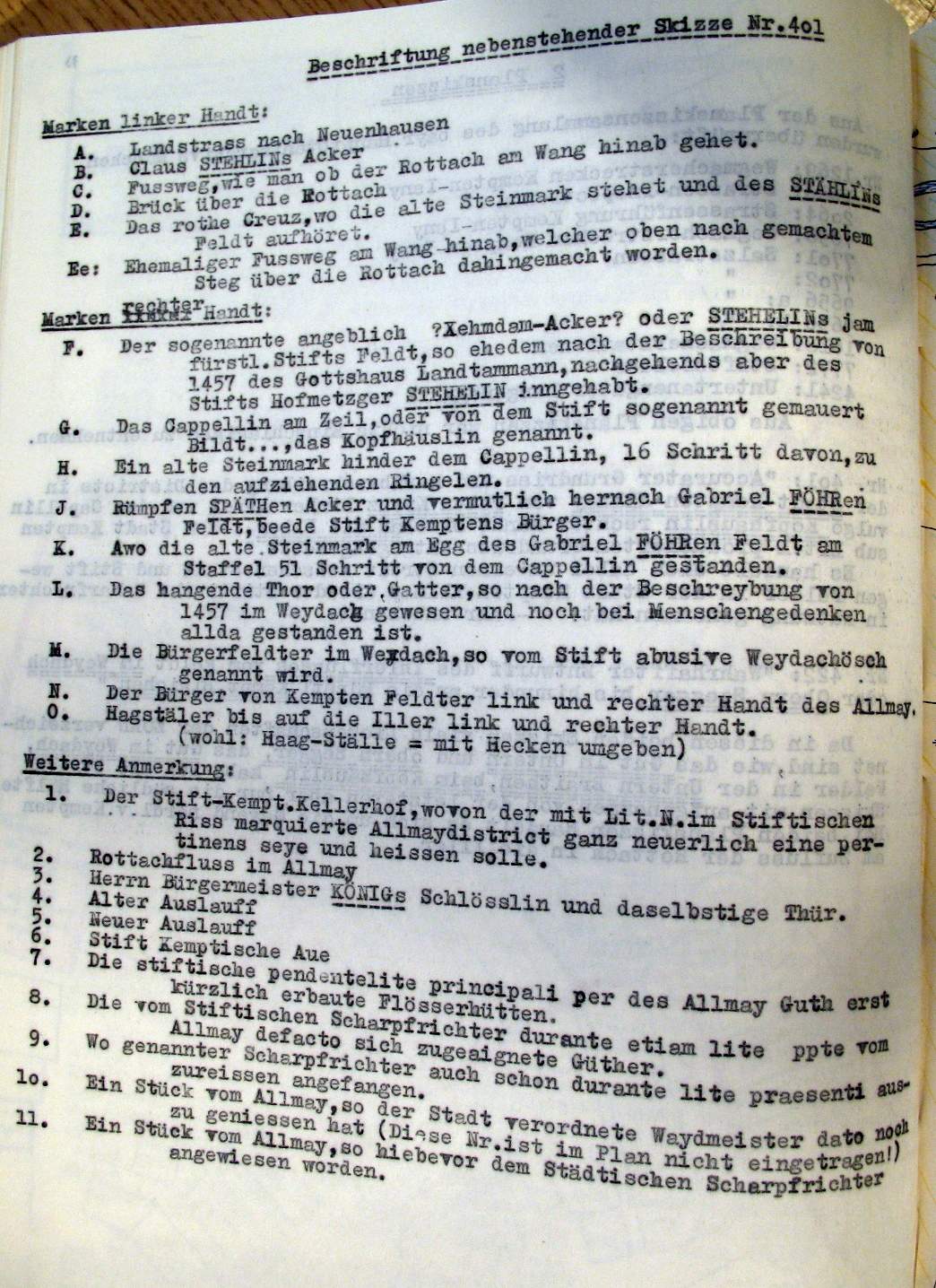 Kempten in der Zeit v. ca 1600-1800 Planskizzen, Erinnerungstafeln, Wirtschaften |