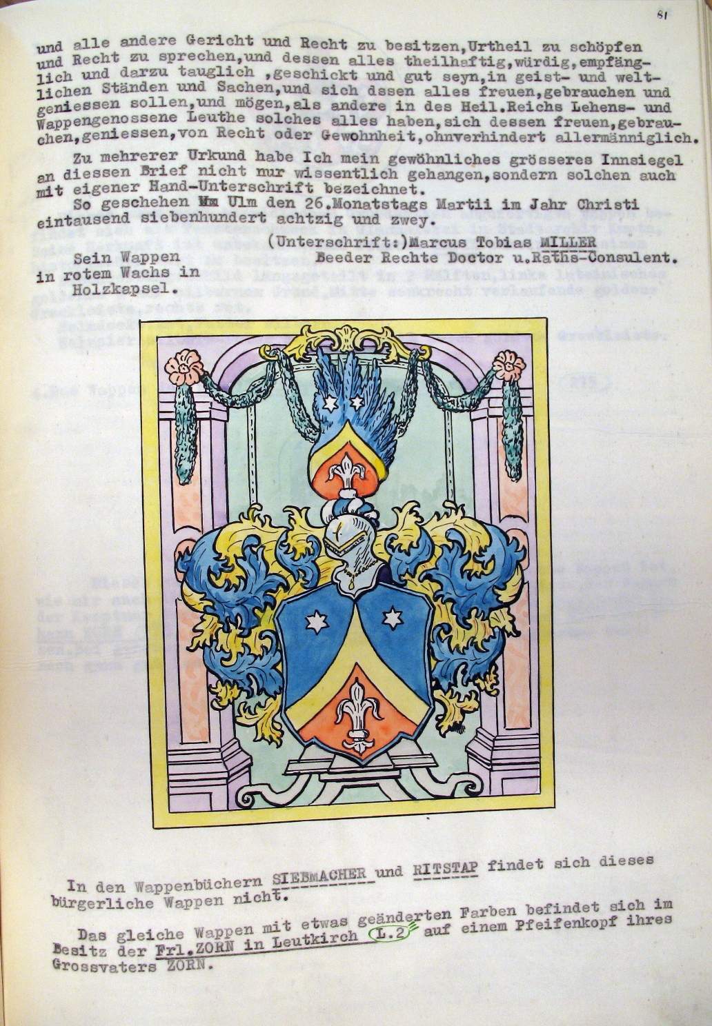 Wappen, Petschaften, Kirchenstuhlplaketten. Der Wappenbrief von 1782 |