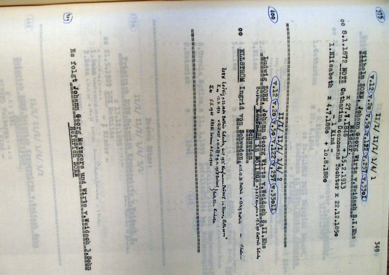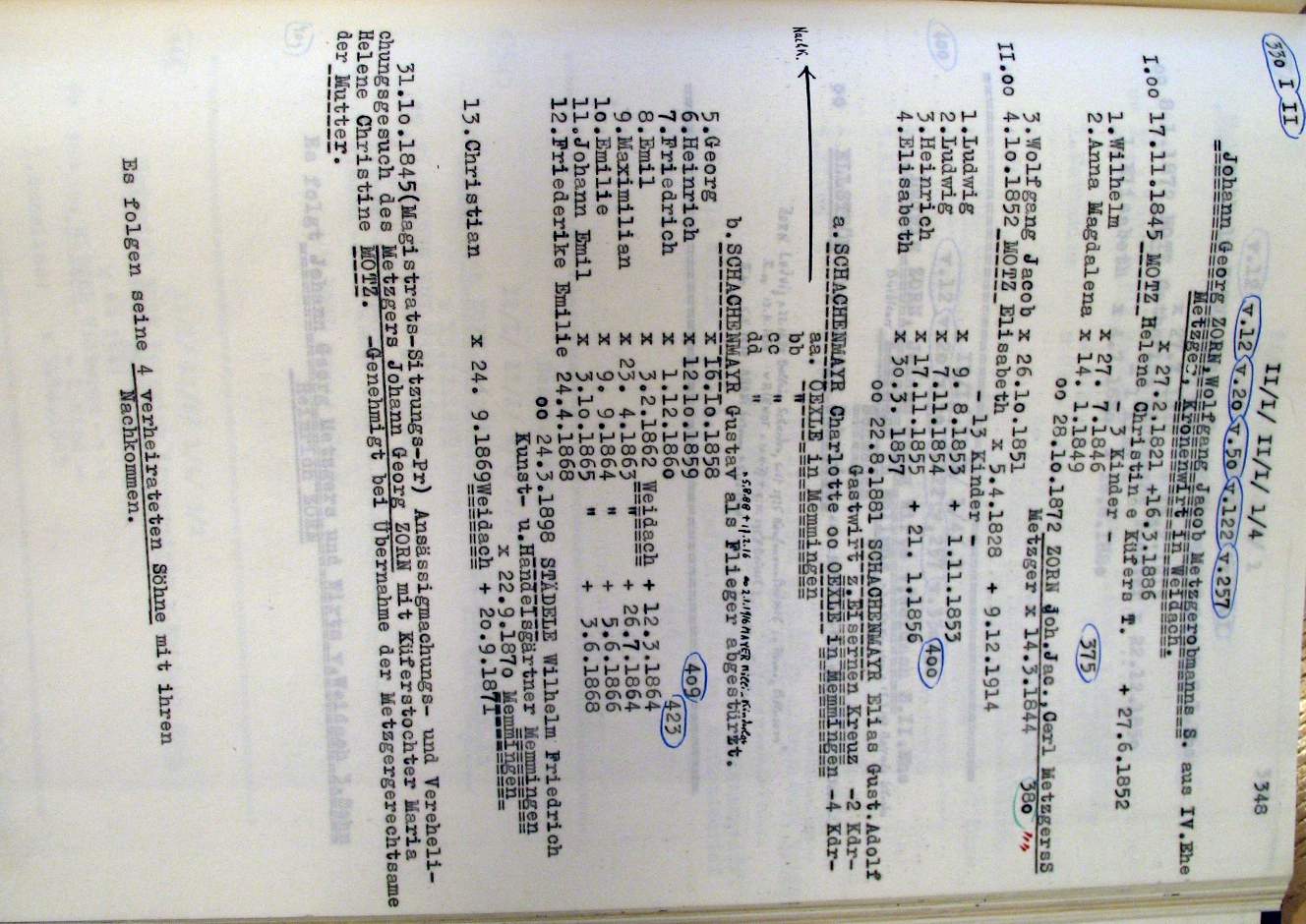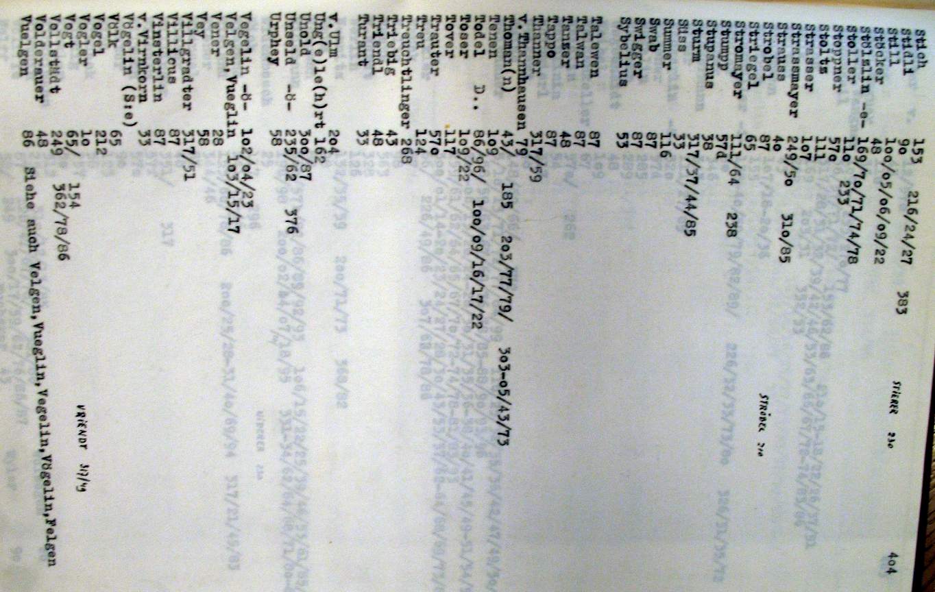 Die in diesem I. Band vorkommenden Zorn Seite_407.jpg Seite_408.jpg Seite_409.jpg Seite_410.jpg Seite_411.jpg Das Elsässer Rittergeschlecht Zorn mit seinen Ästen Seite_412.jpg Zunamen (Zusammenstellung aus dem II. Urkundenbuch) Seite_413.jpg |