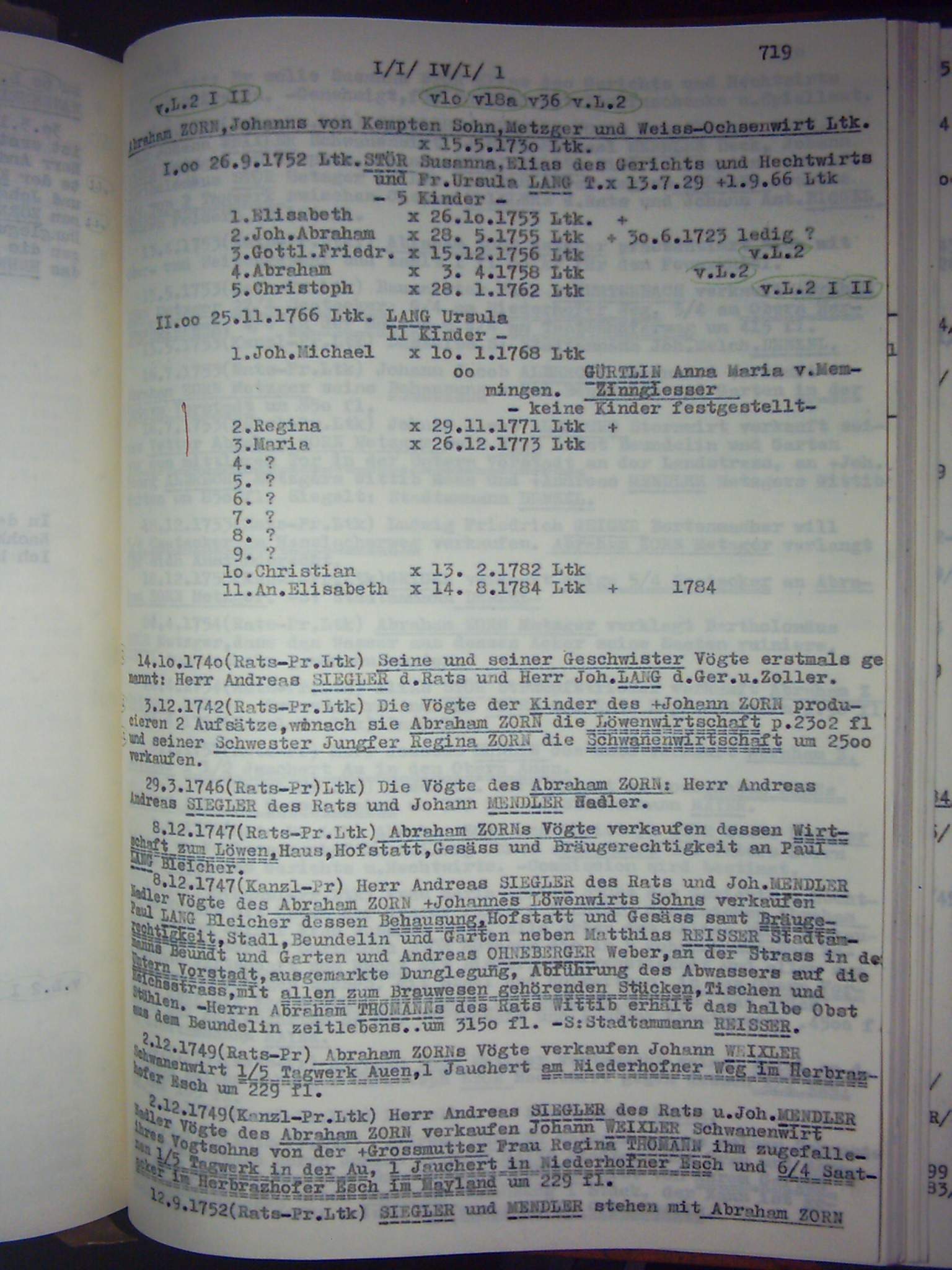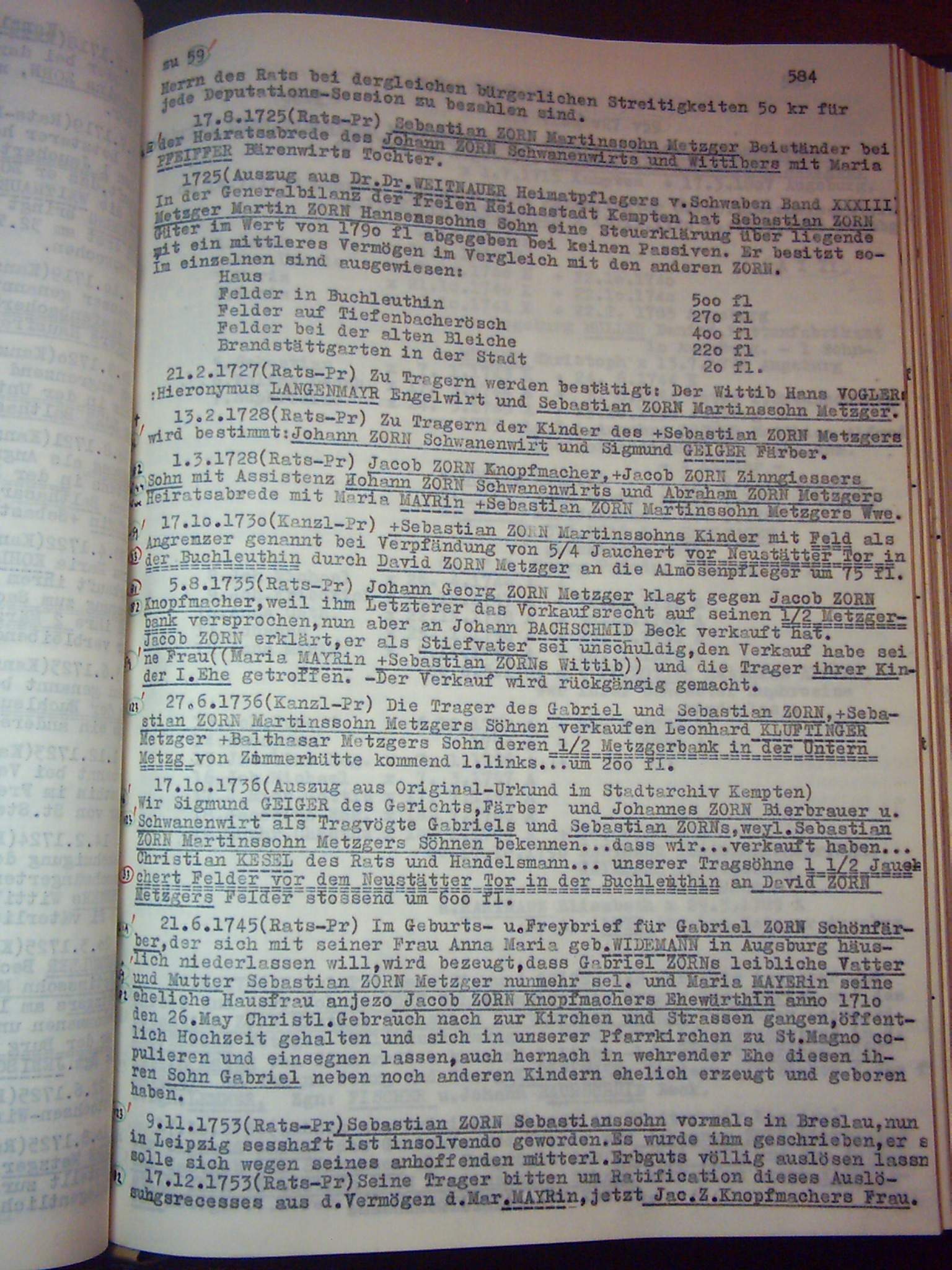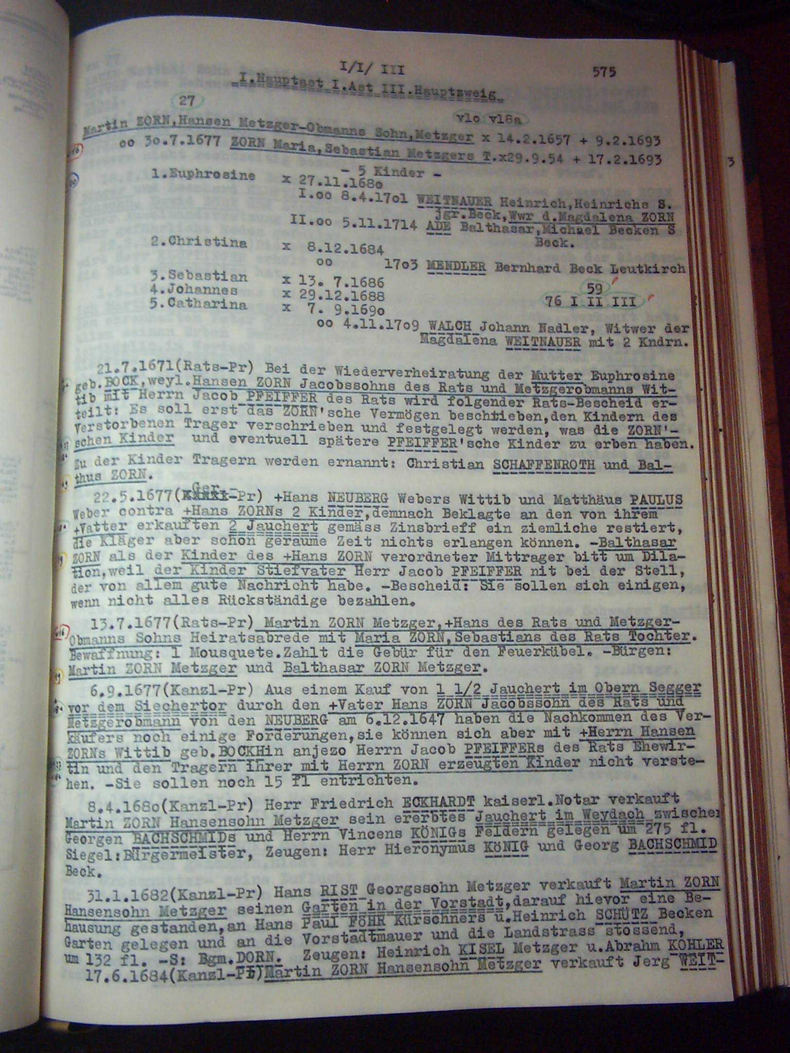 Martin Zorn, Metzger, und seine Nachkommen, Seiten 570 bis 697 |