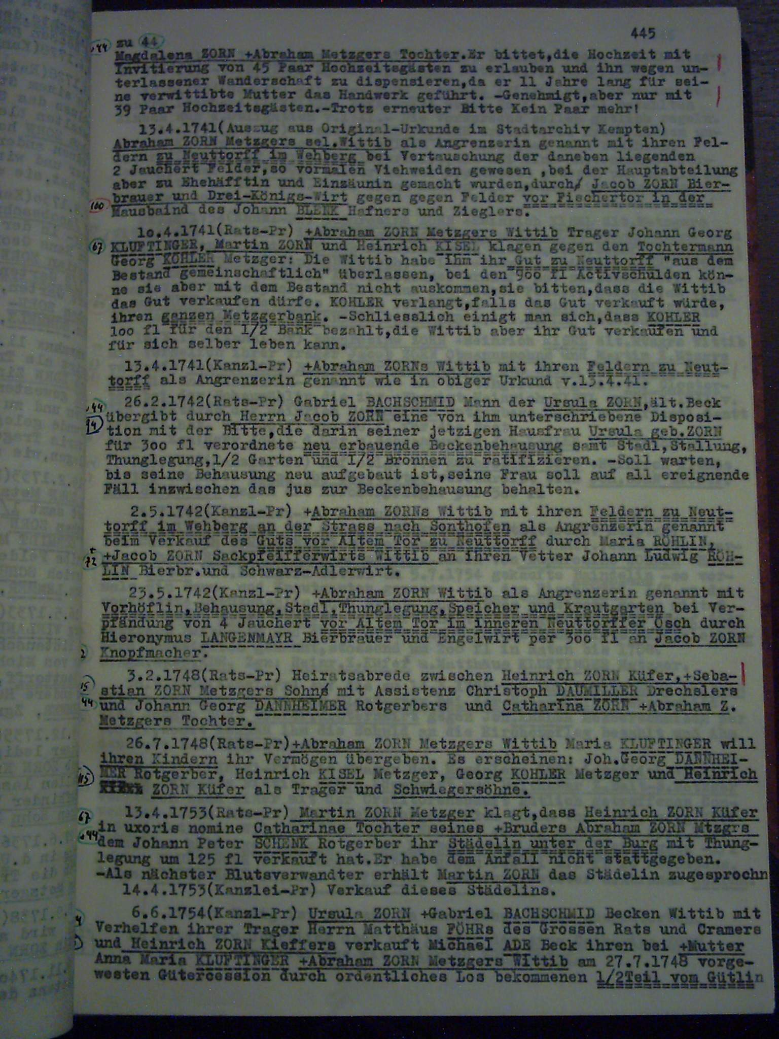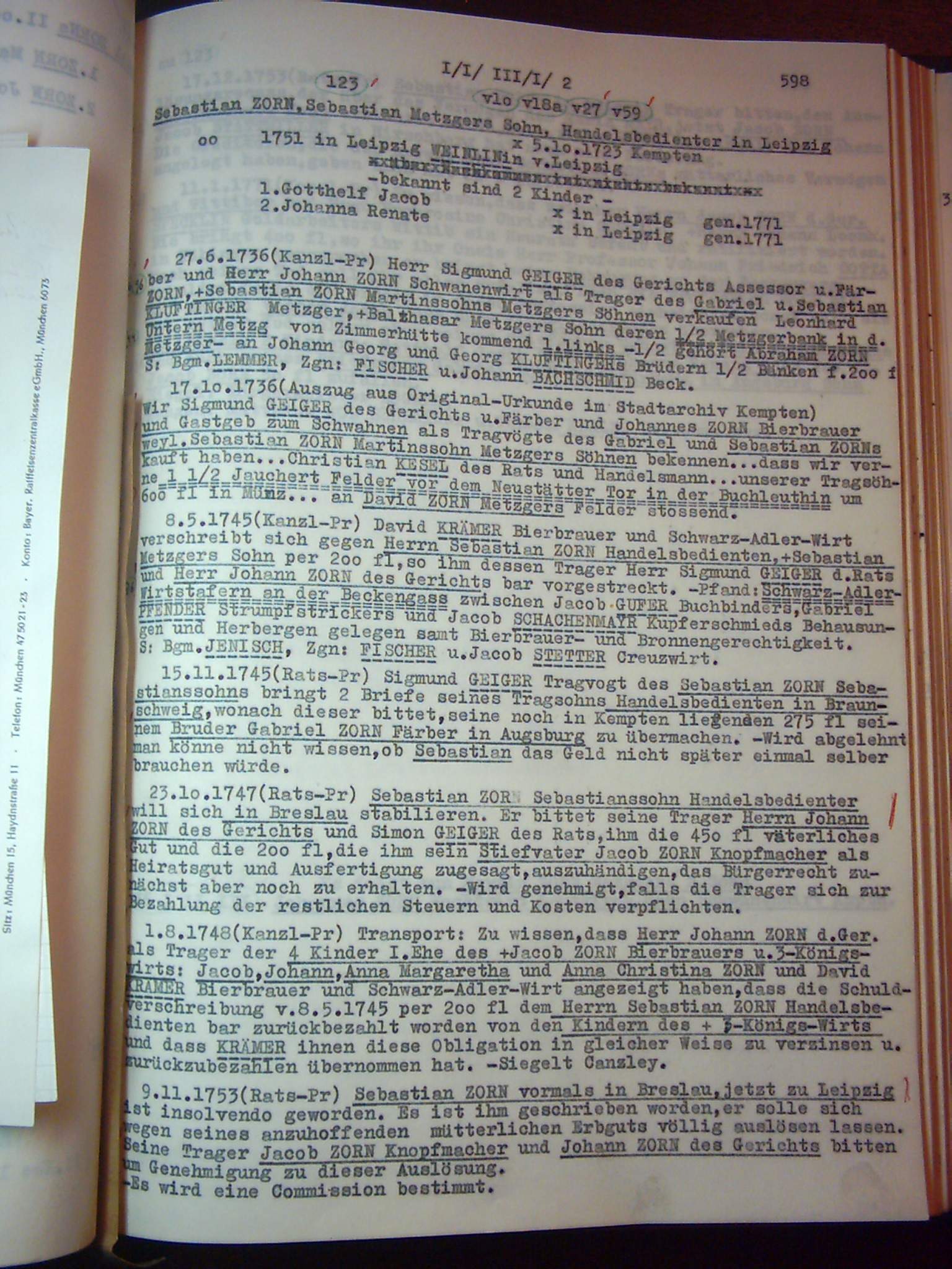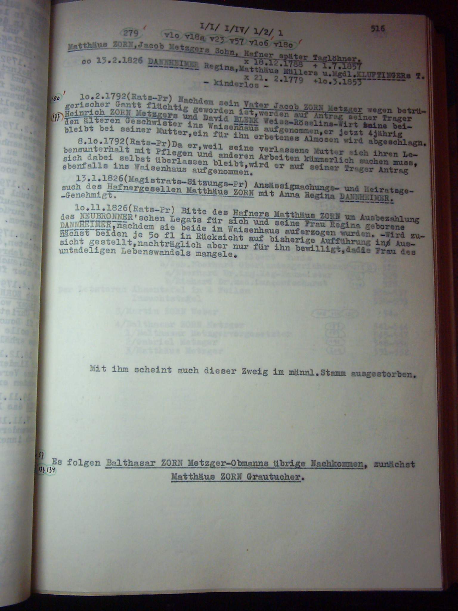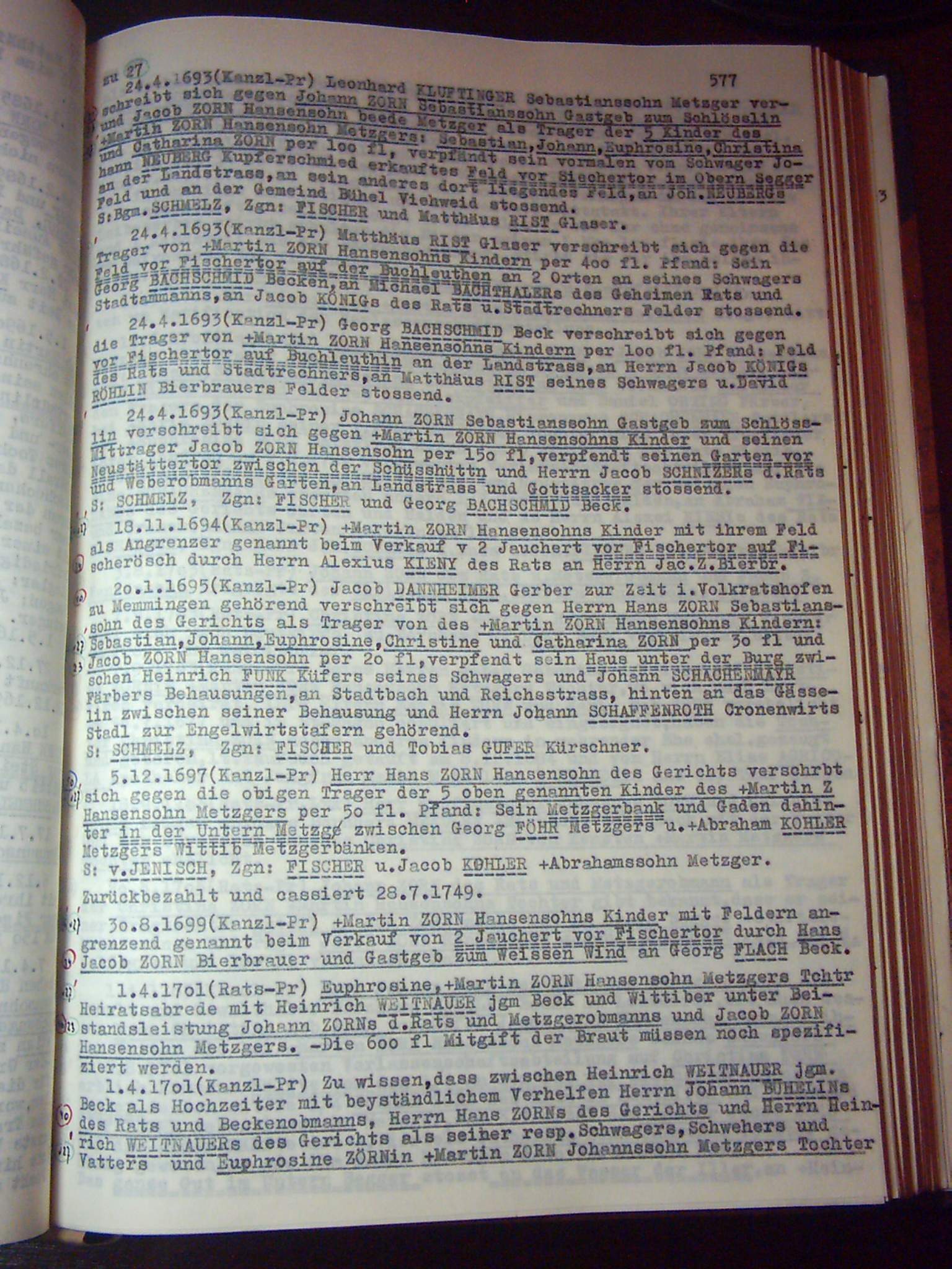 Martin Zorn, Metzger, und seine Nachkommen, Seiten 570 bis 697 |