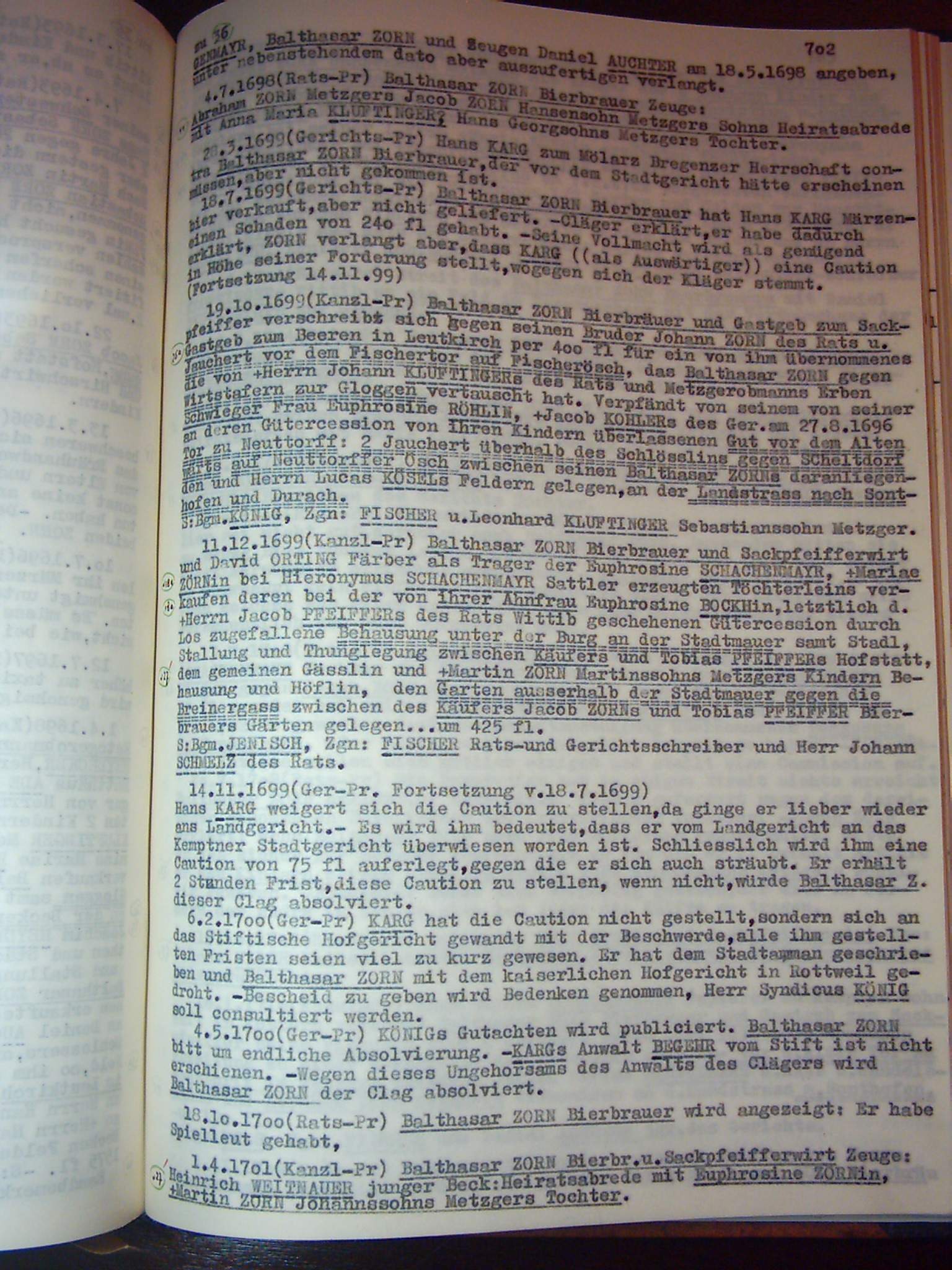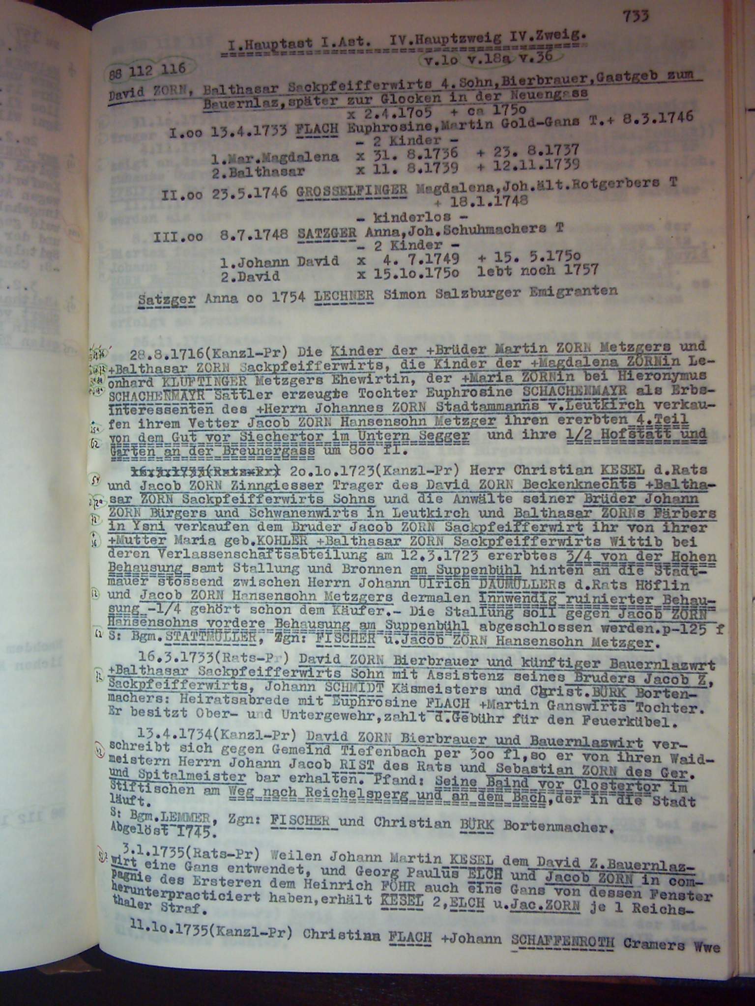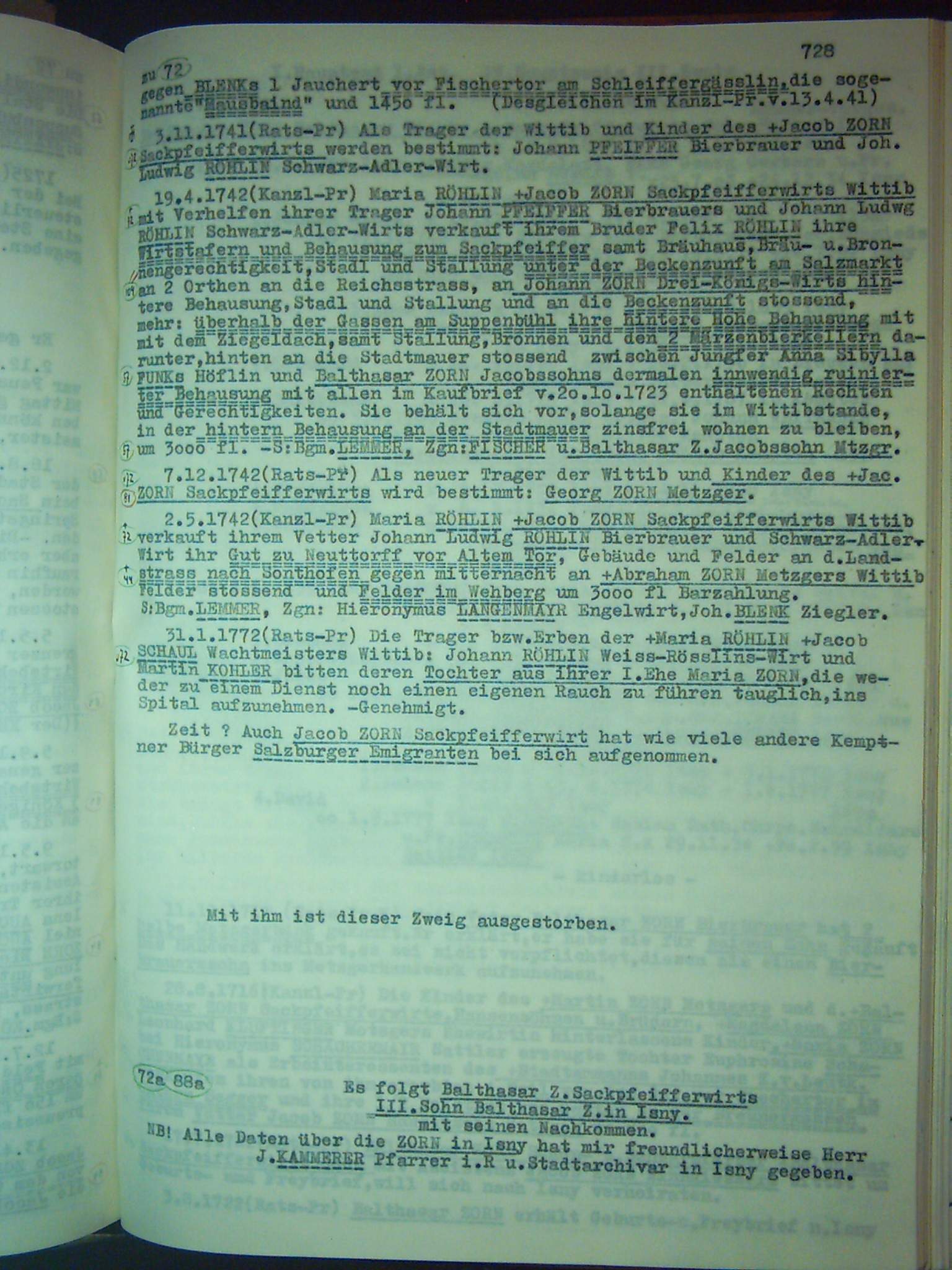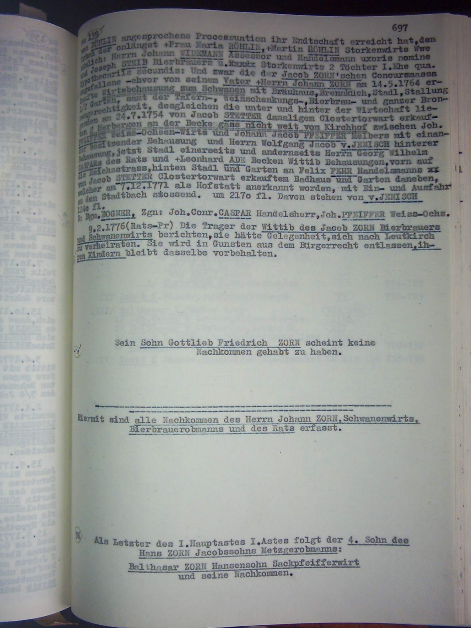 Balthasar Zorn, Bierbrauer, Sackpfeifferwirt und seine Nachkommen, Seiten 698 - 739 |