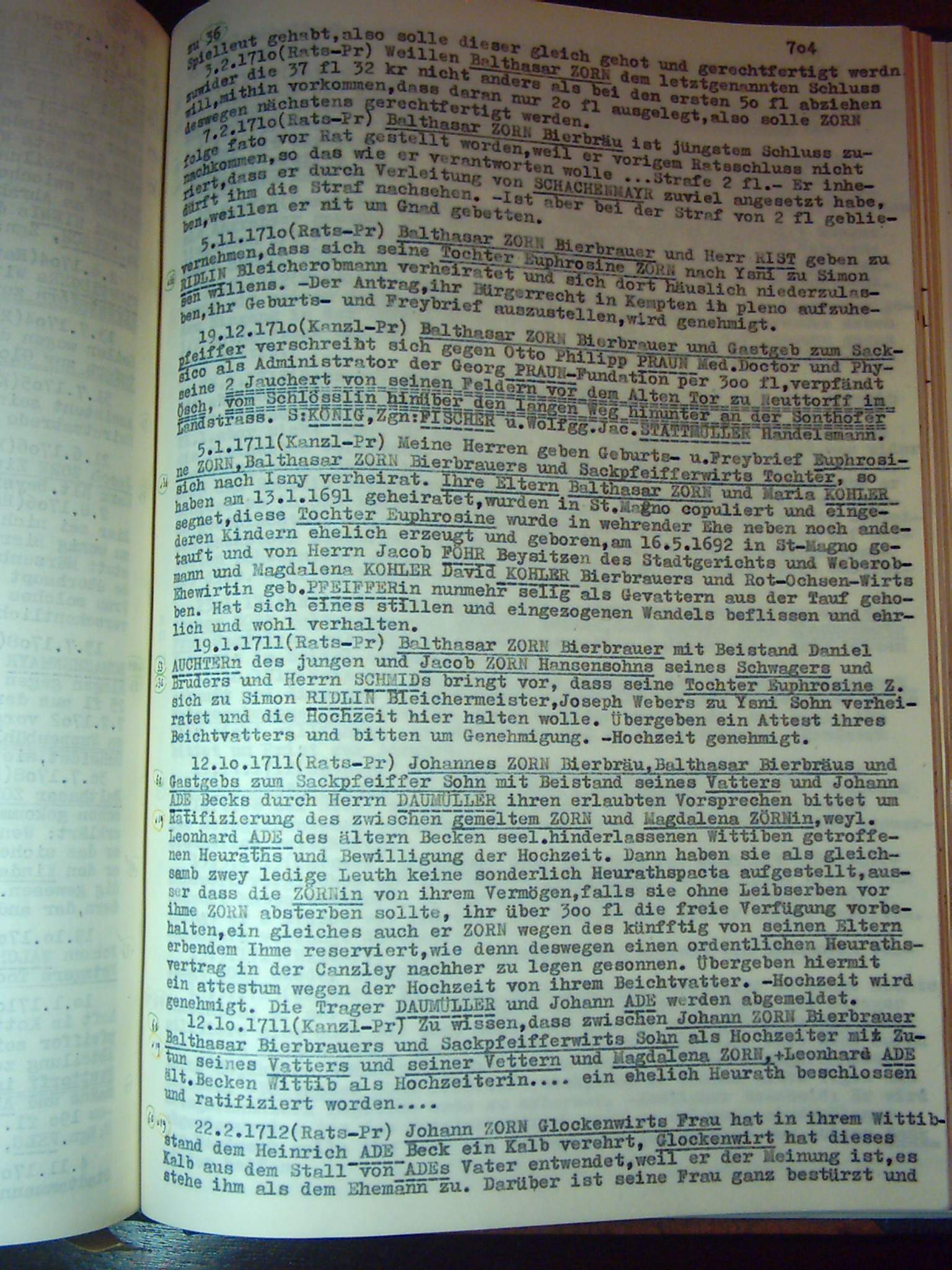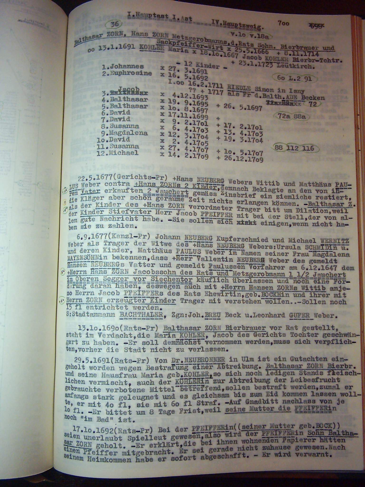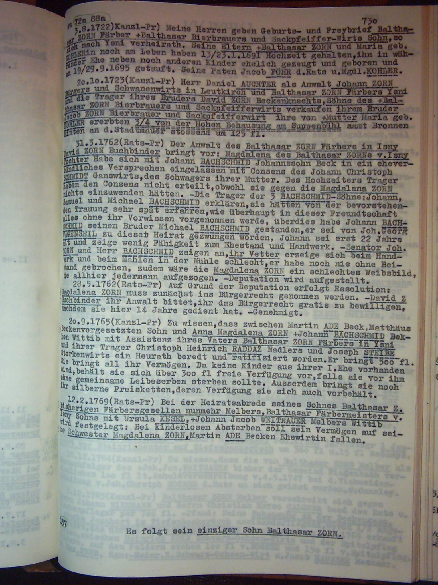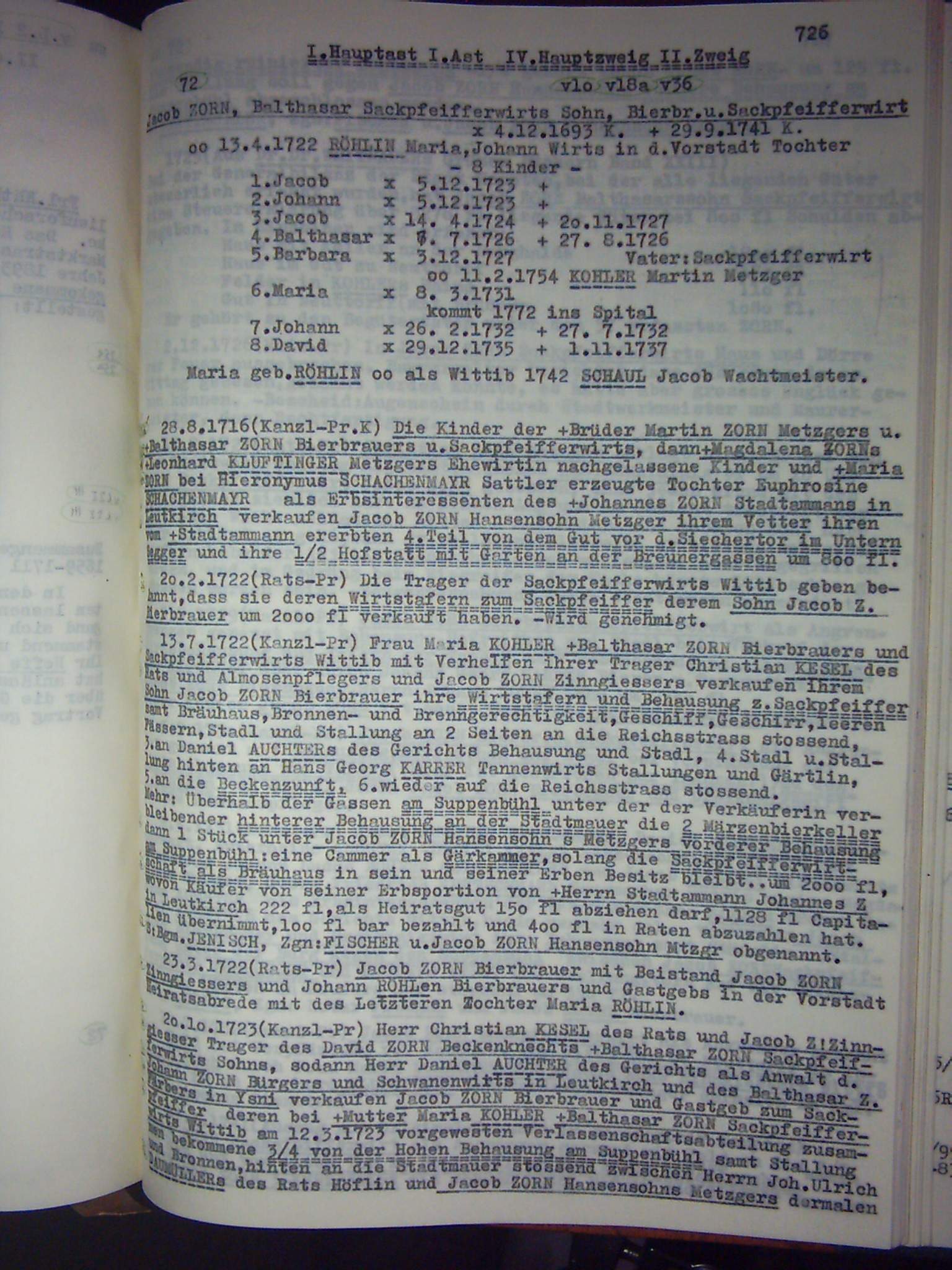 Balthasar Zorn, Bierbrauer, Sackpfeifferwirt und seine Nachkommen, Seiten 698 - 739 |