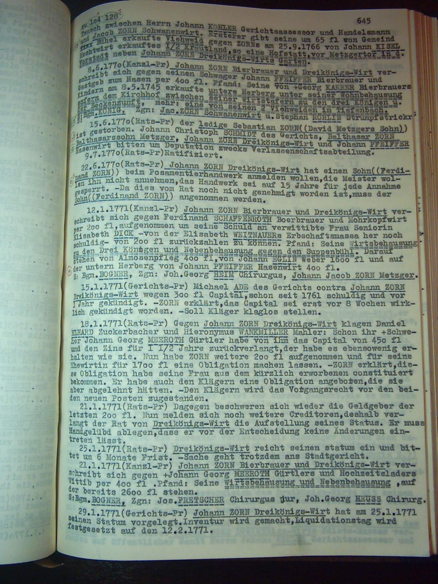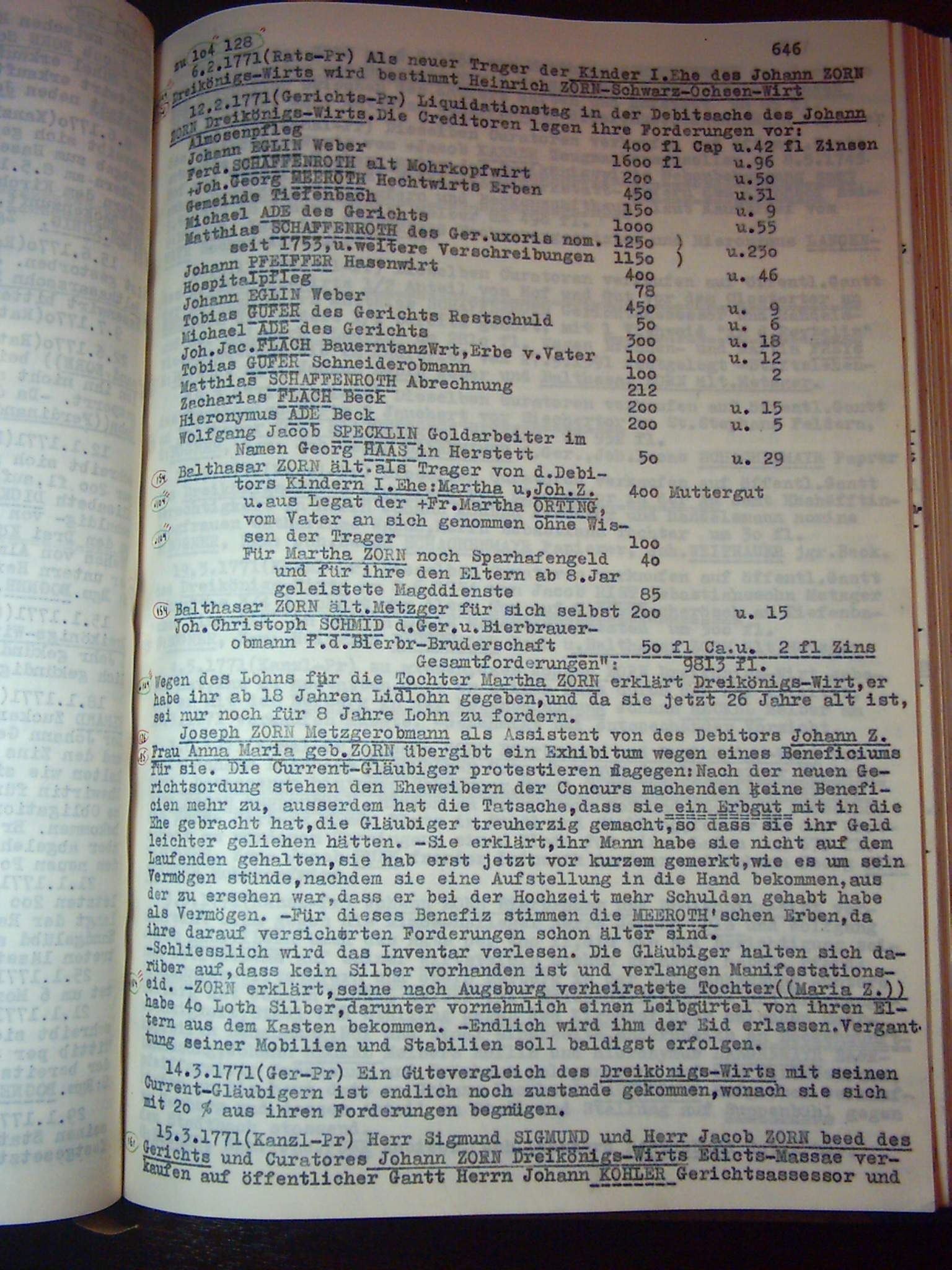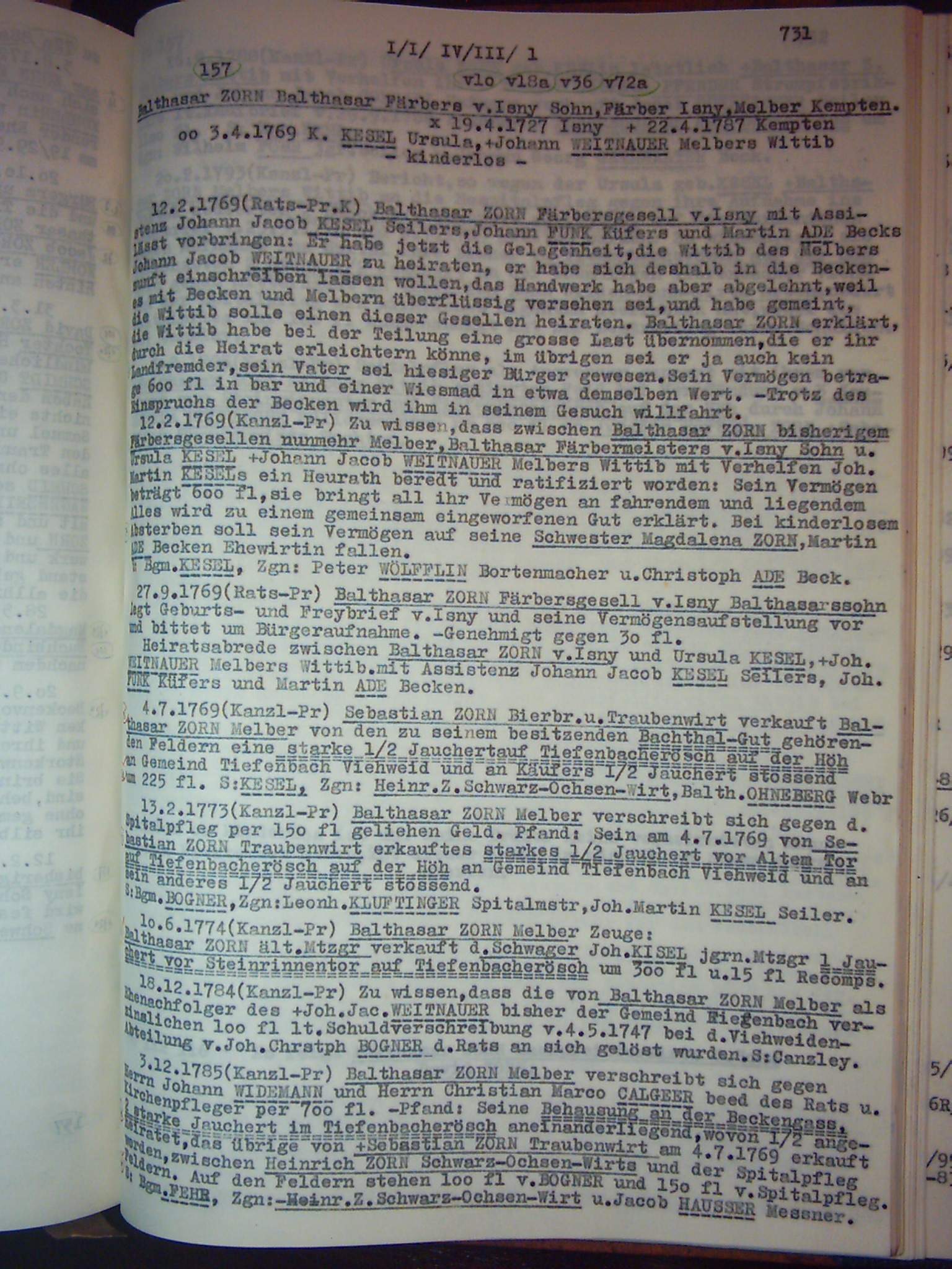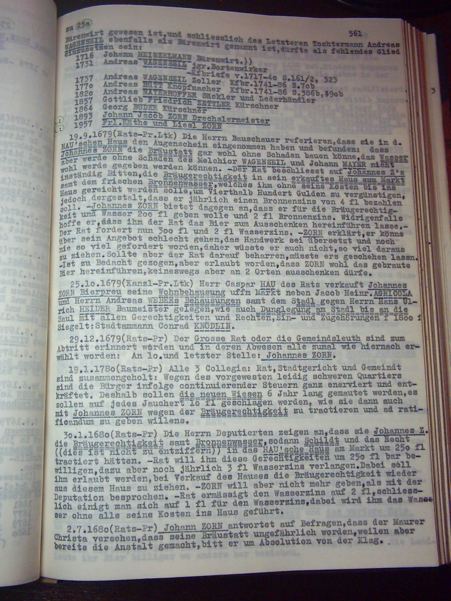 Balthasar Zorn, Bierbrauer, Sackpfeifferwirt und seine Nachkommen, Seiten 698 - 739 |