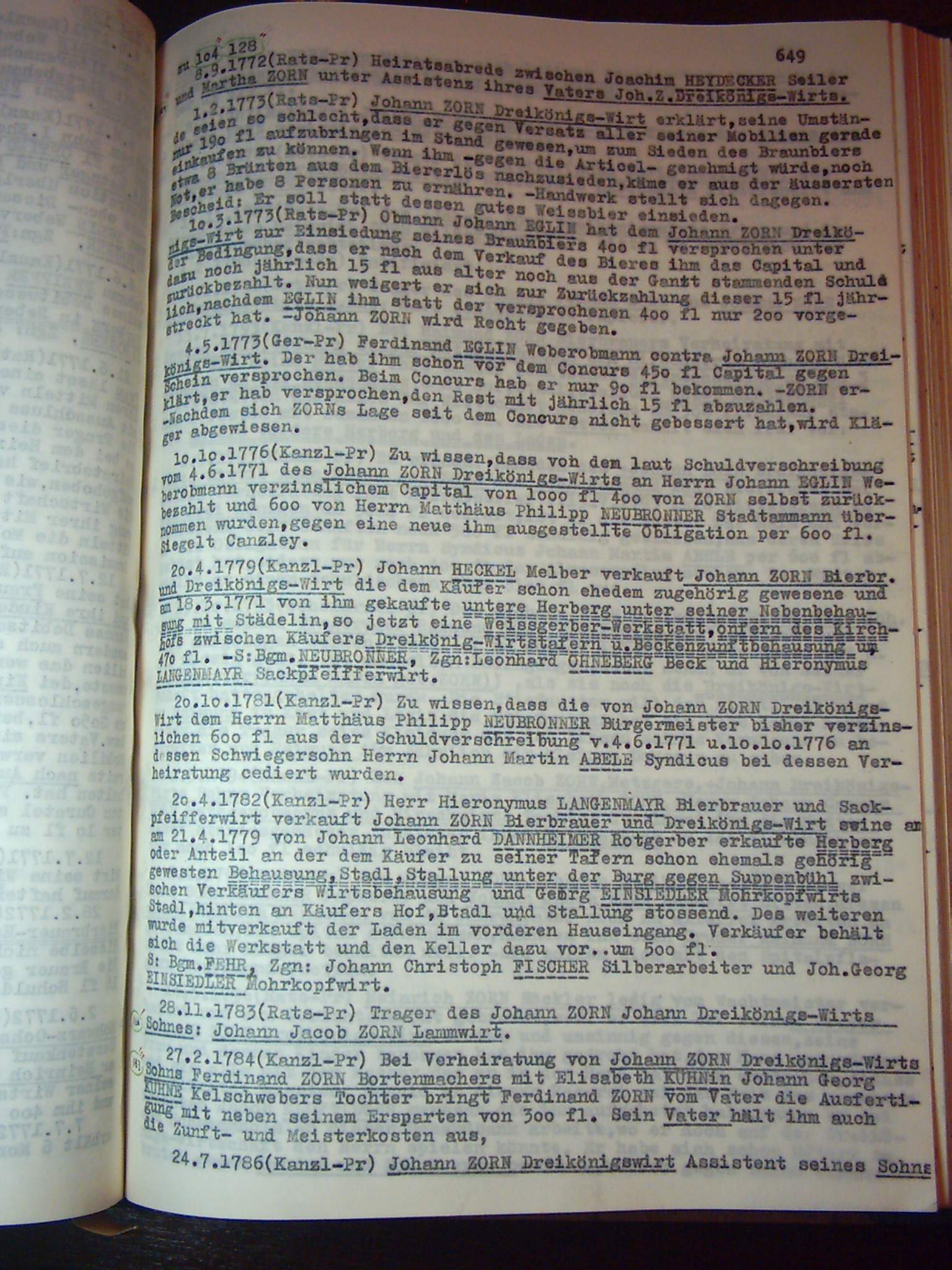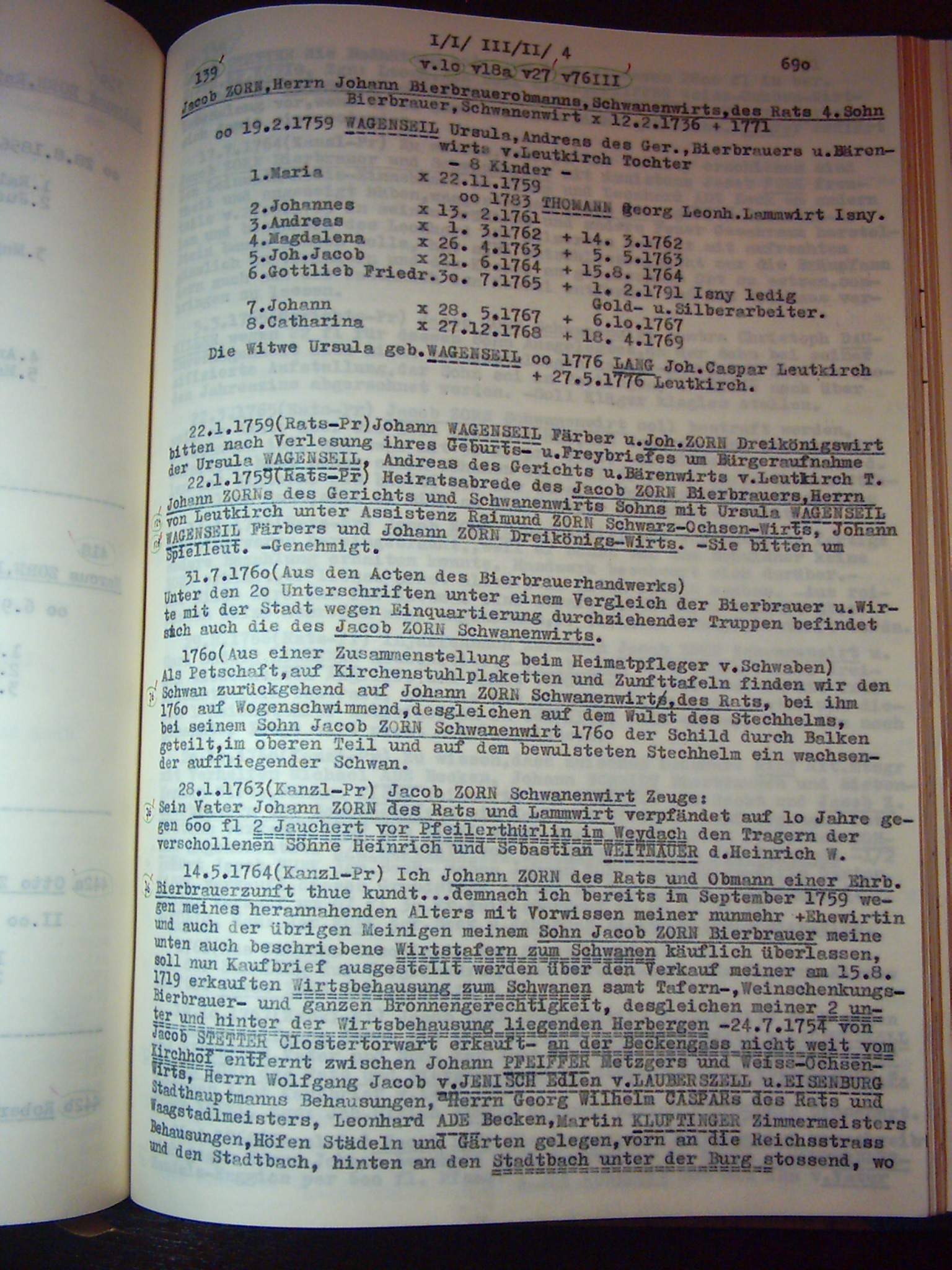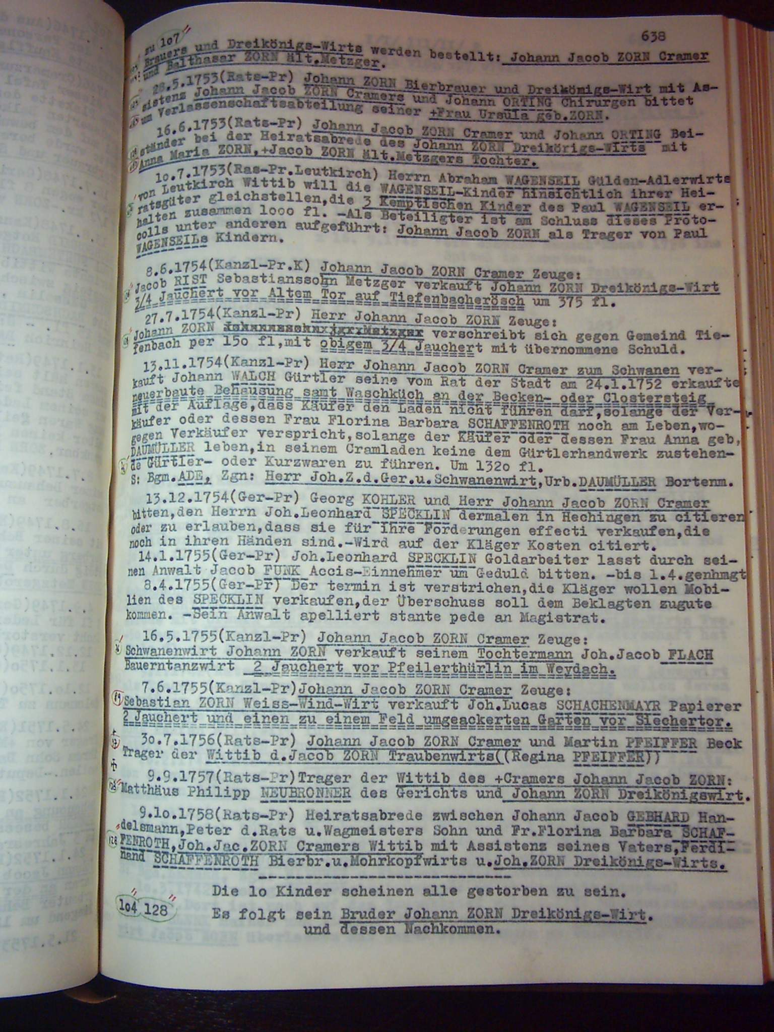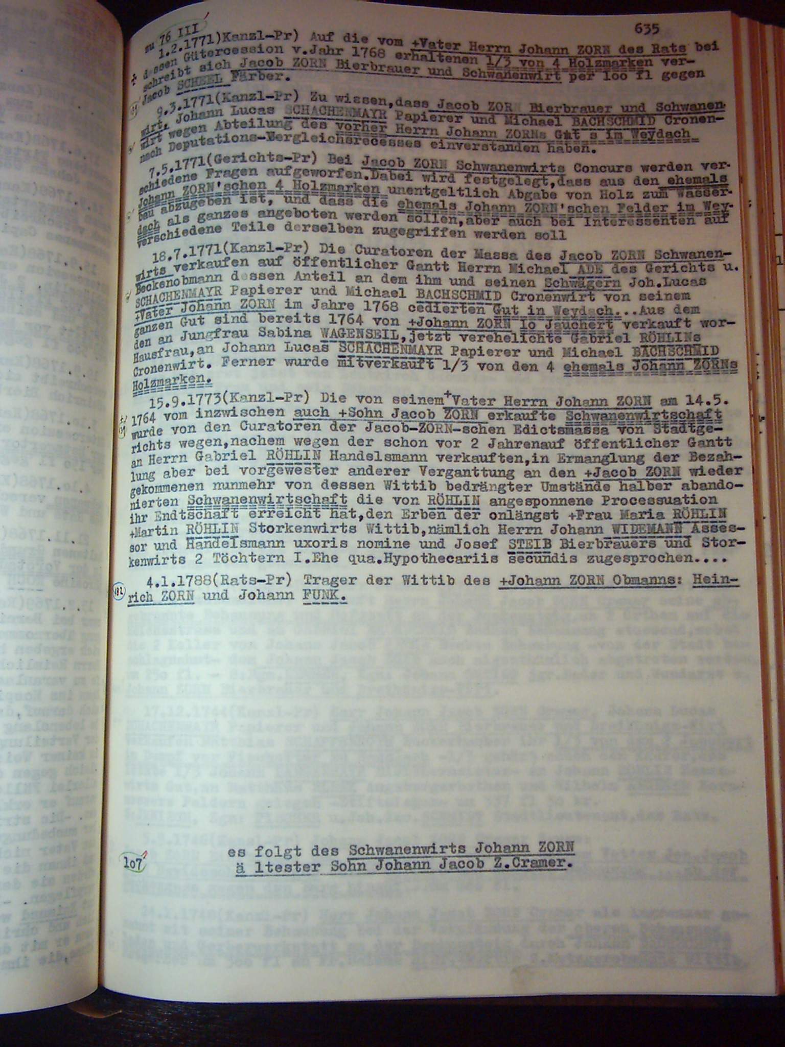 Balthasar Zorn, Bierbrauer, Sackpfeifferwirt und seine Nachkommen, Seiten 698 - 739 |