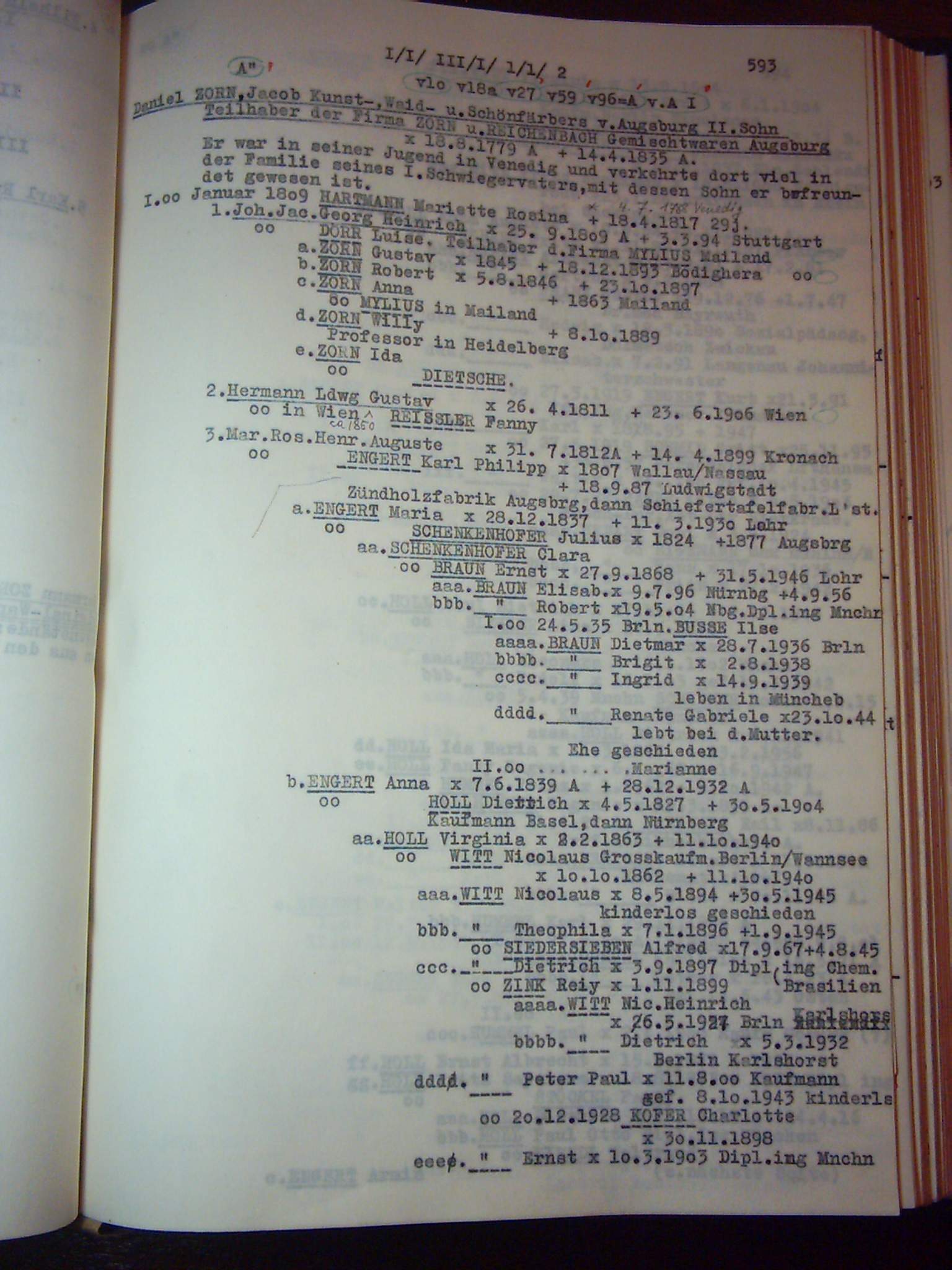 Stammbaumauszug: Überblick über den I. Hauptast. Er enthält nur die verheirateten und die längerlebenden ledigen Söhne und männl. illegitime Kinder, Seite 417 Seite_417_gesamt.jpg Seite_417_oben.jpg Seite_417_unten.jpg |