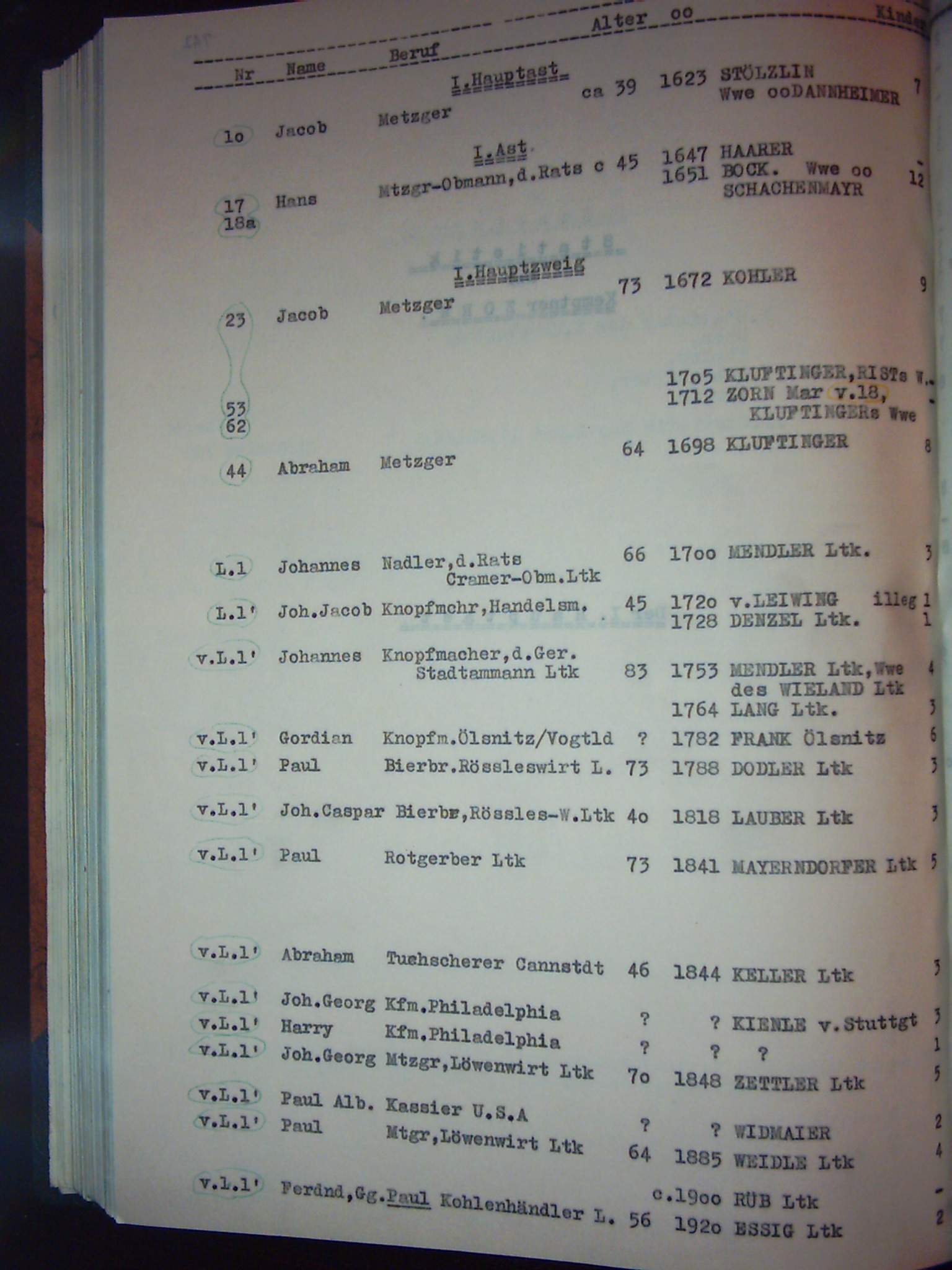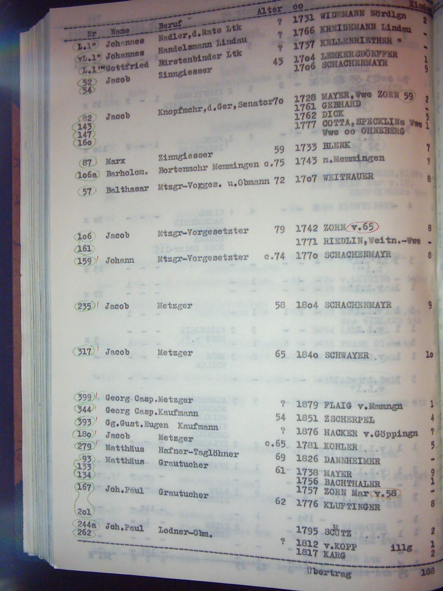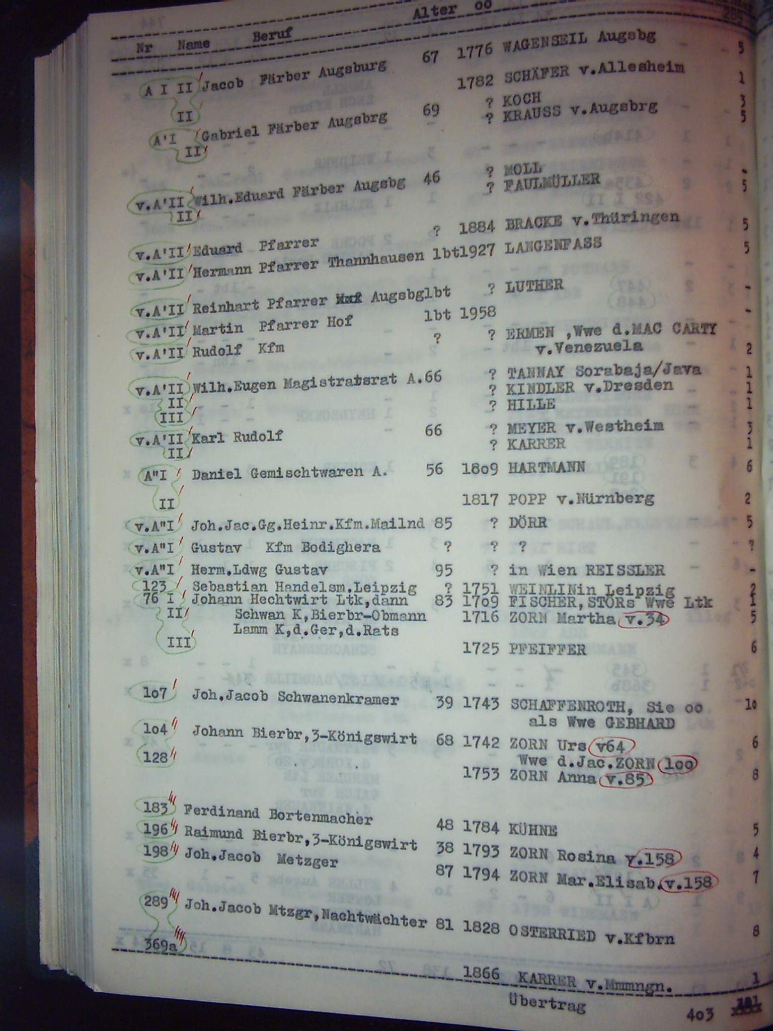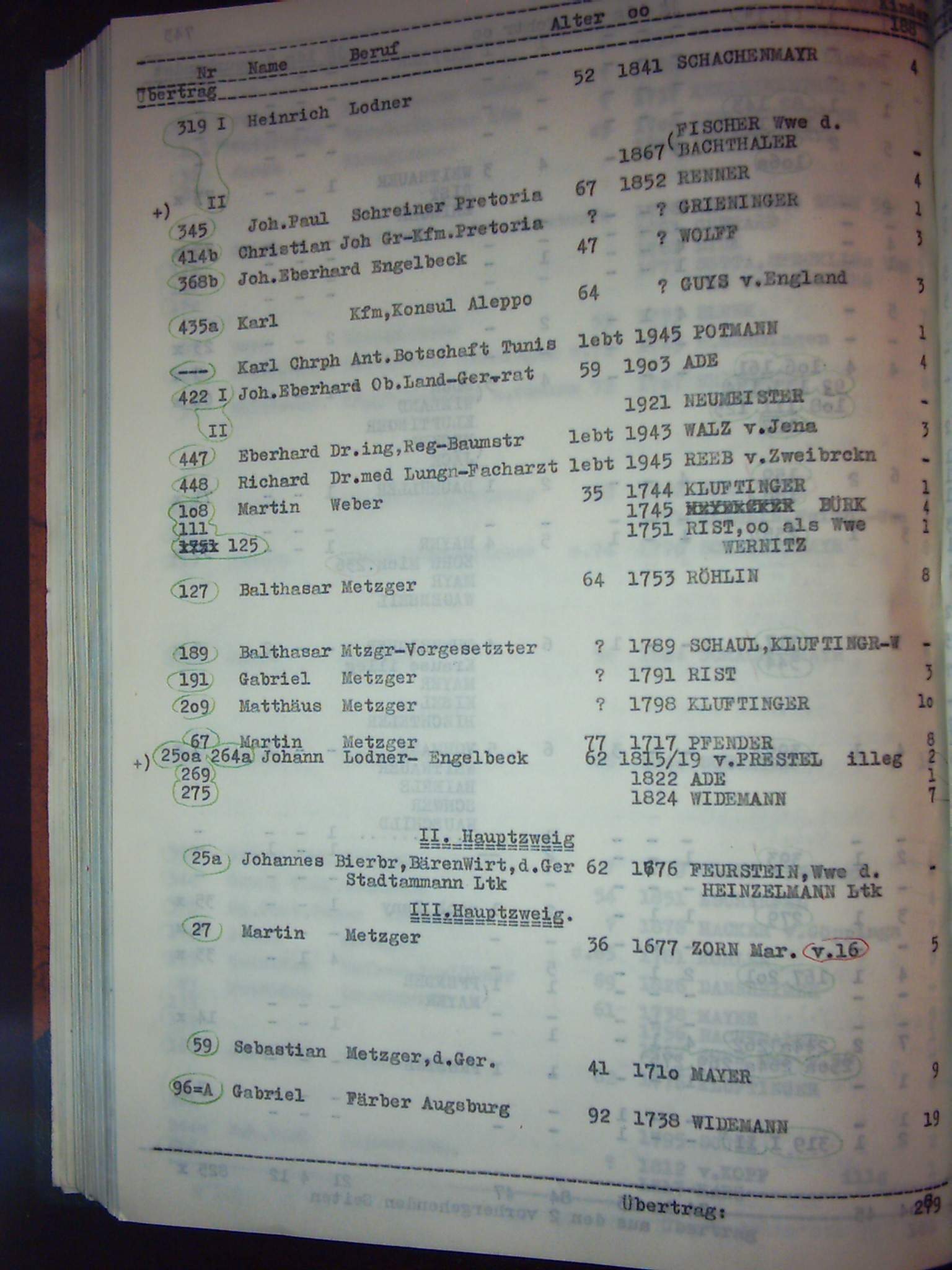 Namensverzeichnis zur Chronik der Gesamtfamilie Zorn Band II