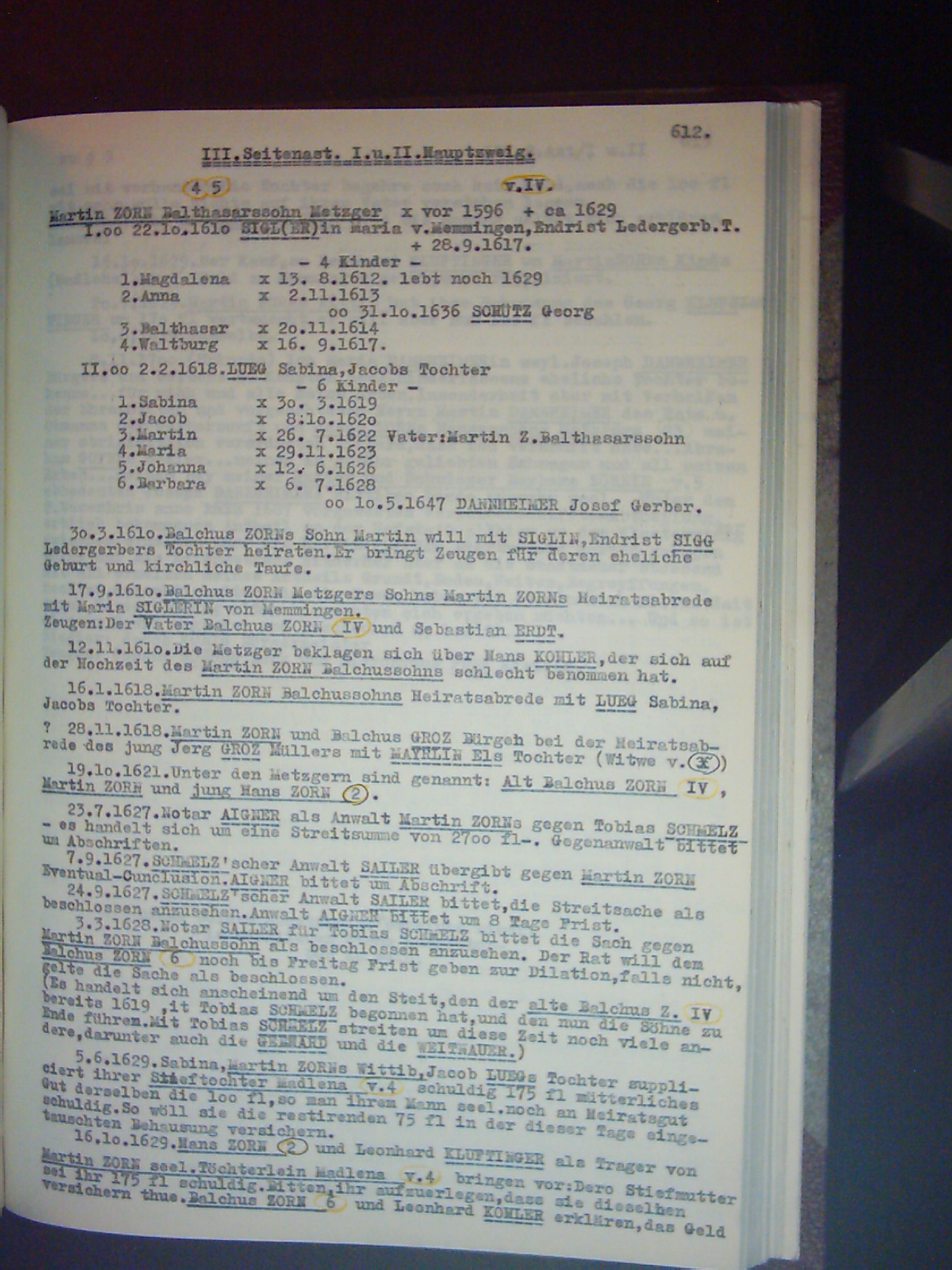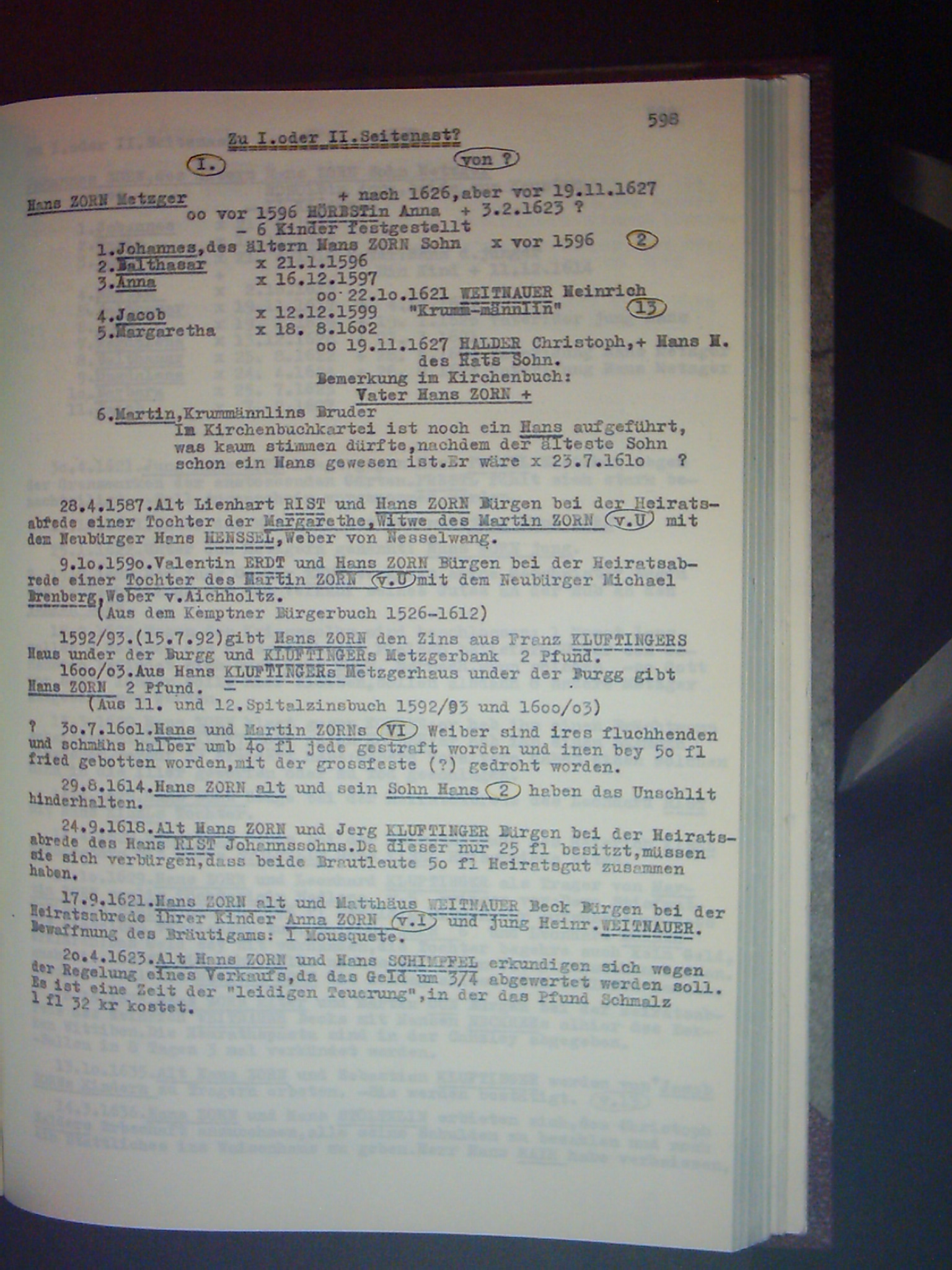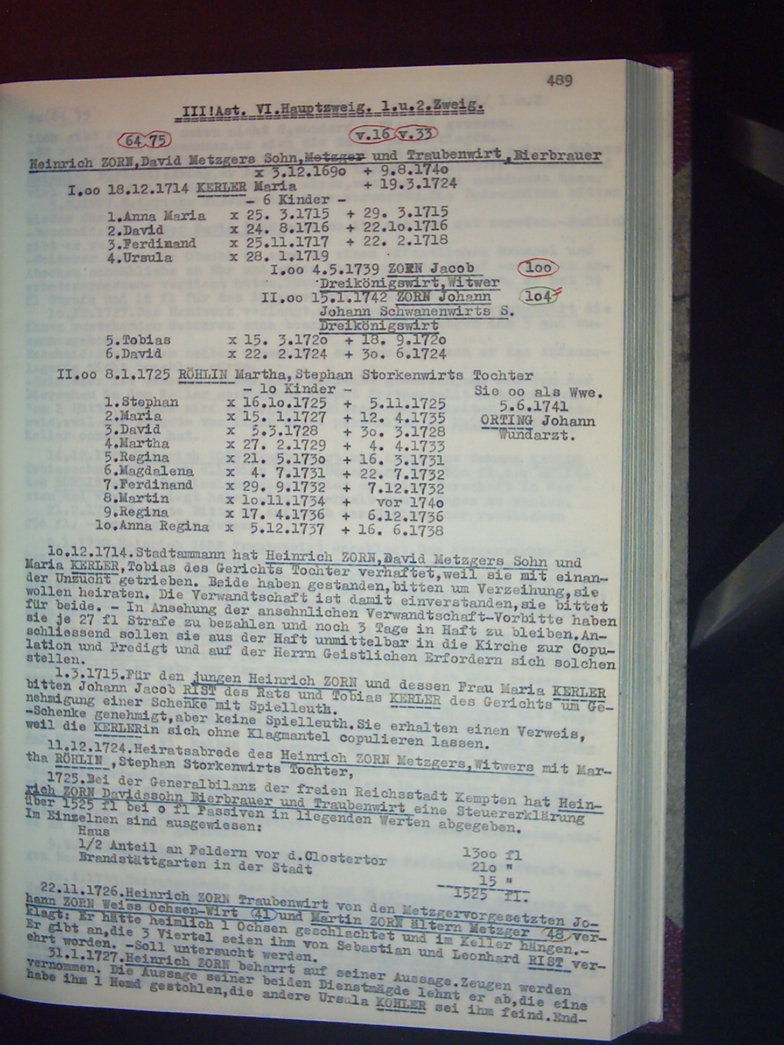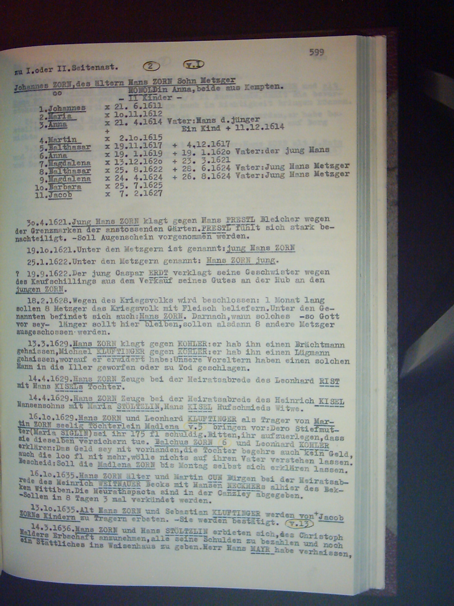 Familienchronik der Bürgerfamilie Zorn aus Kempten im Allgäu Band II