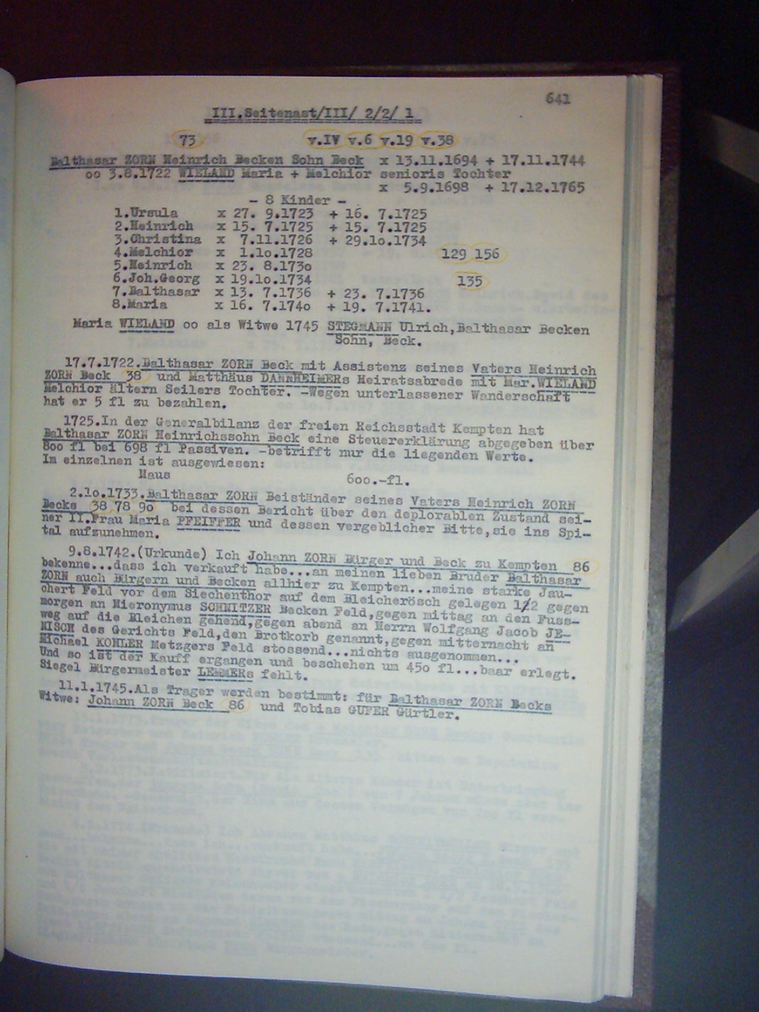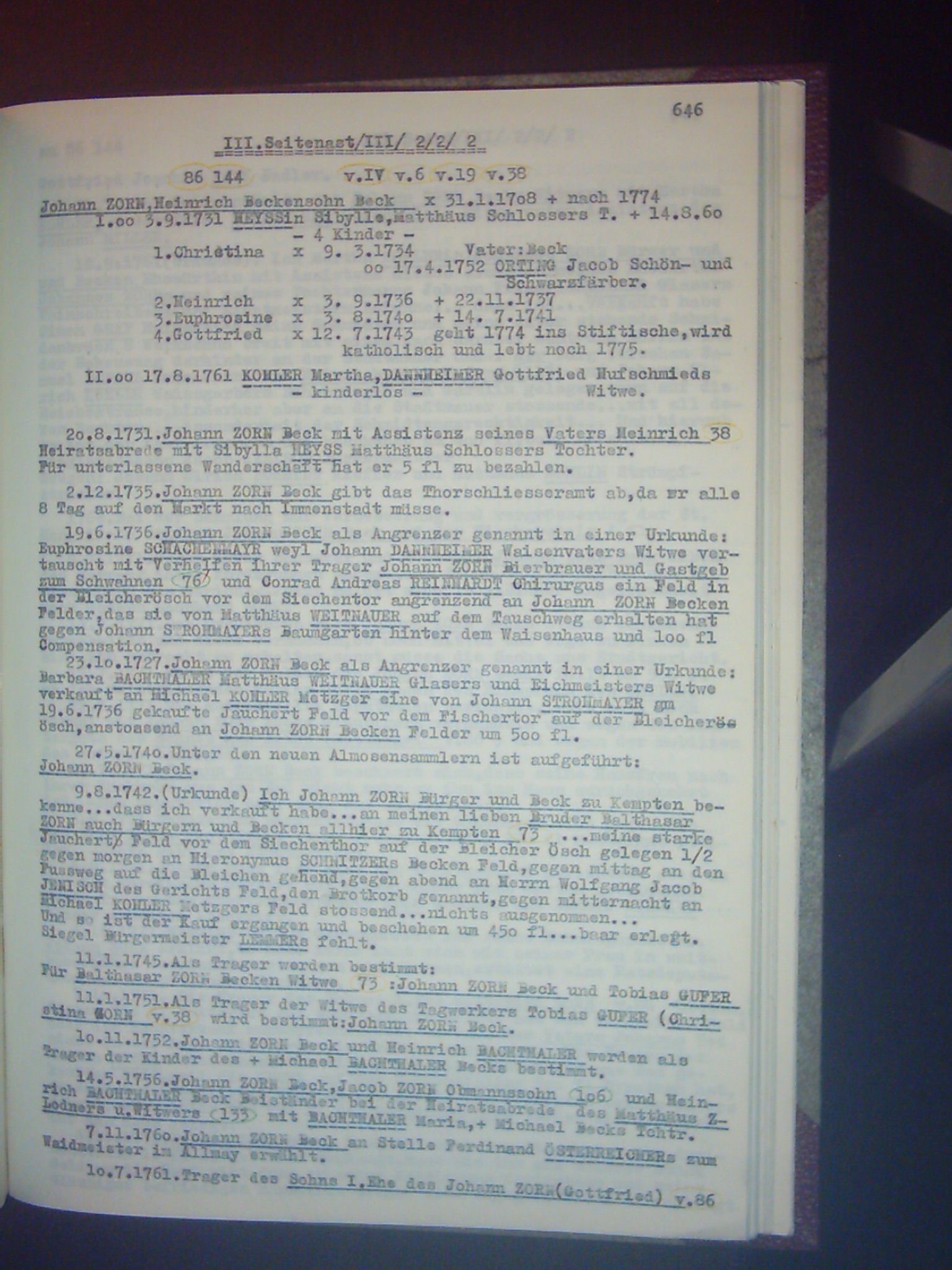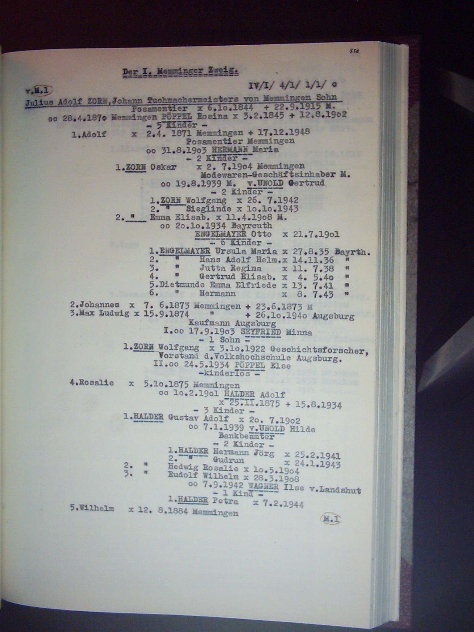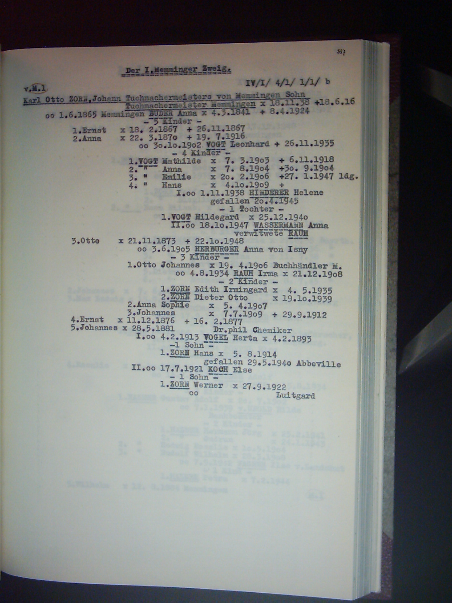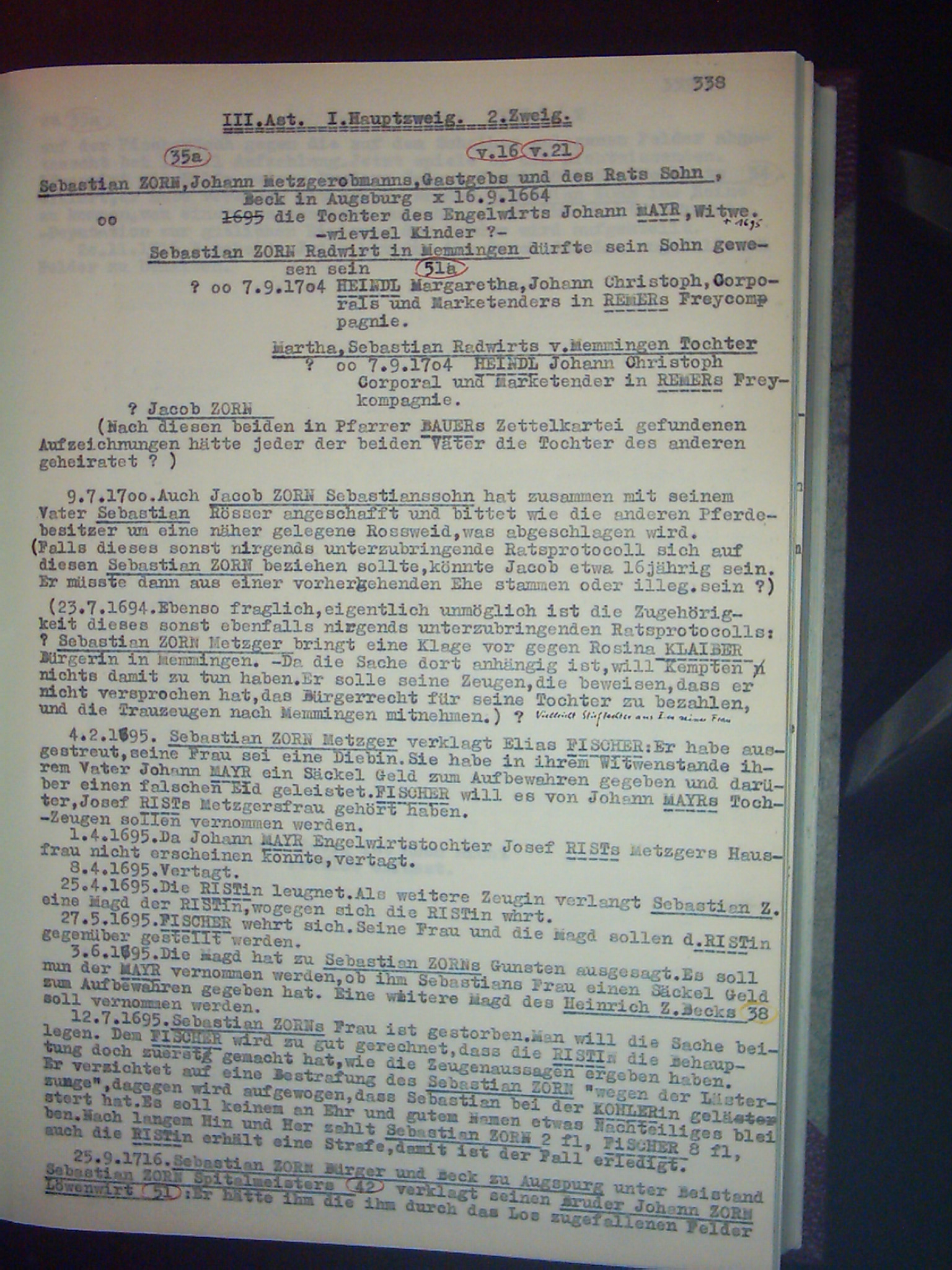 Familienchronik der Bürgerfamilie Zorn aus Kempten im Allgäu Band II