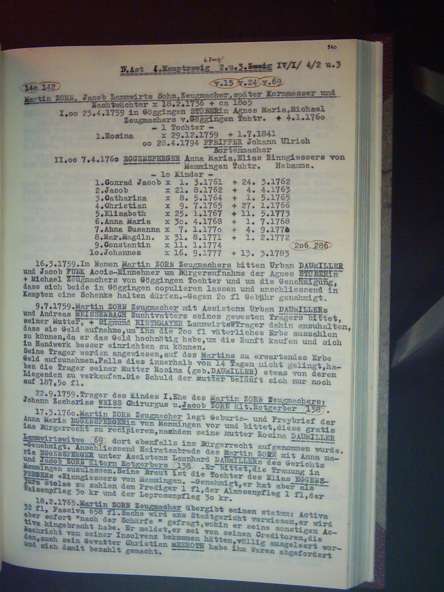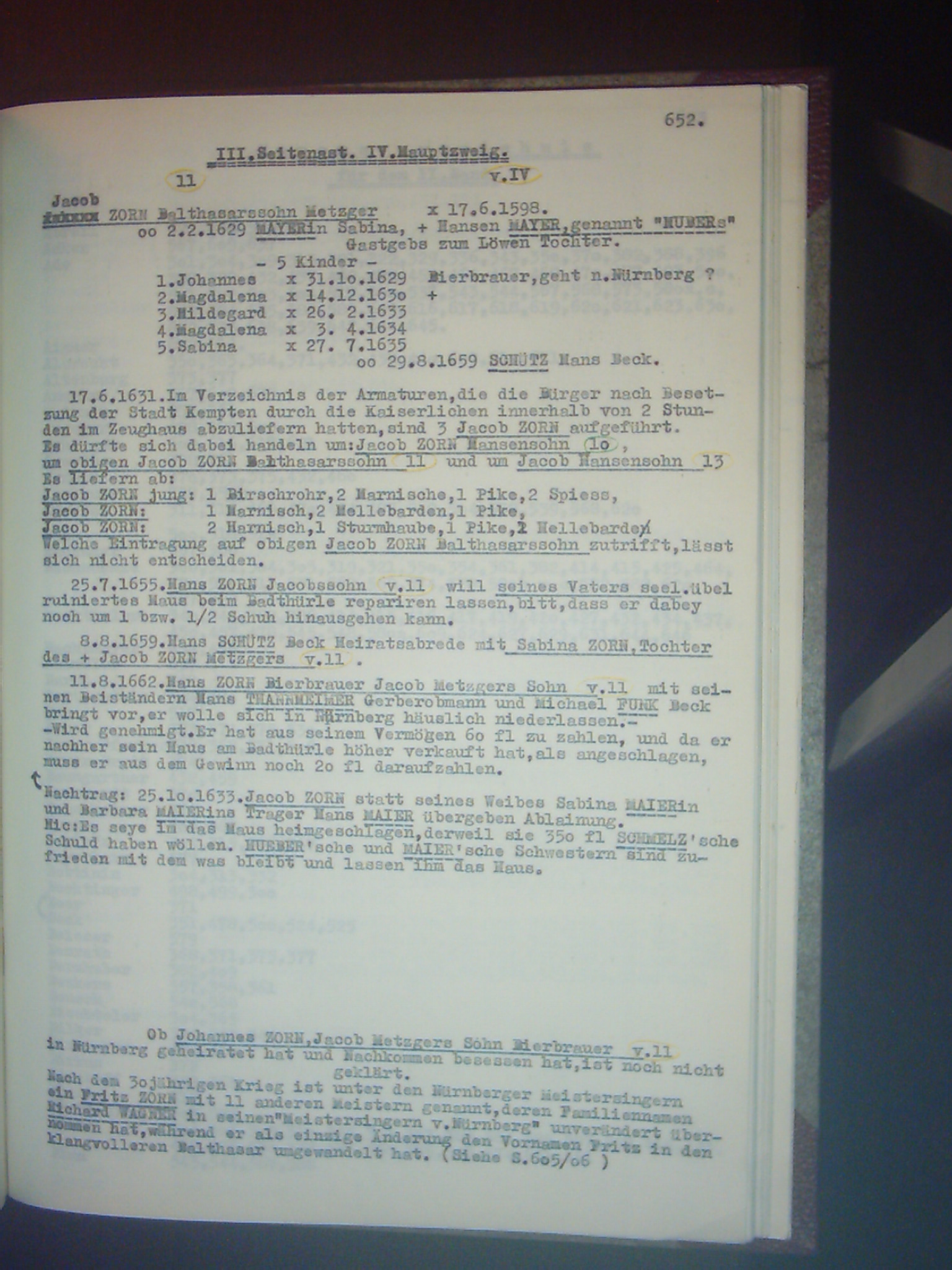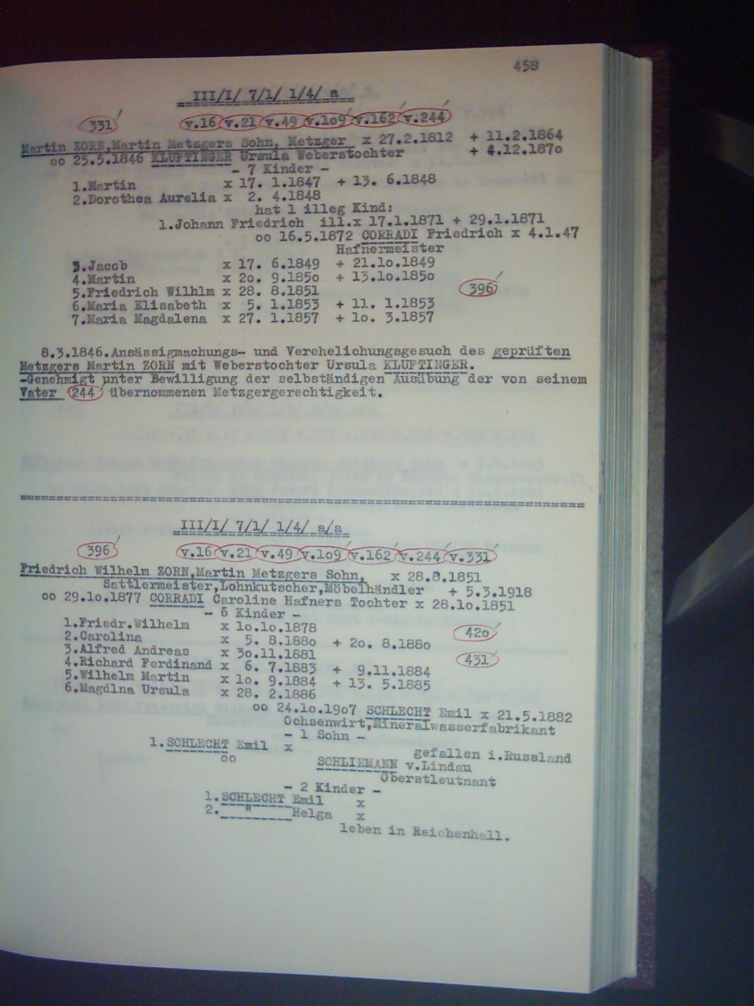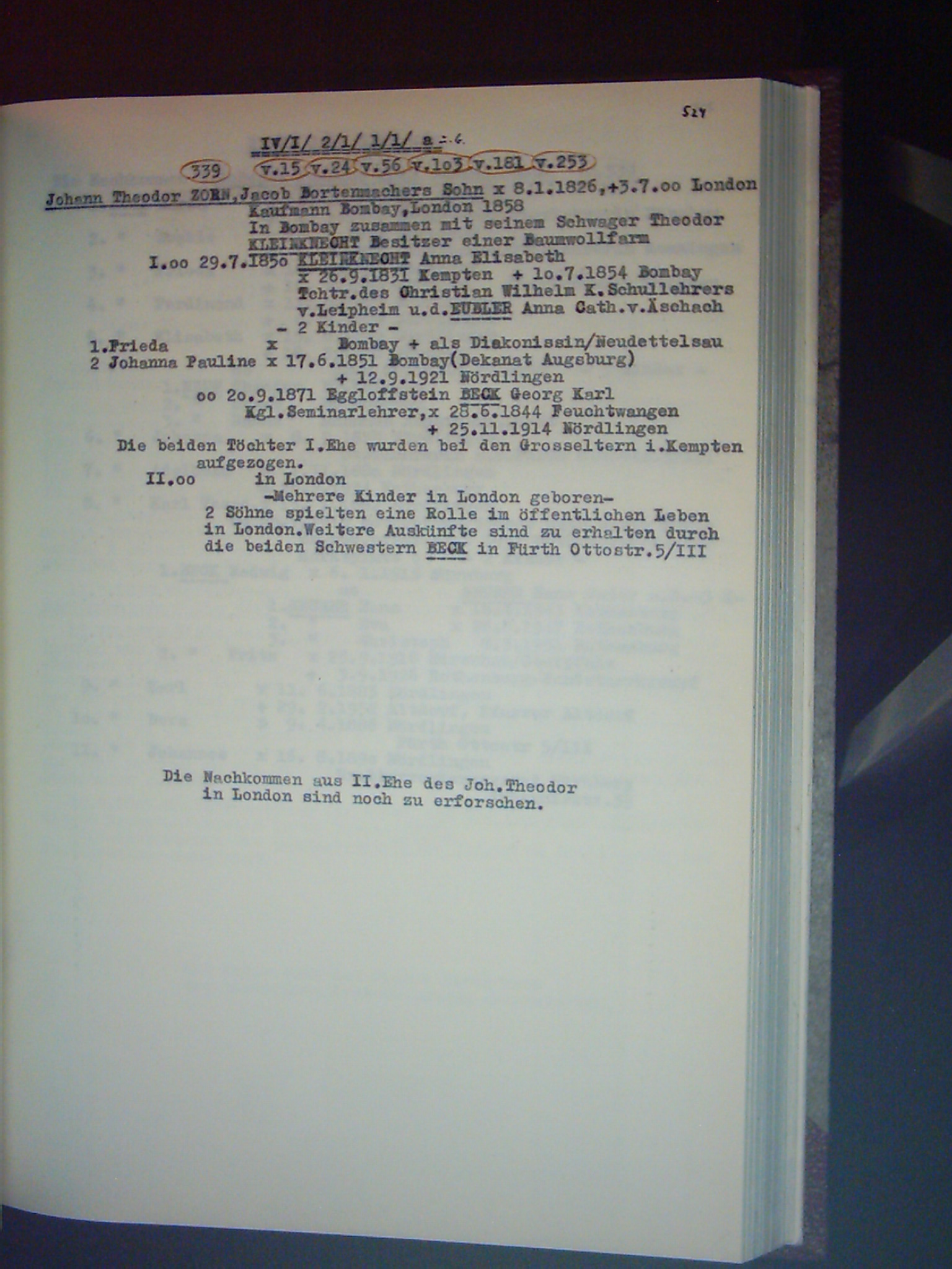 Familienchronik der Bürgerfamilie Zorn aus Kempten im Allgäu Band II