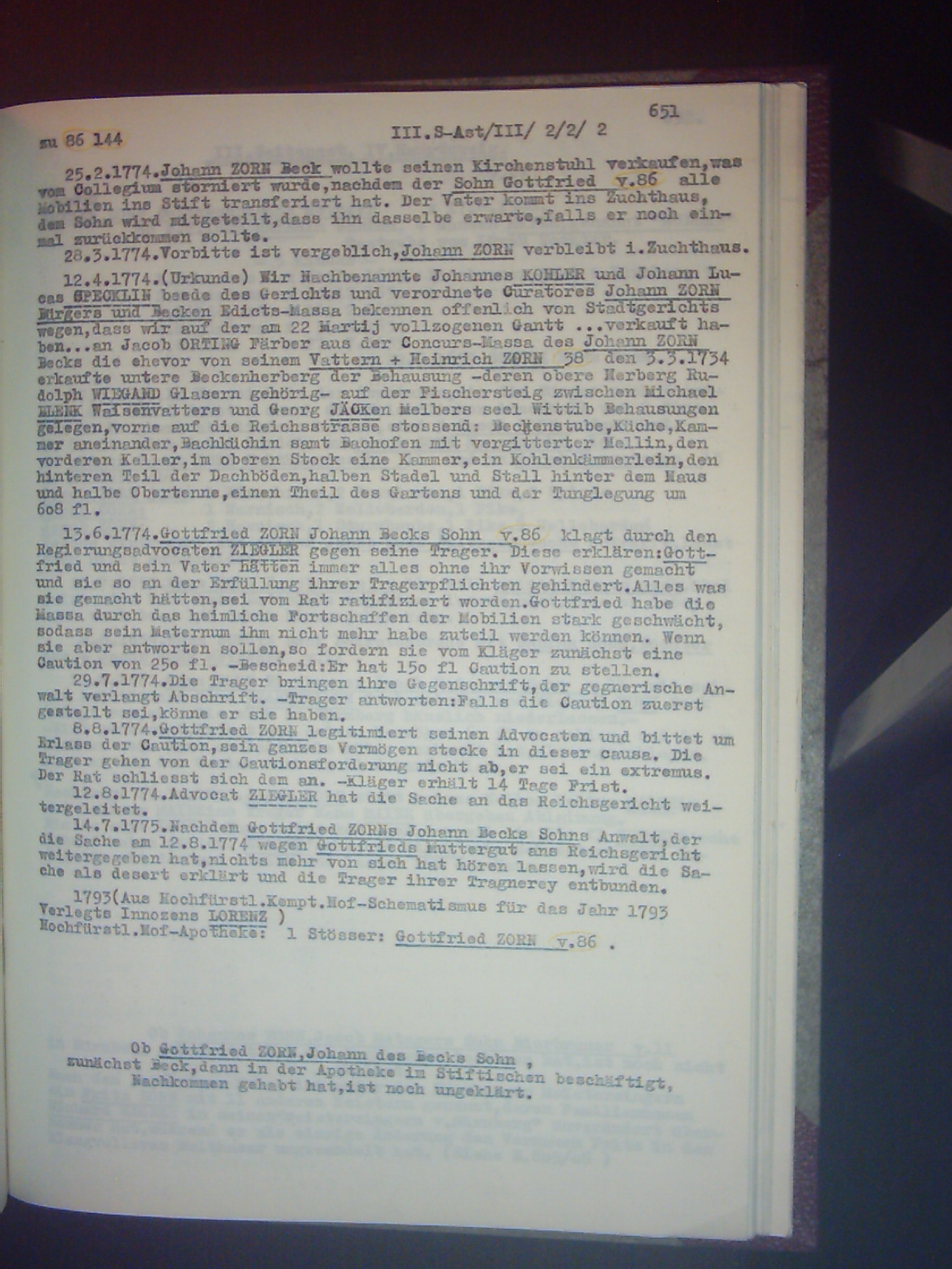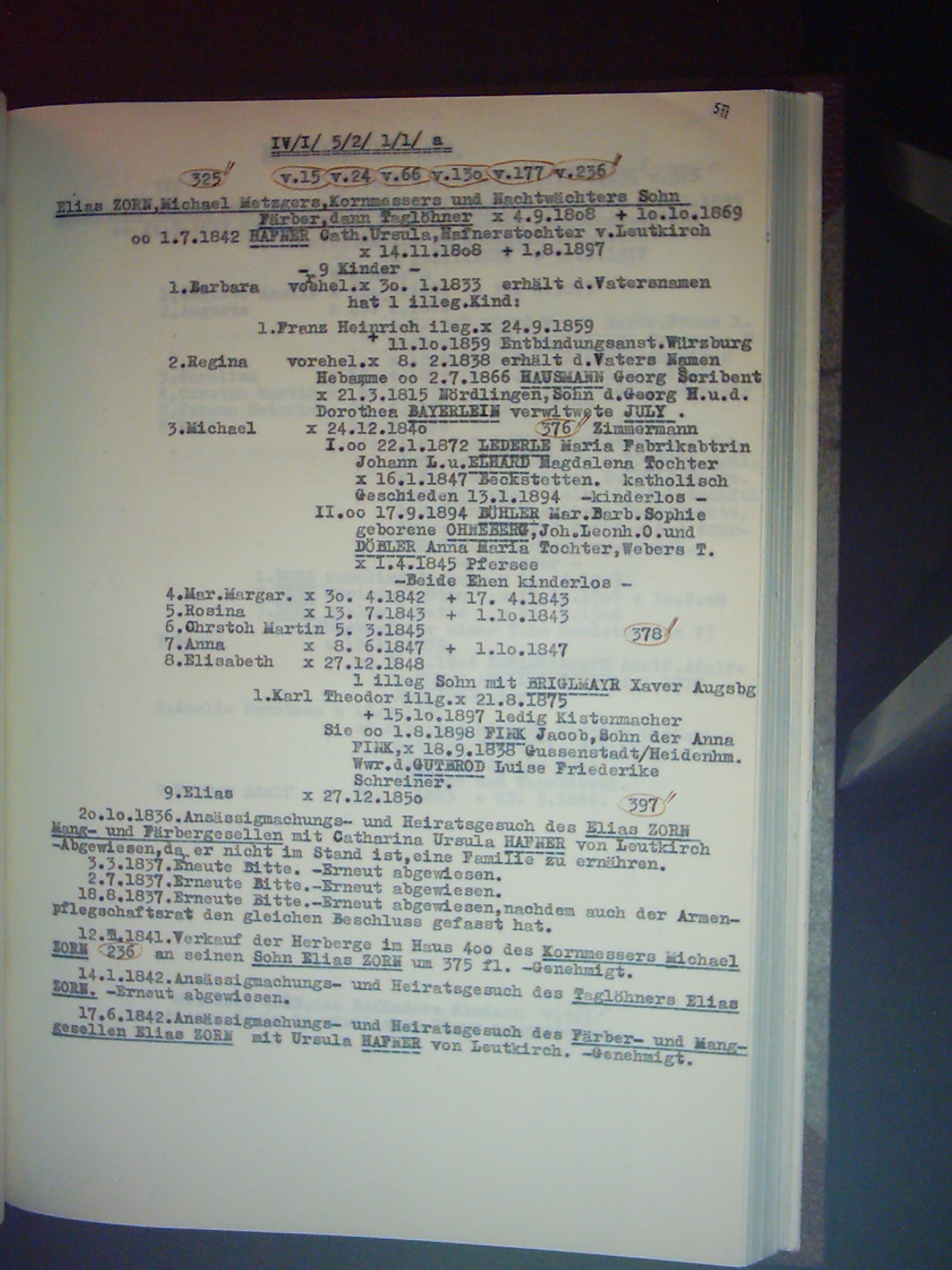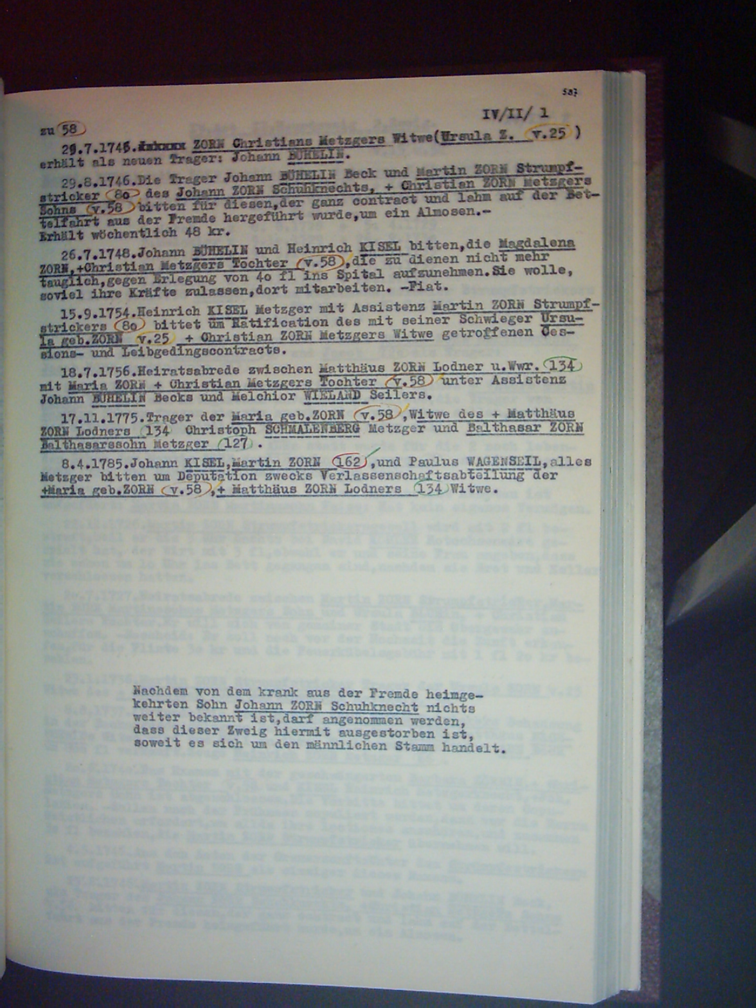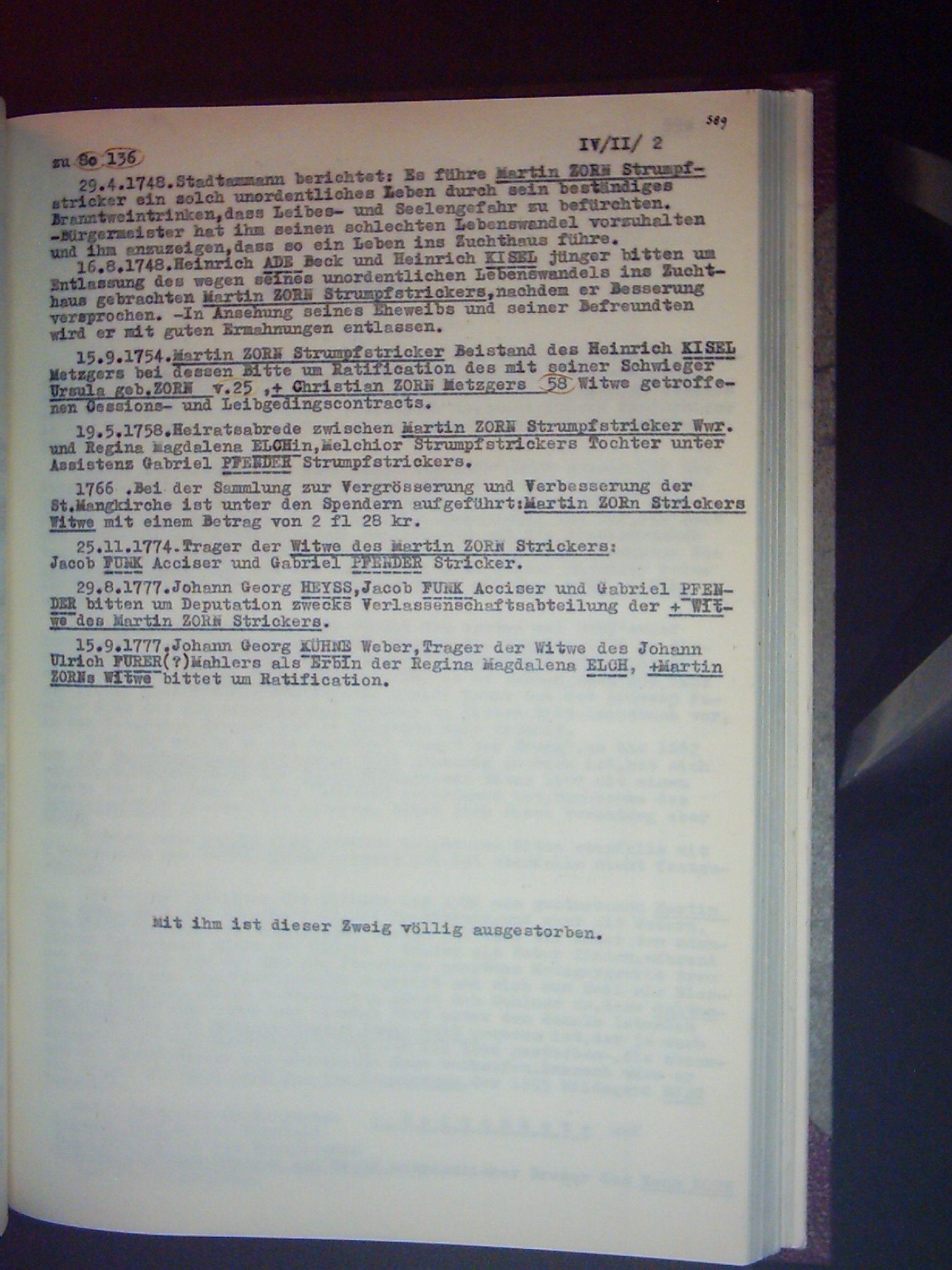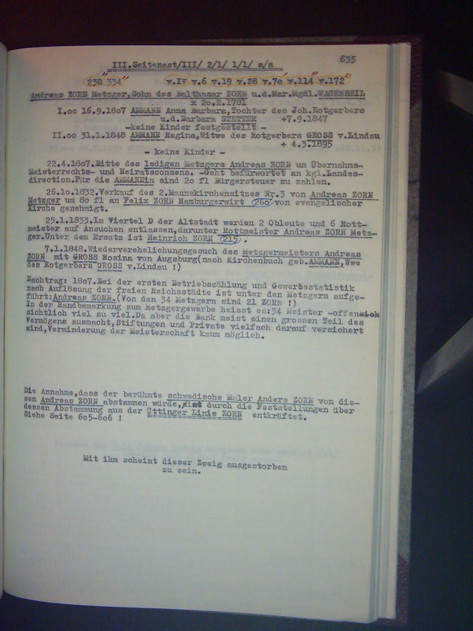 Familienchronik der Bürgerfamilie Zorn aus Kempten im Allgäu Band II