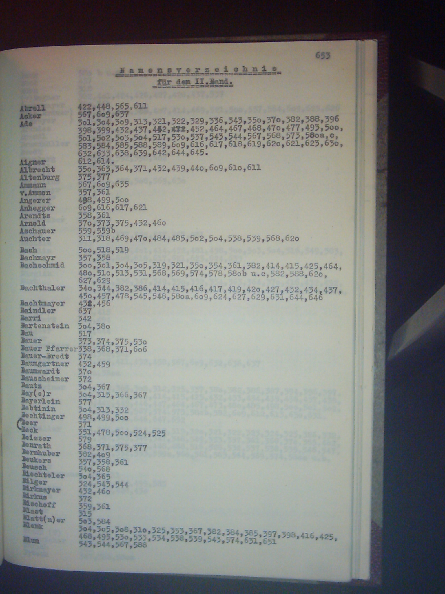 Namensverzeichnis des II. Bandes